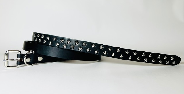 革幅約2.2cm.革厚3.5mm ベルト全体の360度にスタッズを施したナローベルト。剣先はスパイダーデザインです。※バックルの留め具がスナップボタン式ですのでバックルを取り外しできます。 全長サイズ 28inch 110センチ ケン先(約35センチ) 30inch 115センチ ケン先(約35センチ) 32inch 120センチ ケン先(約35センチ) 34inch 125センチ ケン先(約35センチ) 36inch 130センチ ケン先(約35センチ) 38inch 135センチ ケン先(約35センチ) ケン先はベルトの最終穴から末端までの事です。 ※ベルト先端の形を選択できます。 ※スーパーナロー(+13cm)を選択可能です。 ※ホースシューバックルへ変更可能です。 選択オプションからお選び下さい。