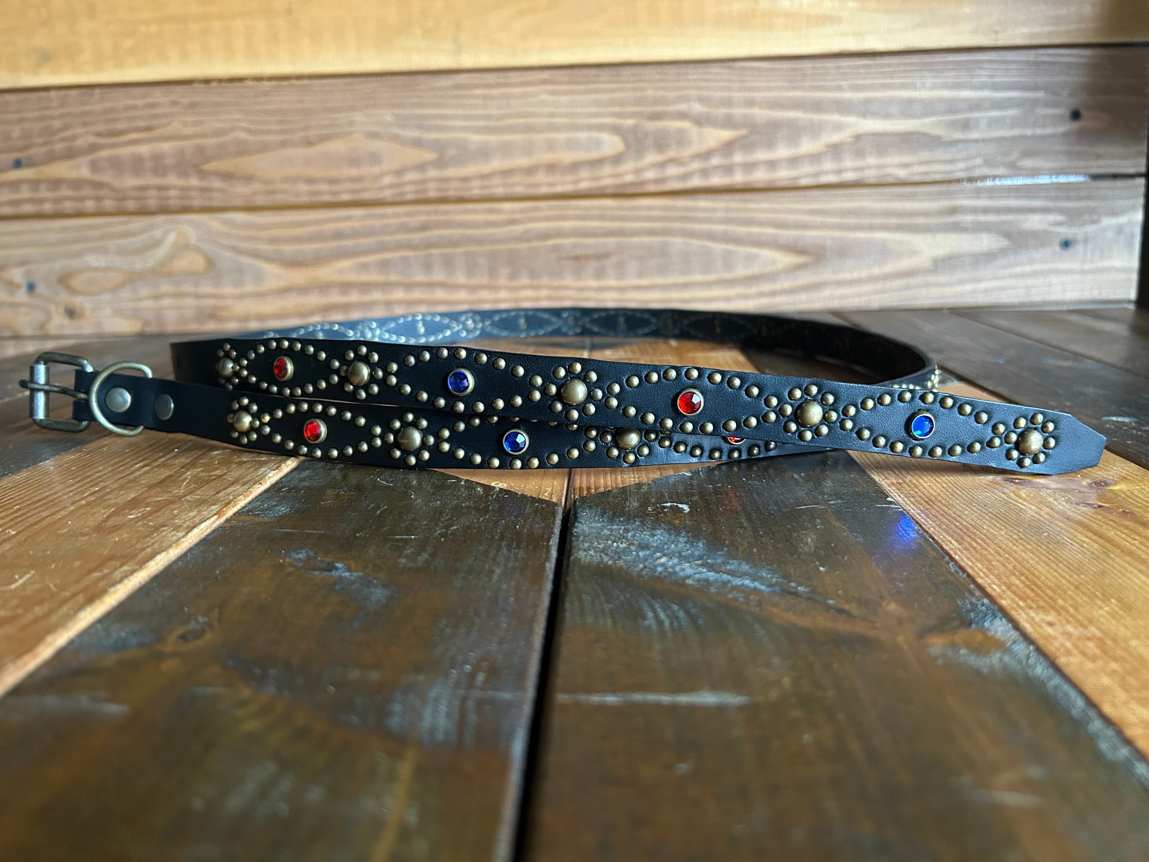 スタッズベルト360 (2cm幅) チェーンブラスバタフライ RED&BLUE【アンティークブラス】