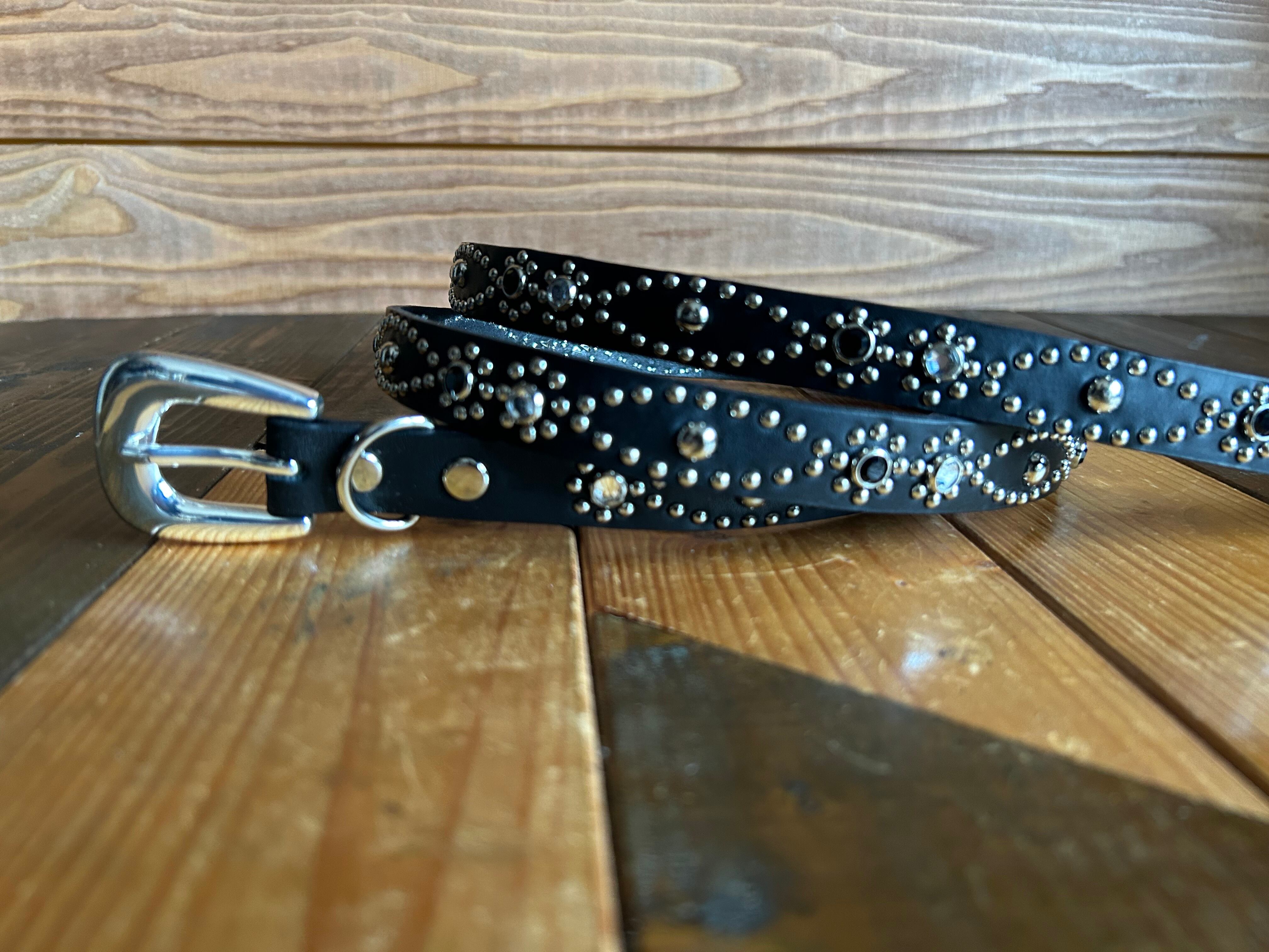 ウエスタンナローベルト(2cm幅)ブラッククリアラウンドバタフライ