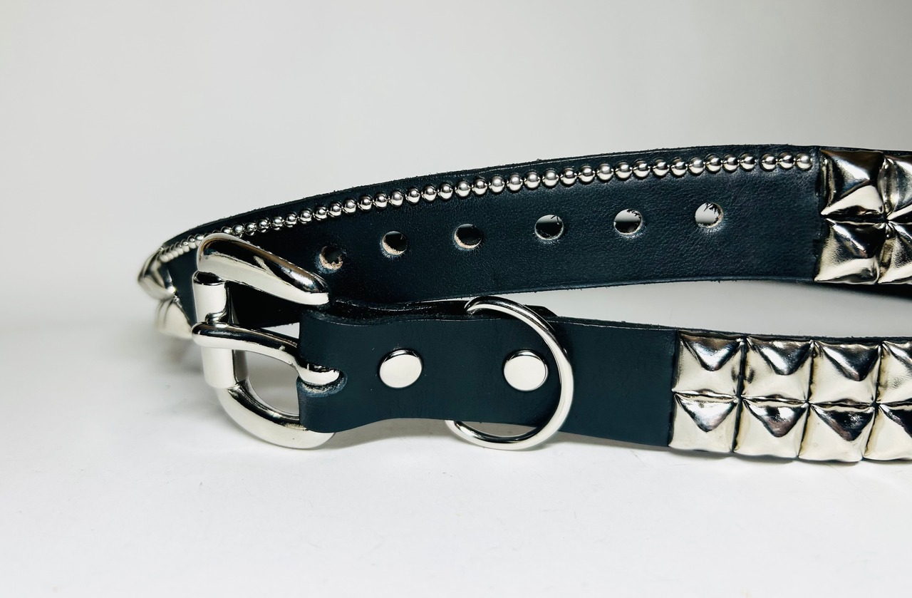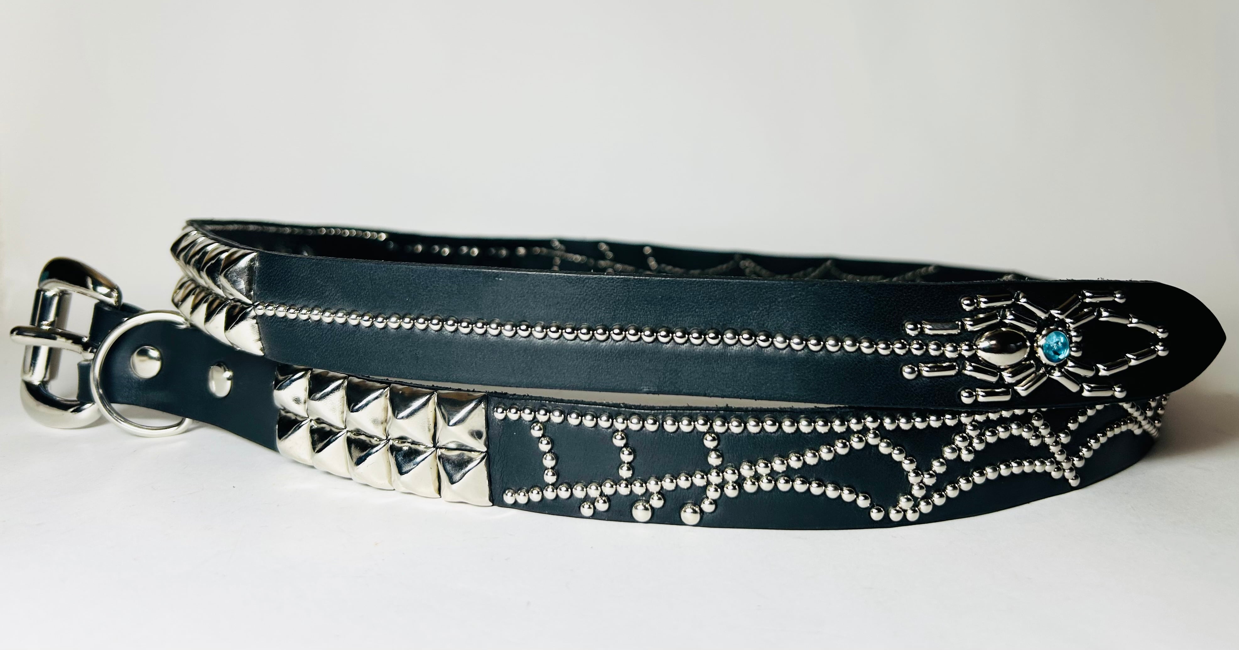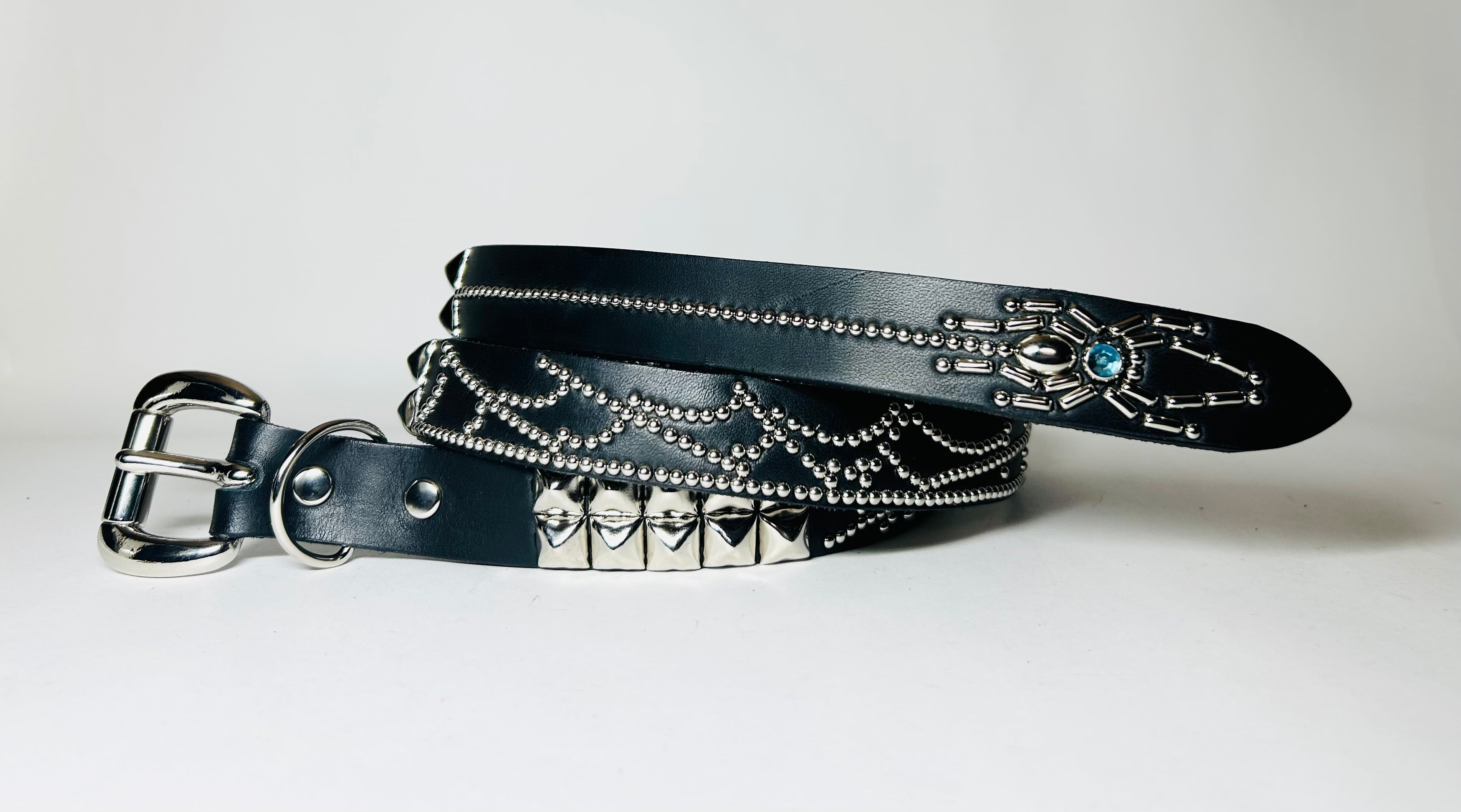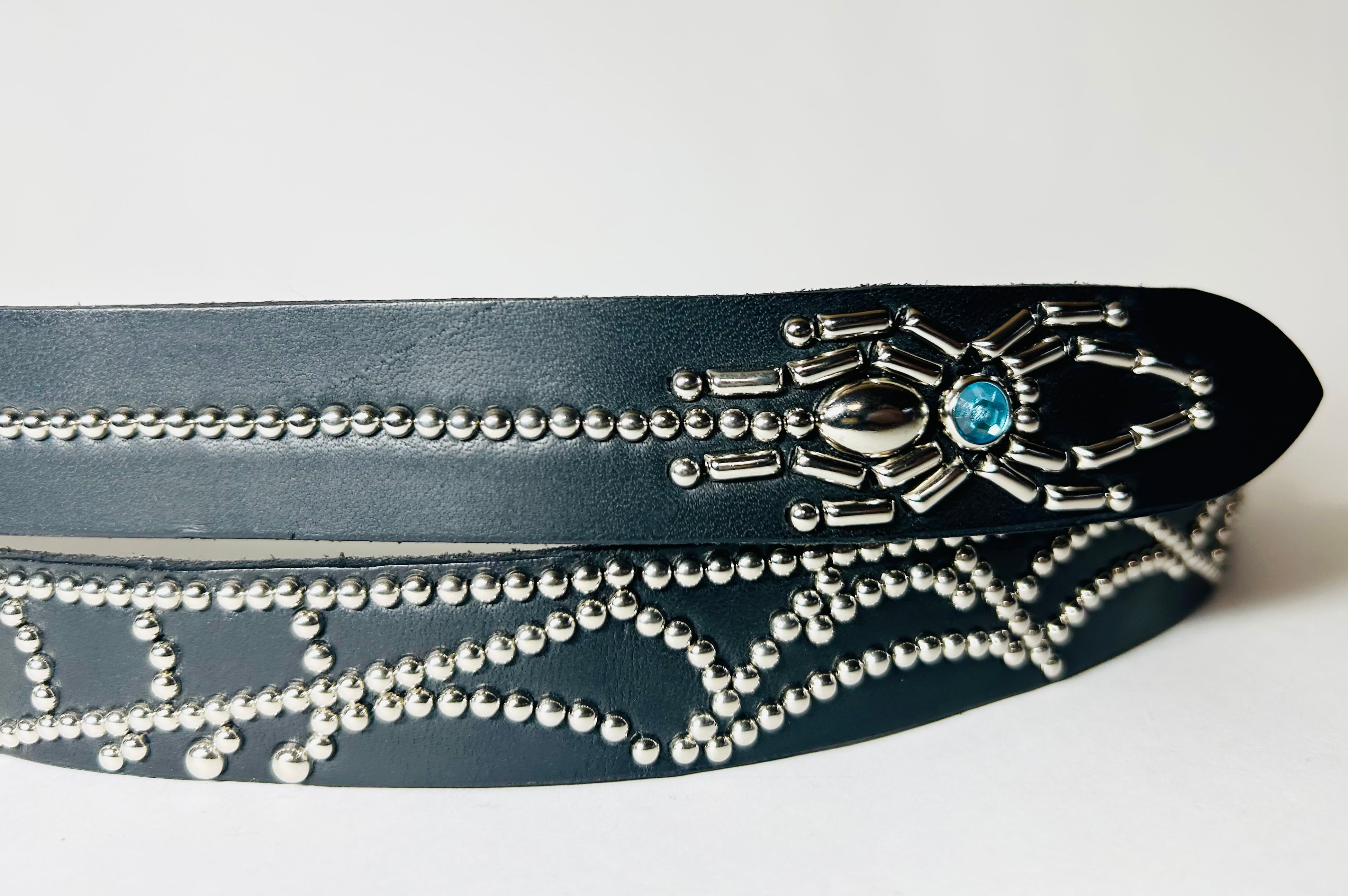 360スタッズベルト(2.5cm幅) ピラミッドスパイダーウェブ(ライトブルーストーン)