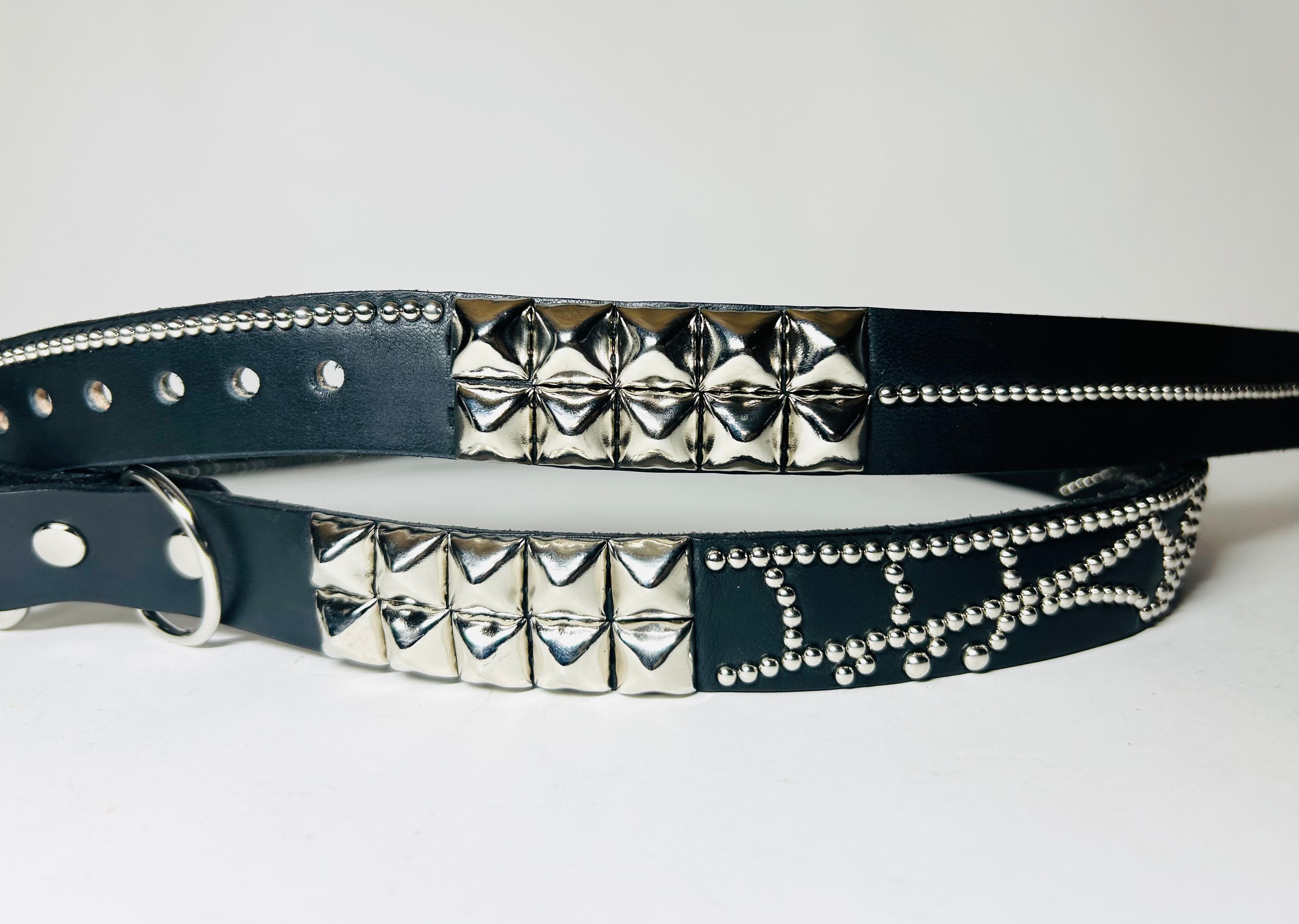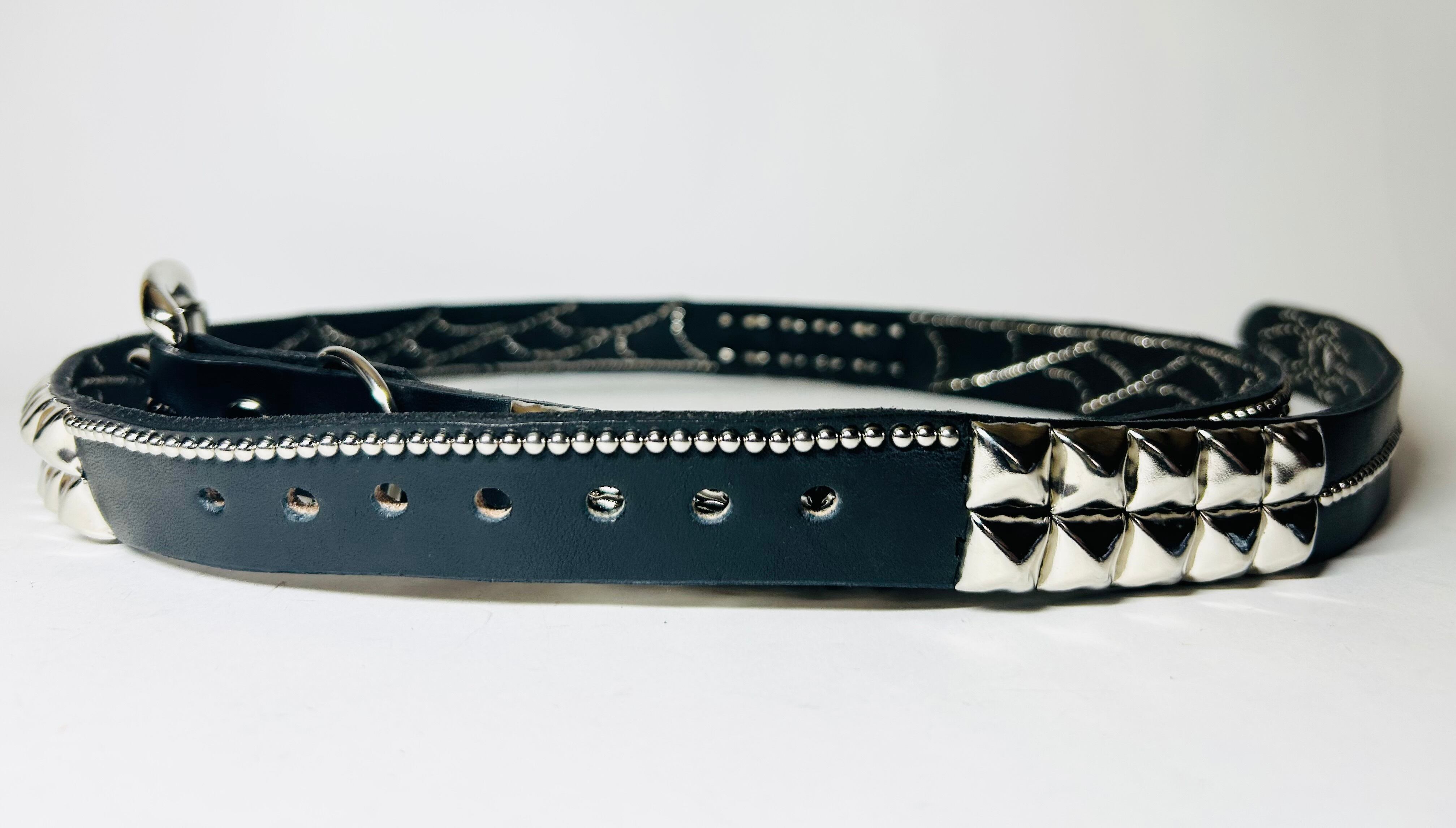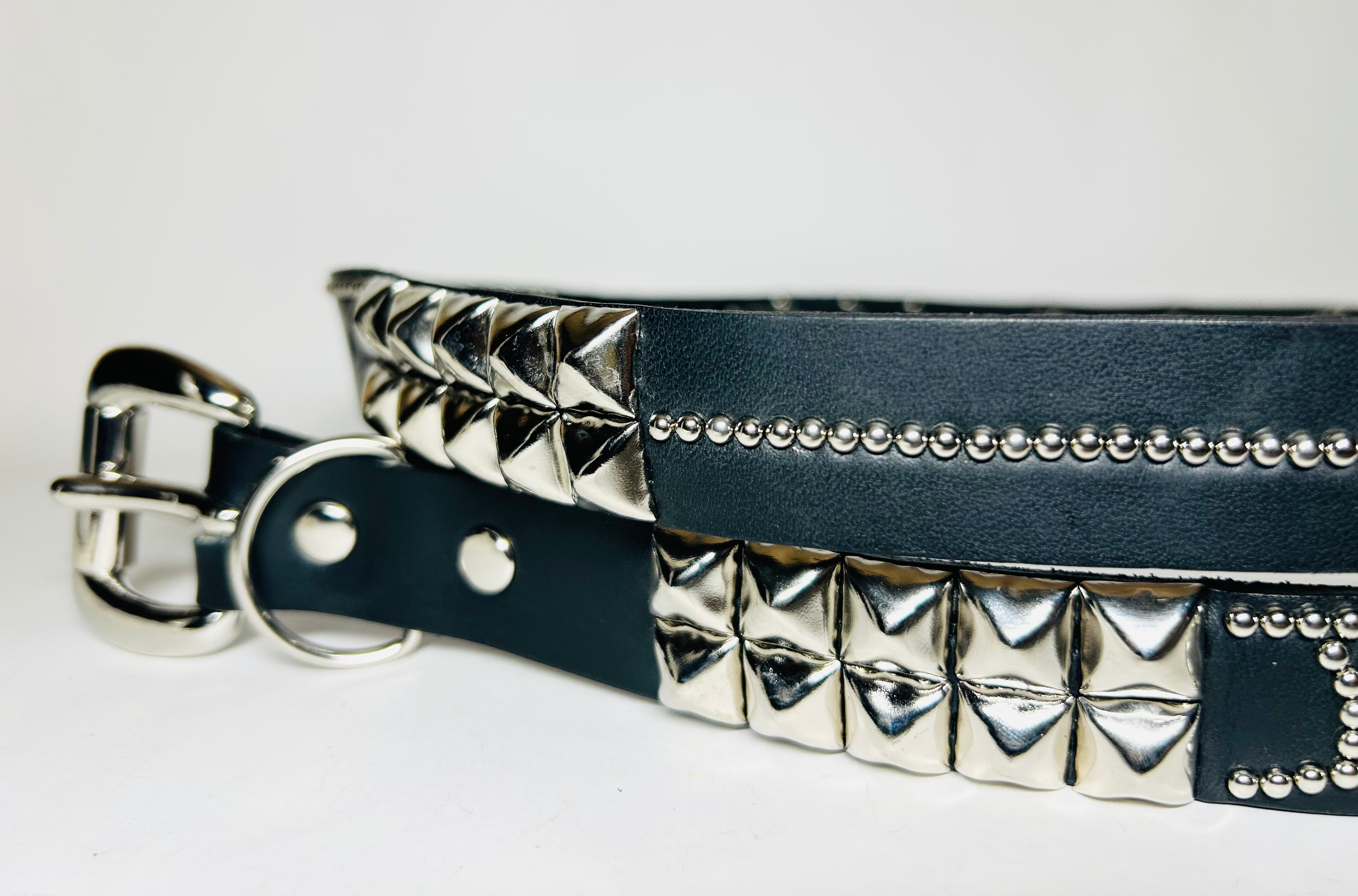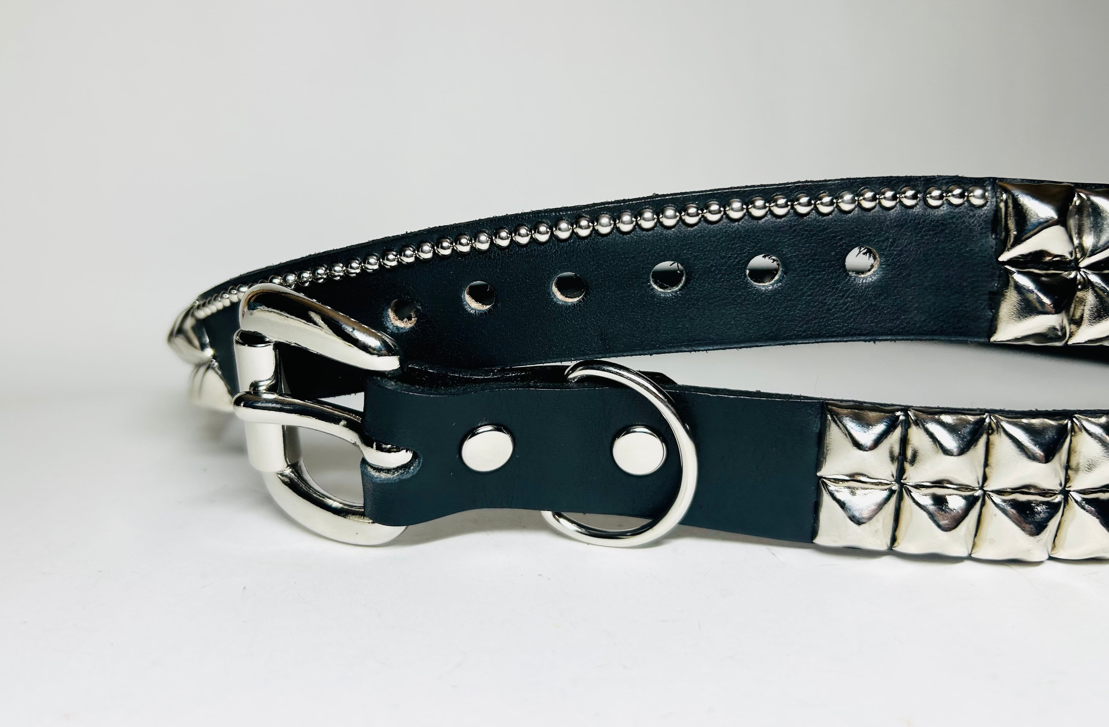 360スタッズベルト(2.5cm幅) ピラミッドスパイダーウェブ(ライトブルーストーン)