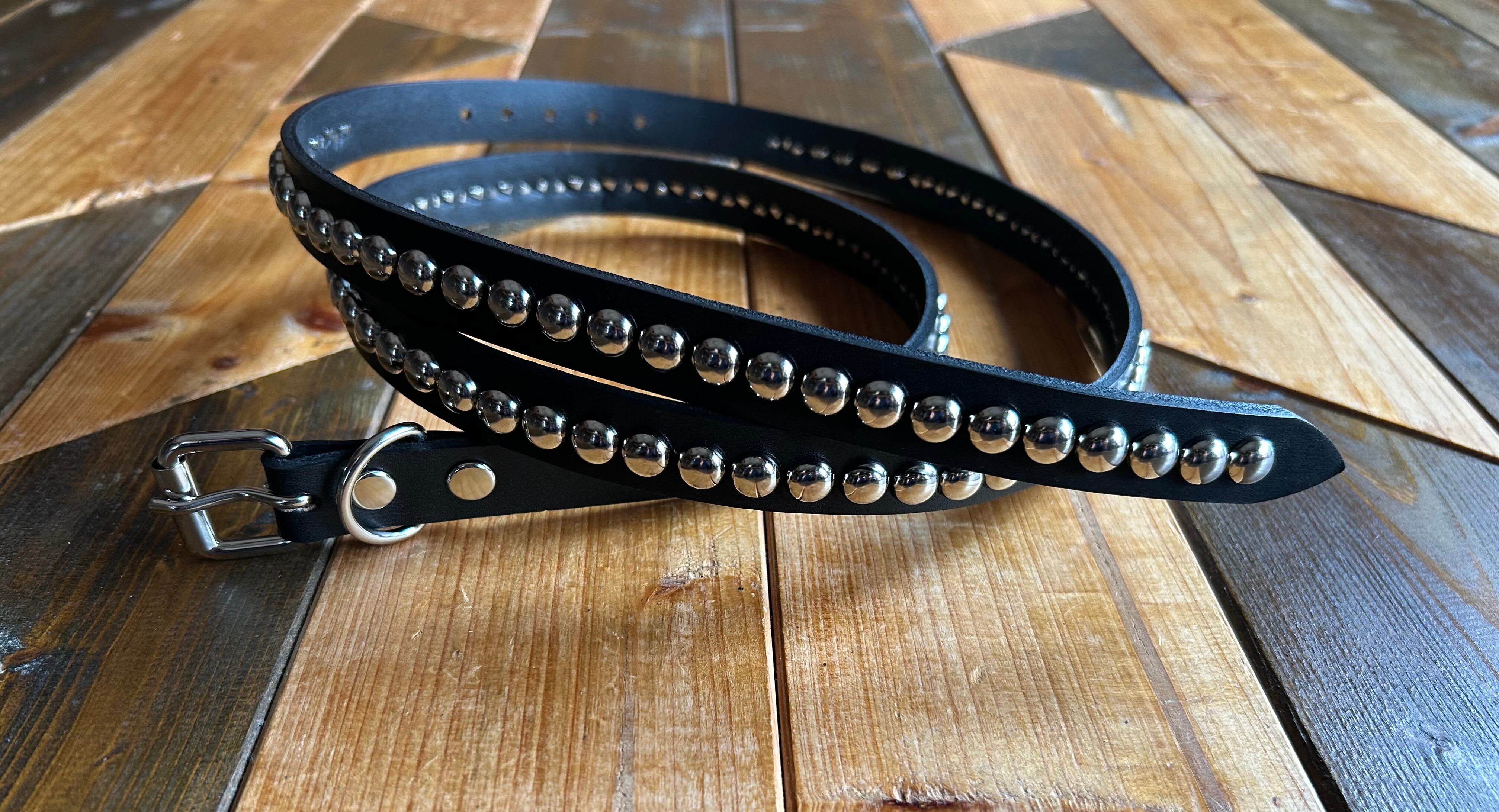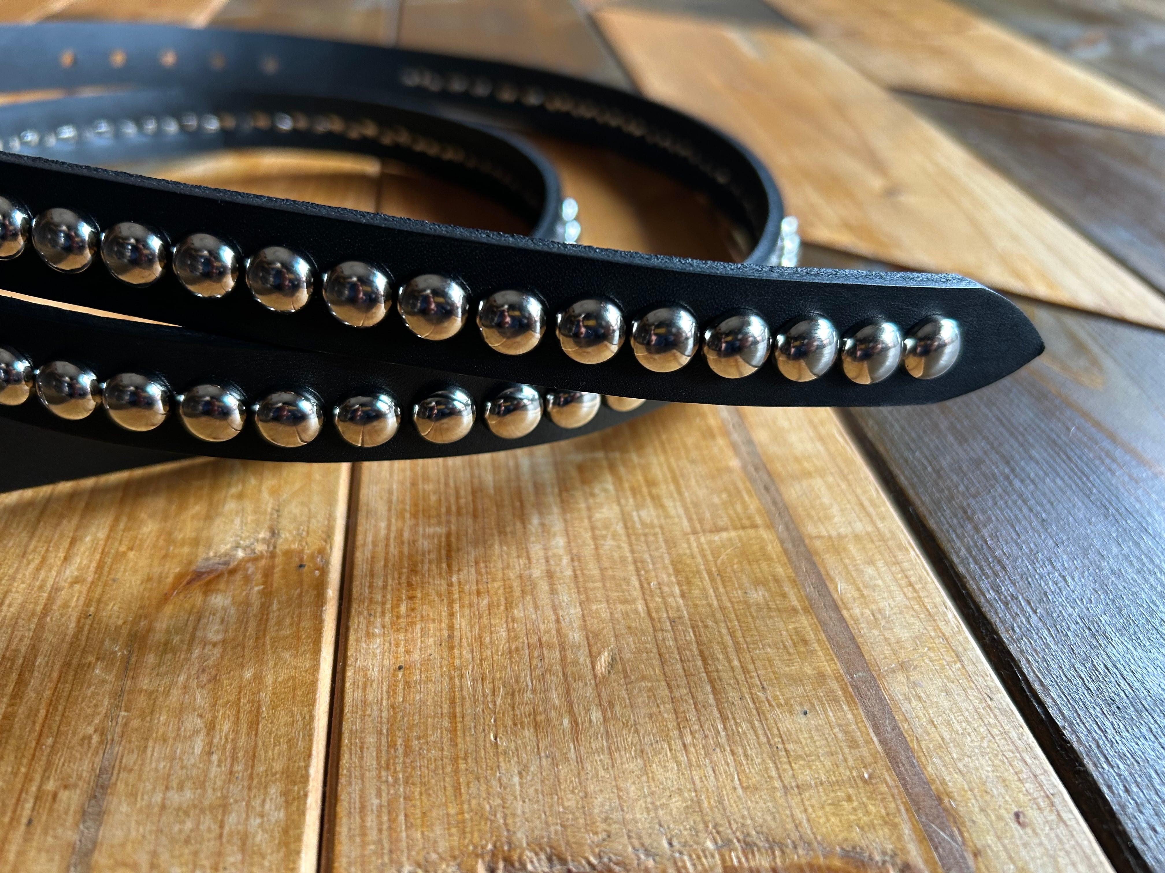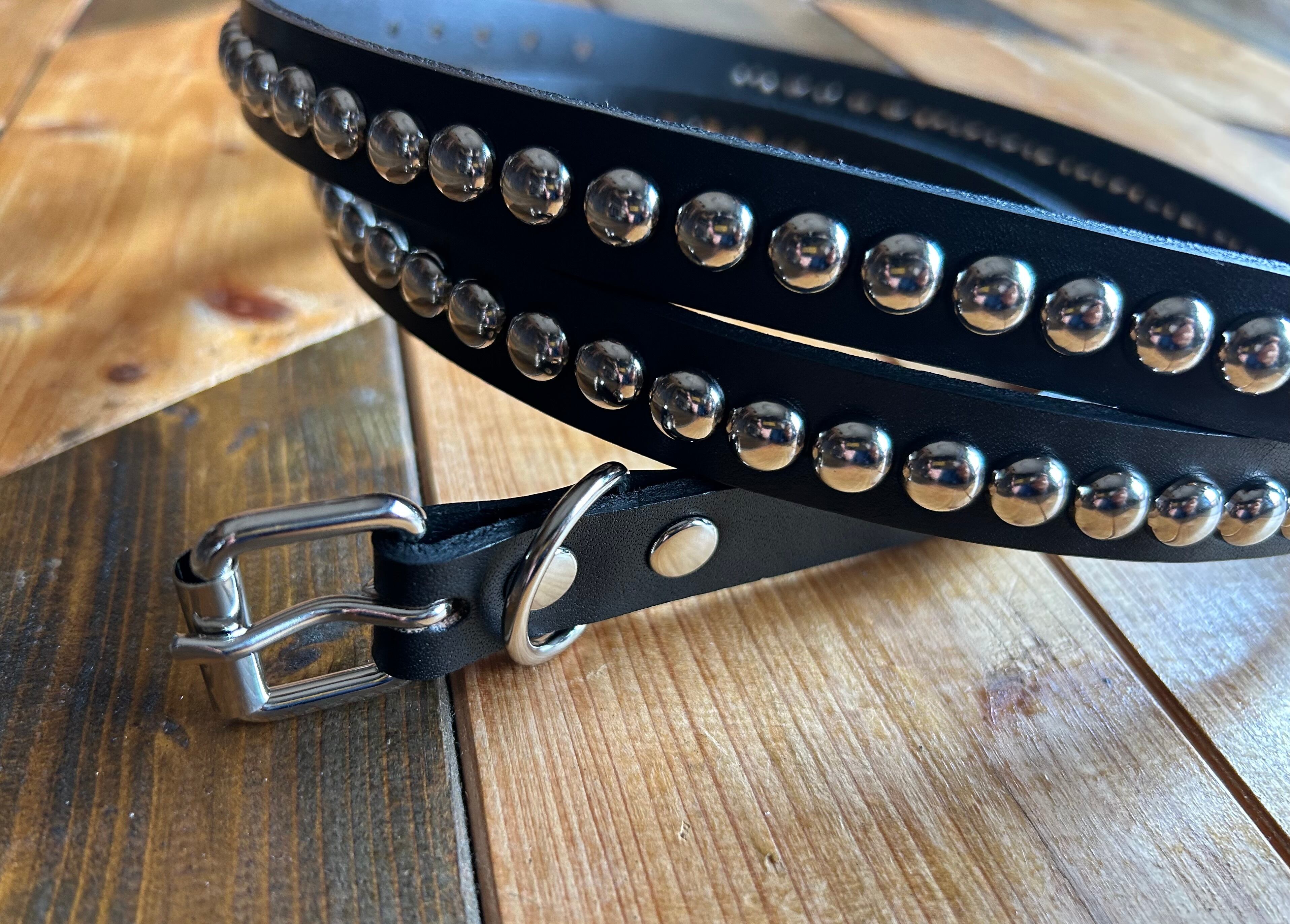 ベルト全体の360度にラウンドスタッズを施したナローベルト。