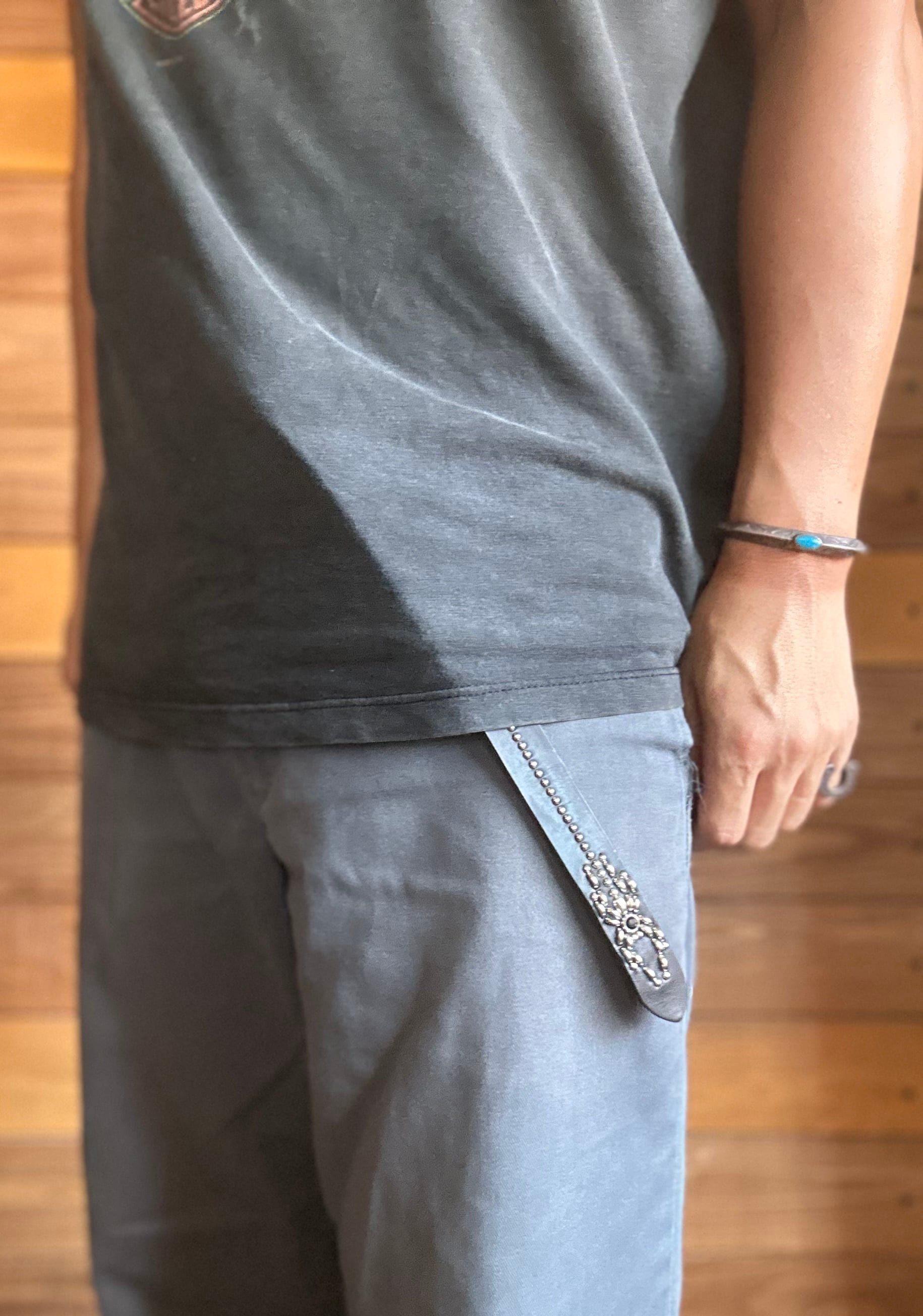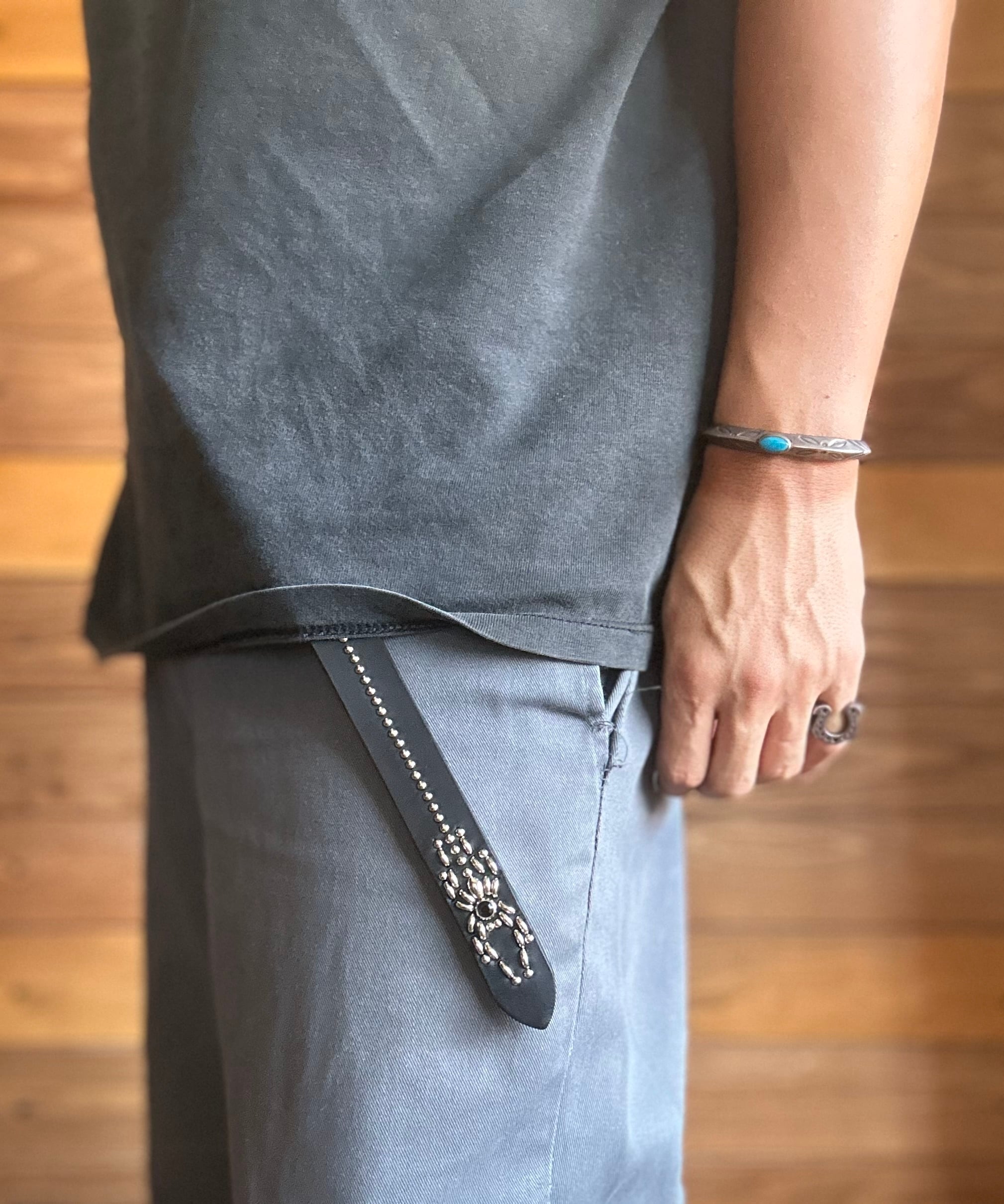 ウエスタンバックルを採用したスパイダーデザインが特徴的なナローベルト。