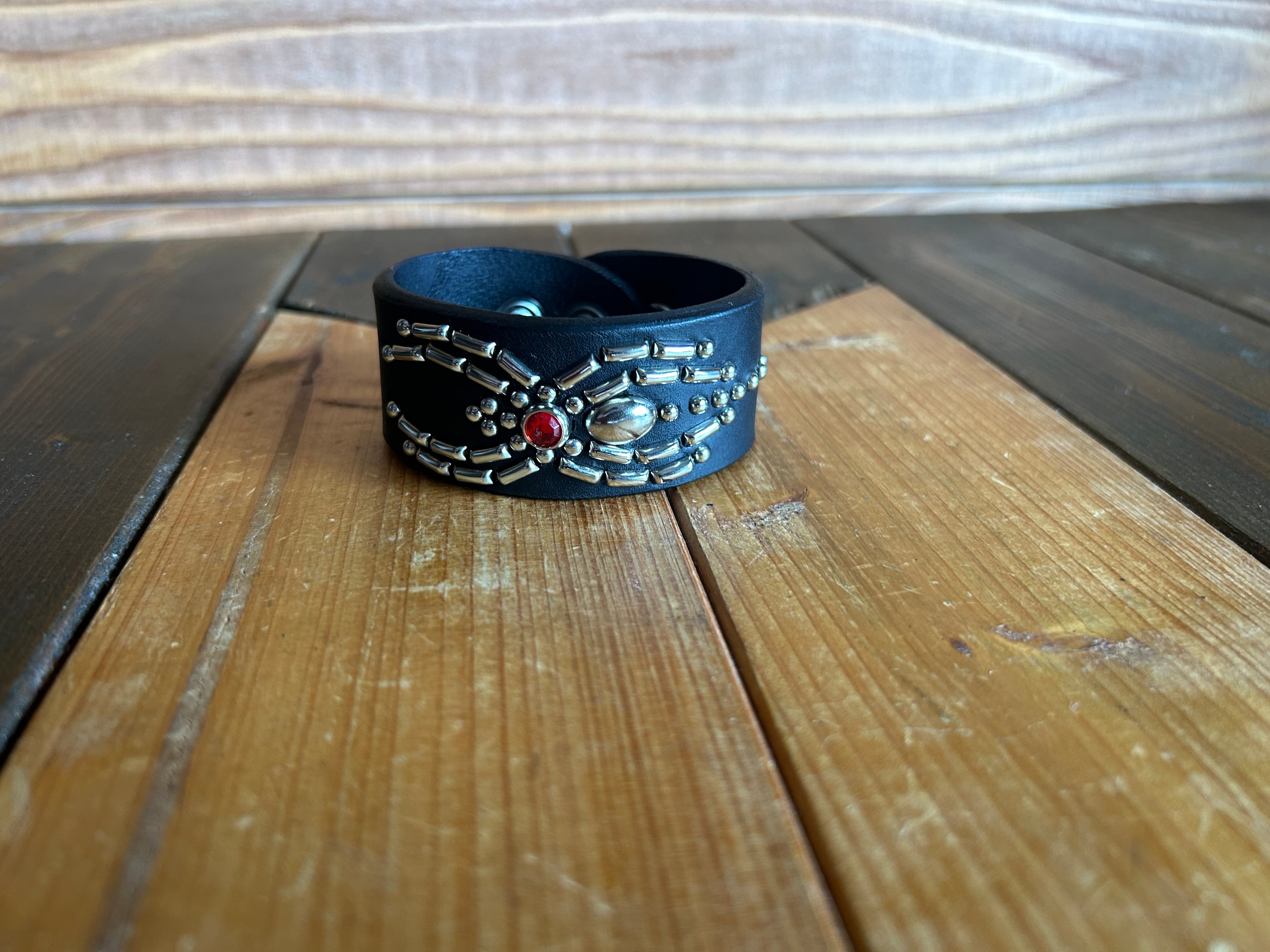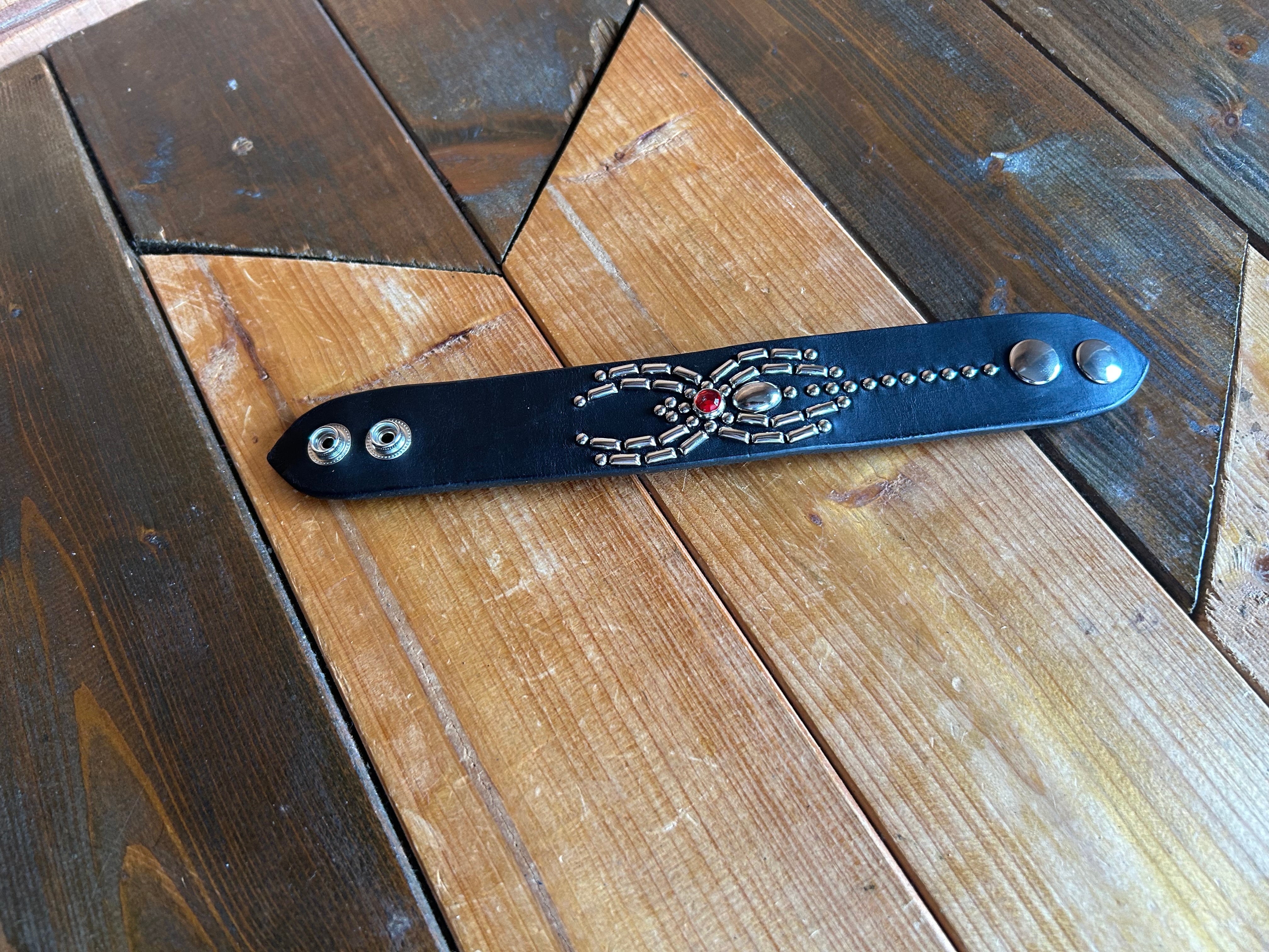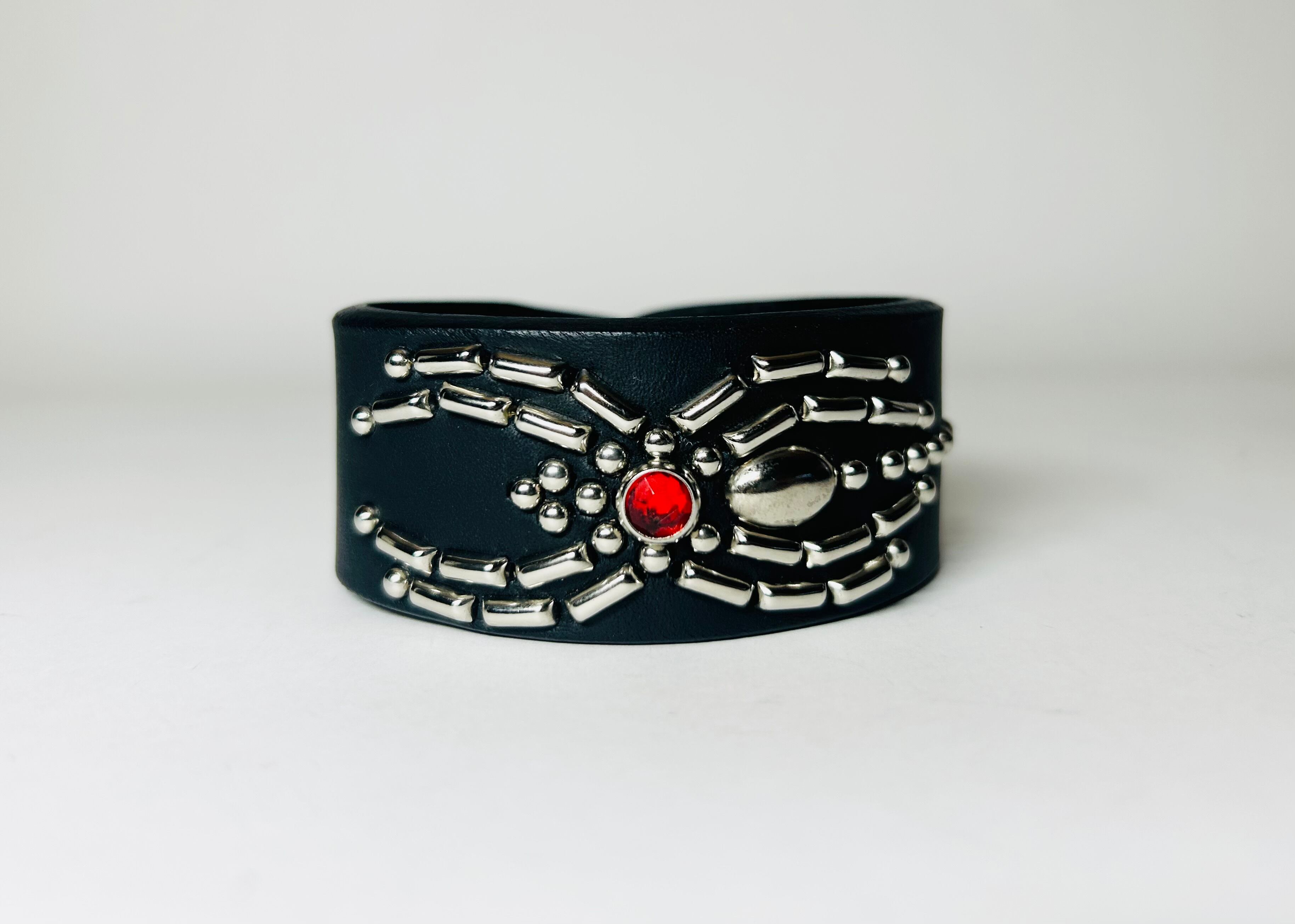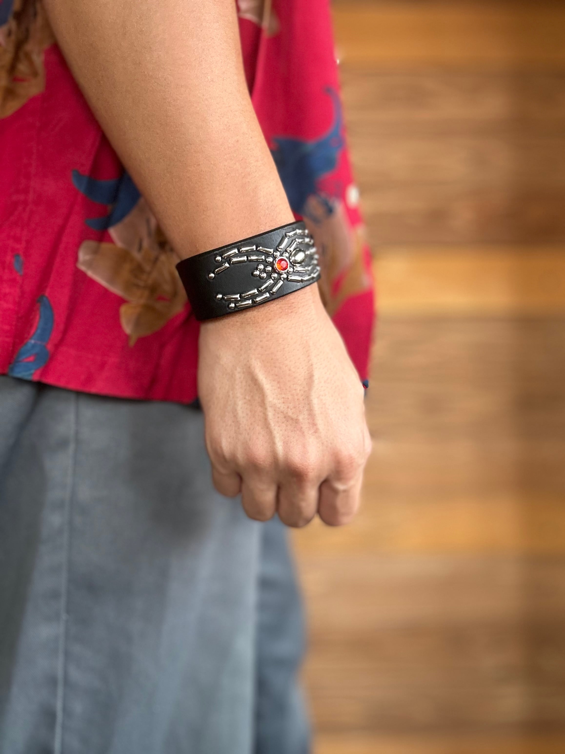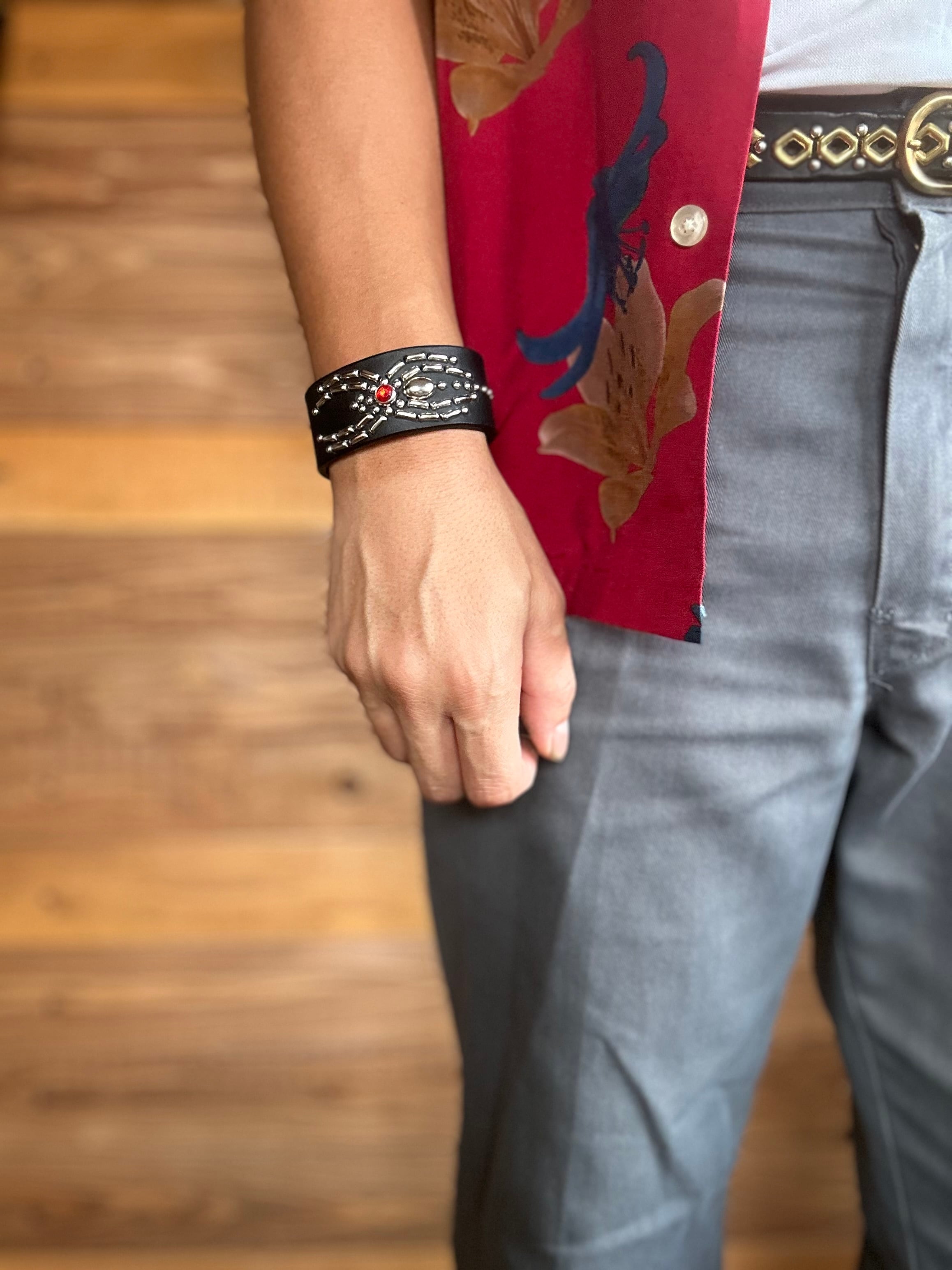 レザーブレスレット 3cm幅 スパイダー(レッド)
