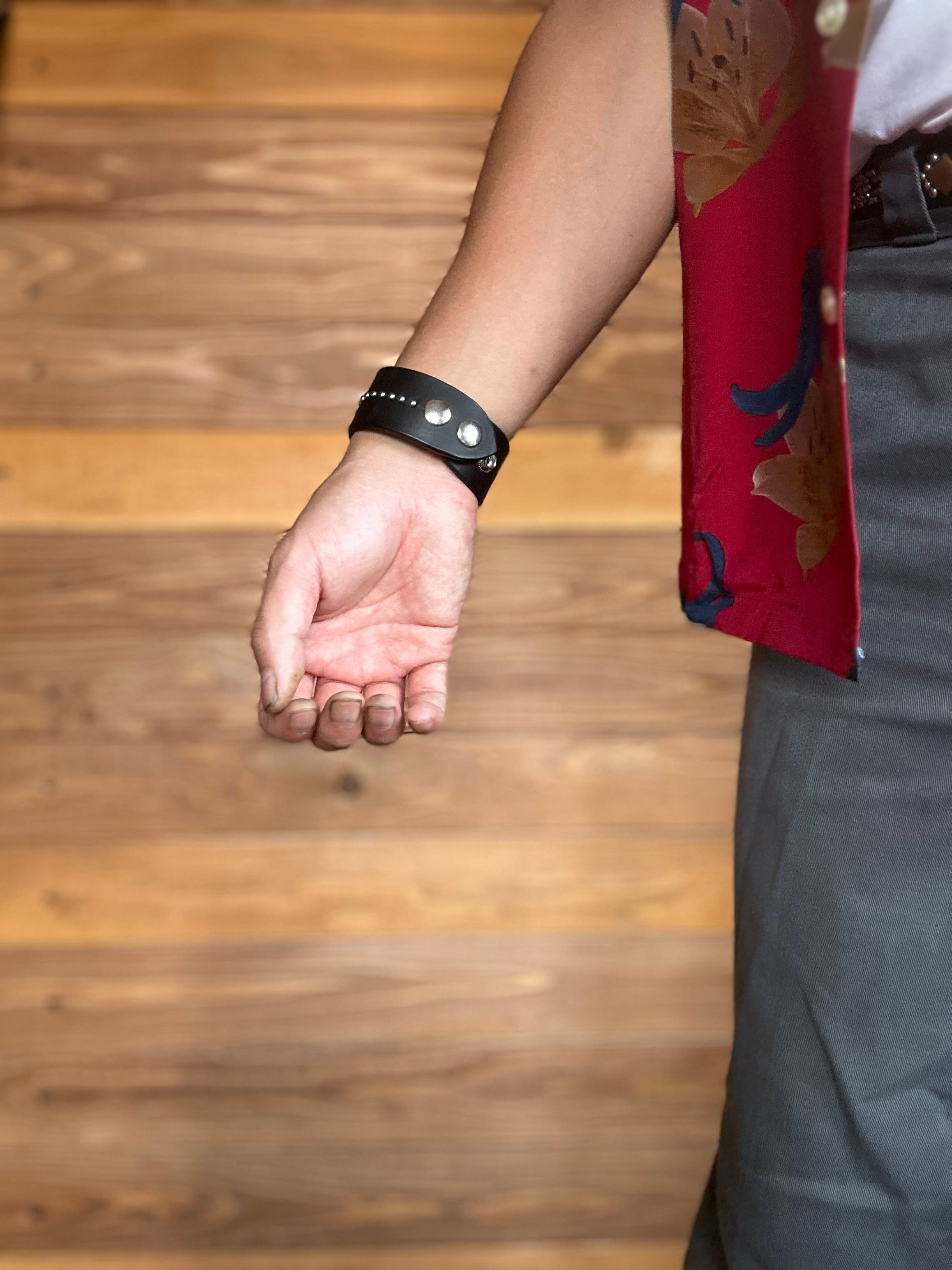 ダブルスナップボタンによりサイズが調整できます。お問い合わせ頂ければご希望のサイズでオーダー可能です(無料)またストーンカラーも変更オーダー可能です。お気軽にお問い合わせください。
