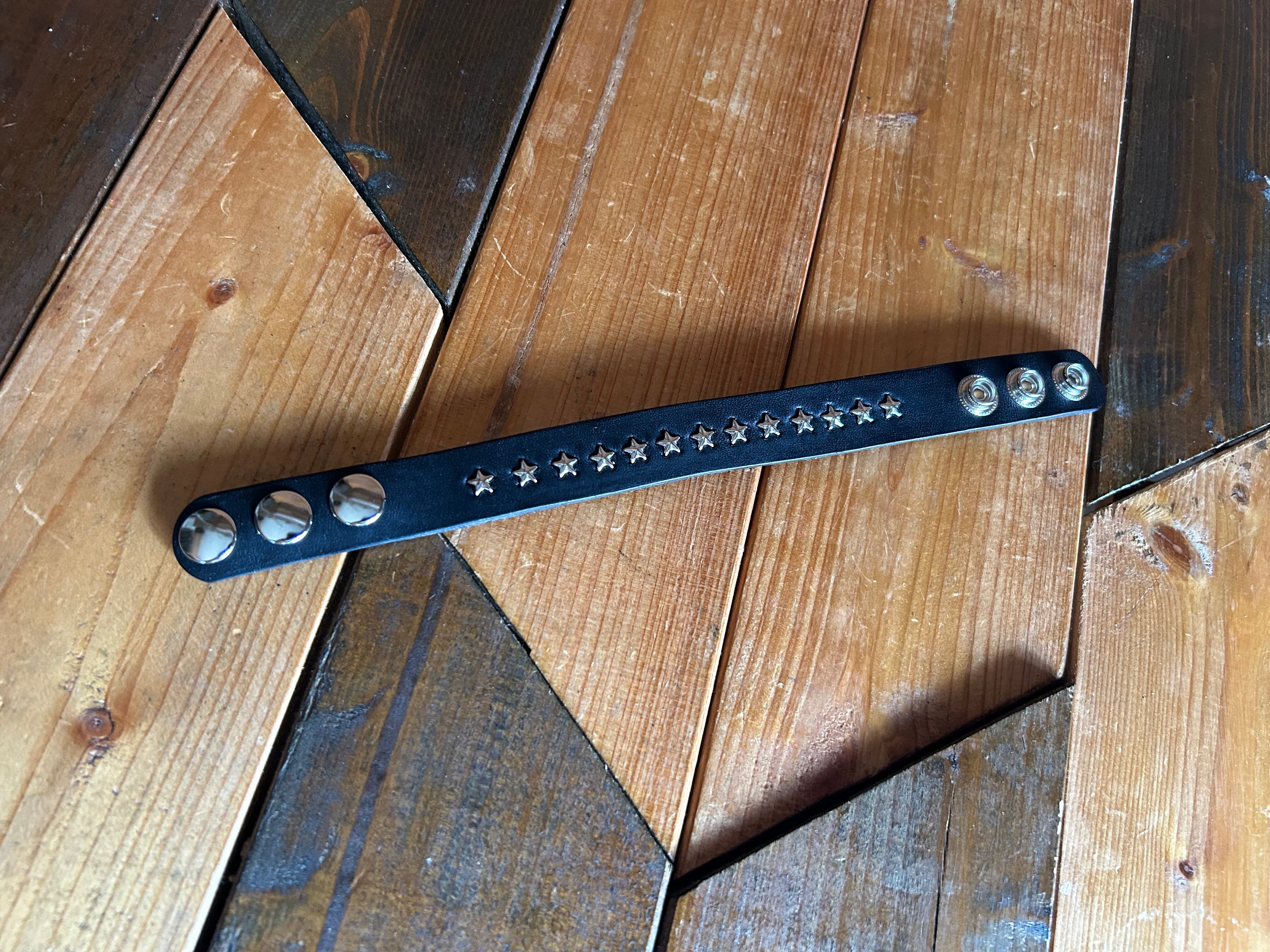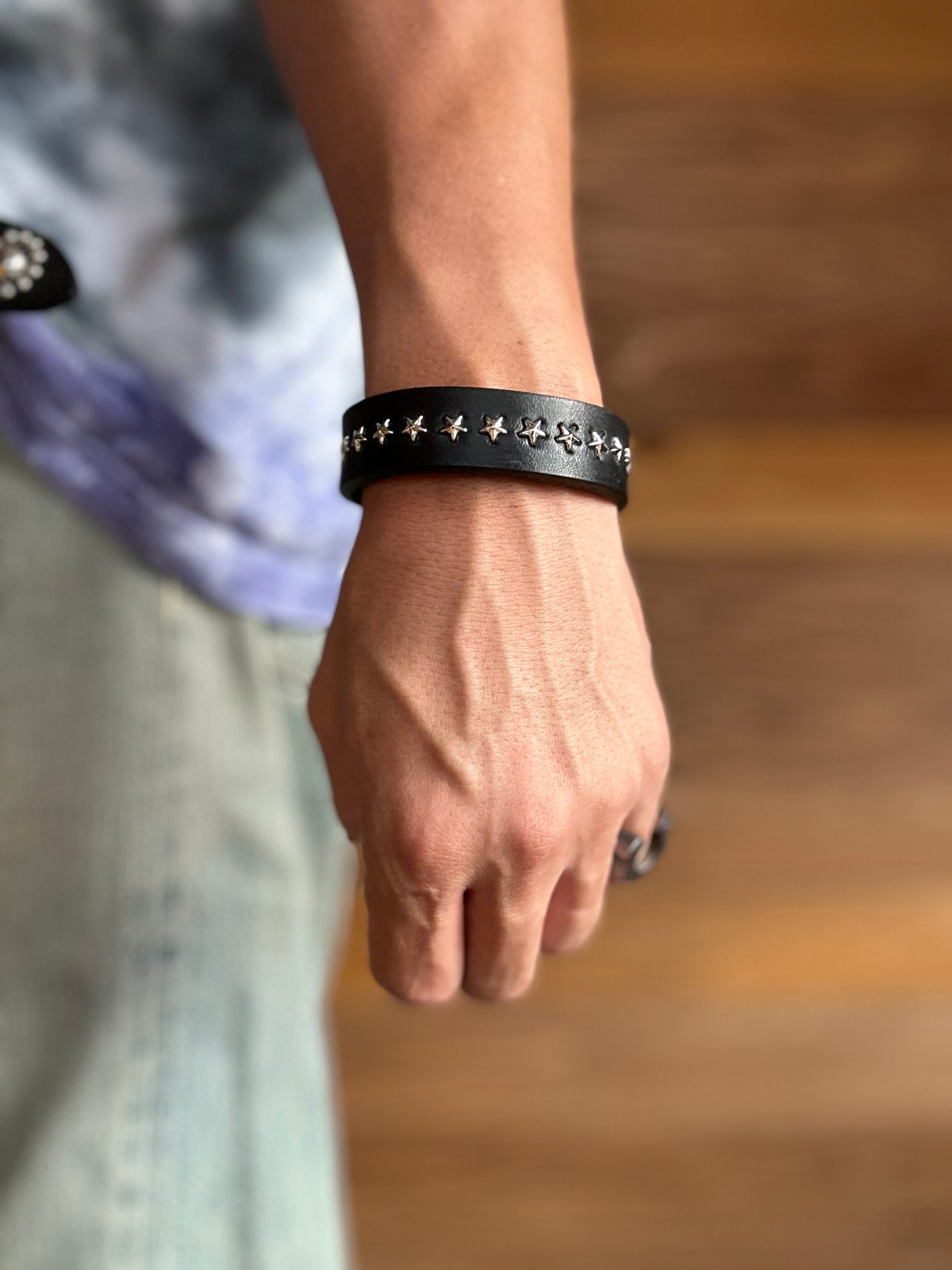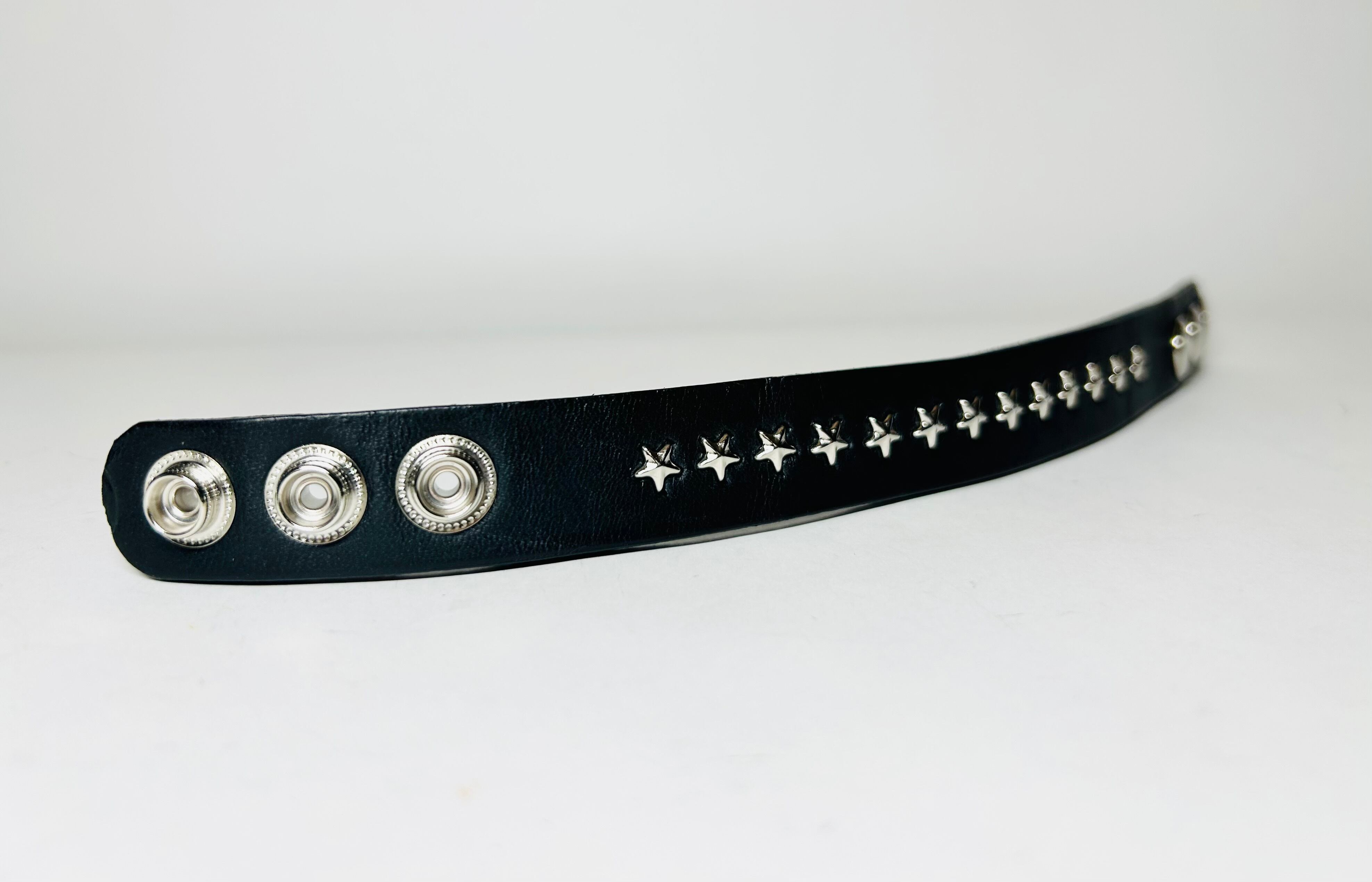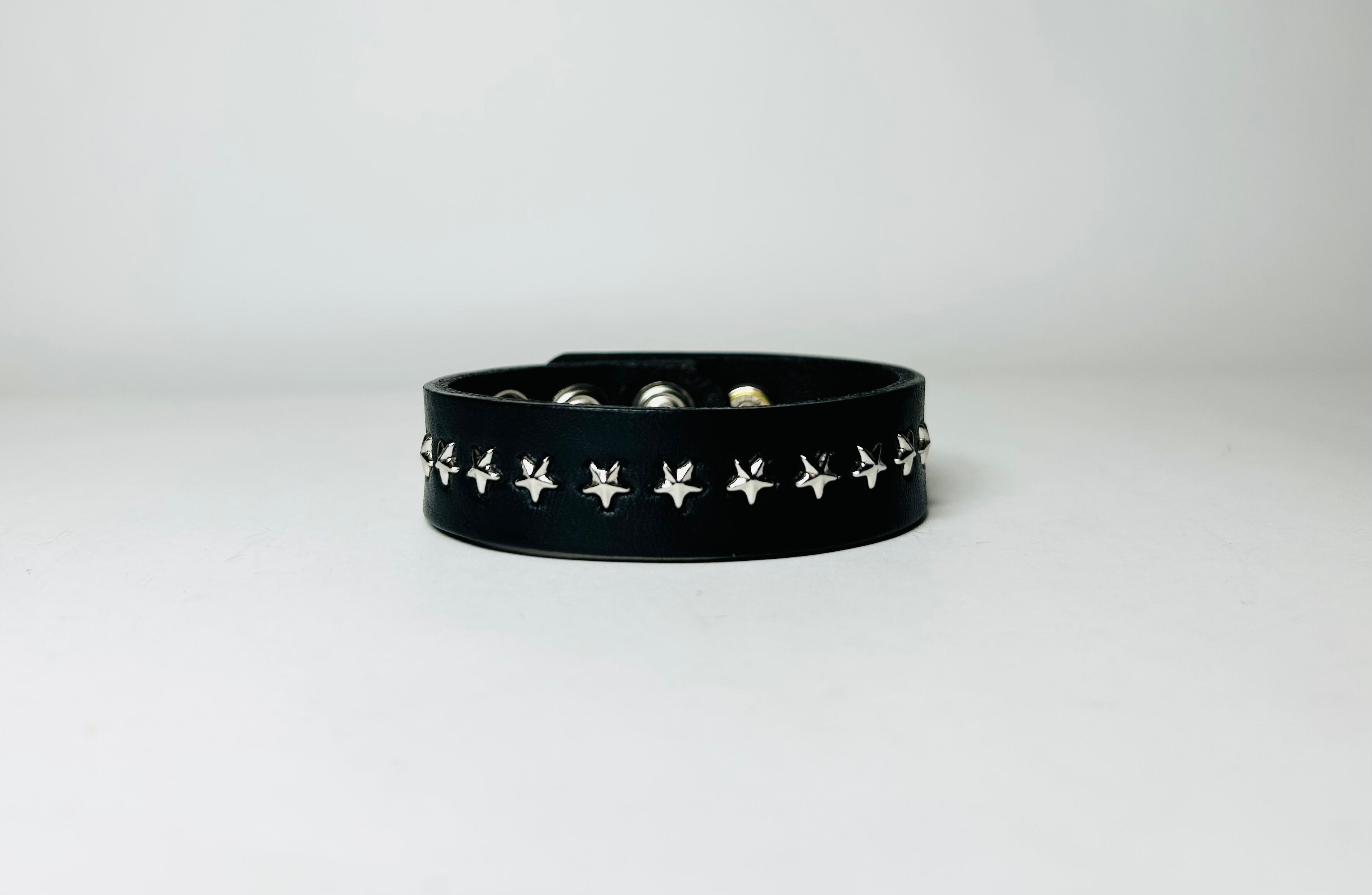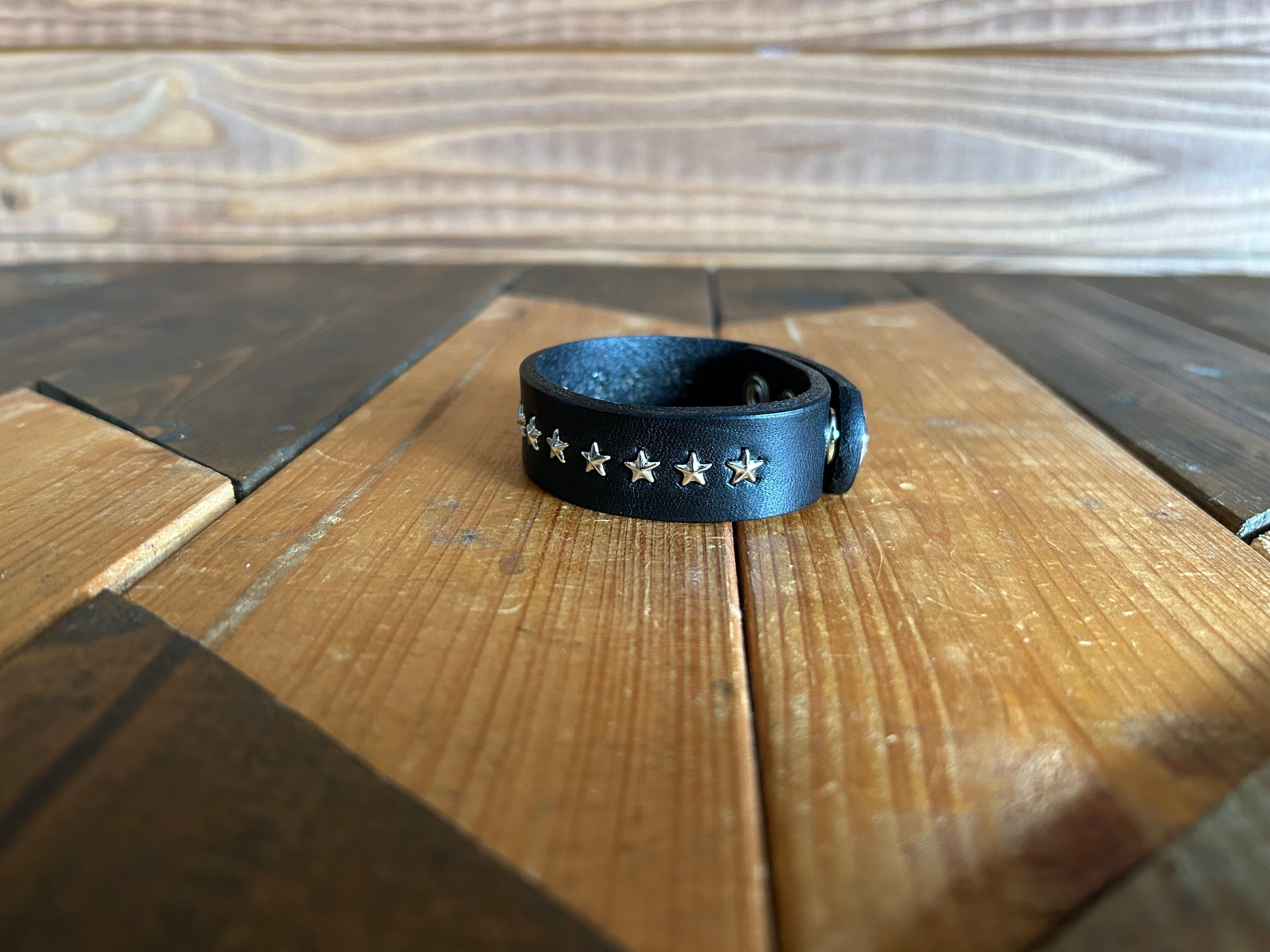 スターを13個施したブレスレット。フリーサイズ、内周:約16cm 〜22cmトリプルスナップボタンによりサイズが調整できます。お問い合わせ頂ければ他のサイズもご希望のサイズでオーダー可能です(無料)
