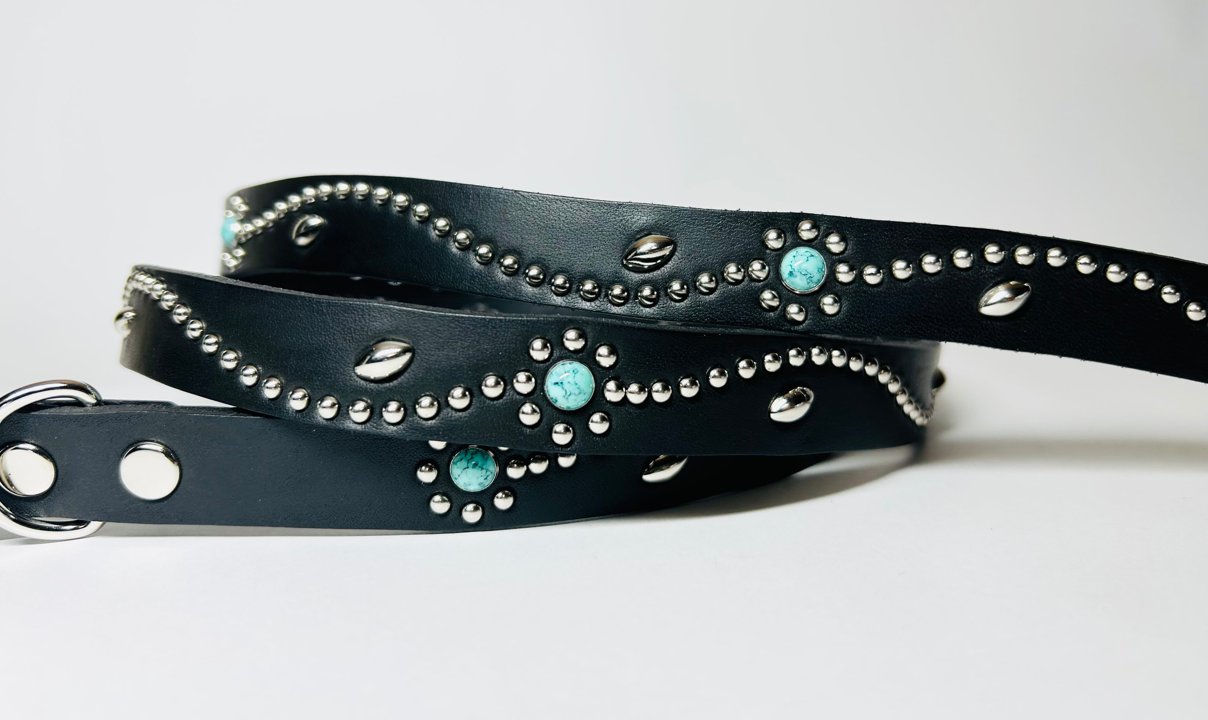 スタッズベルト360(2cm幅) グリーンターコイズフラワー