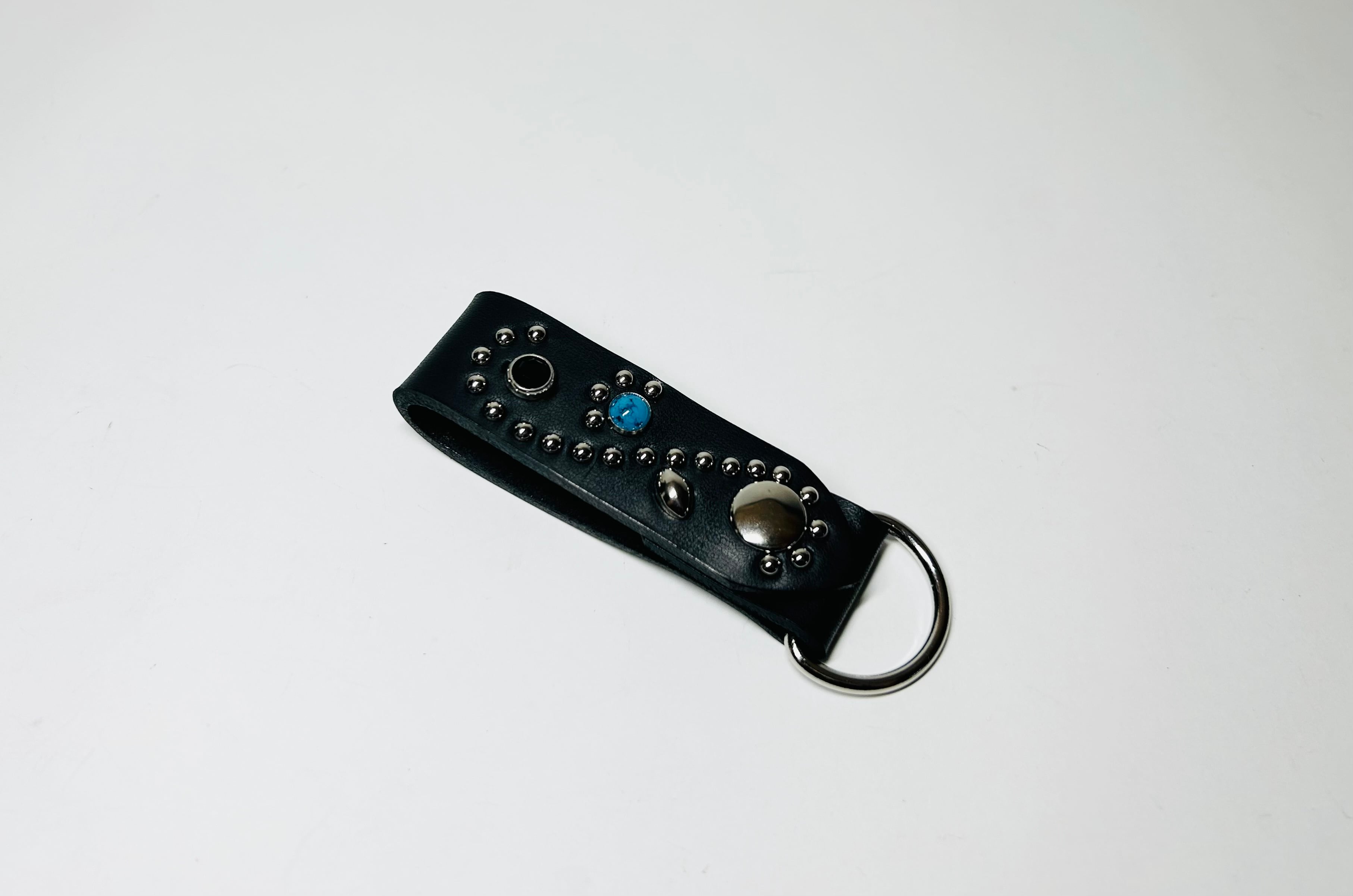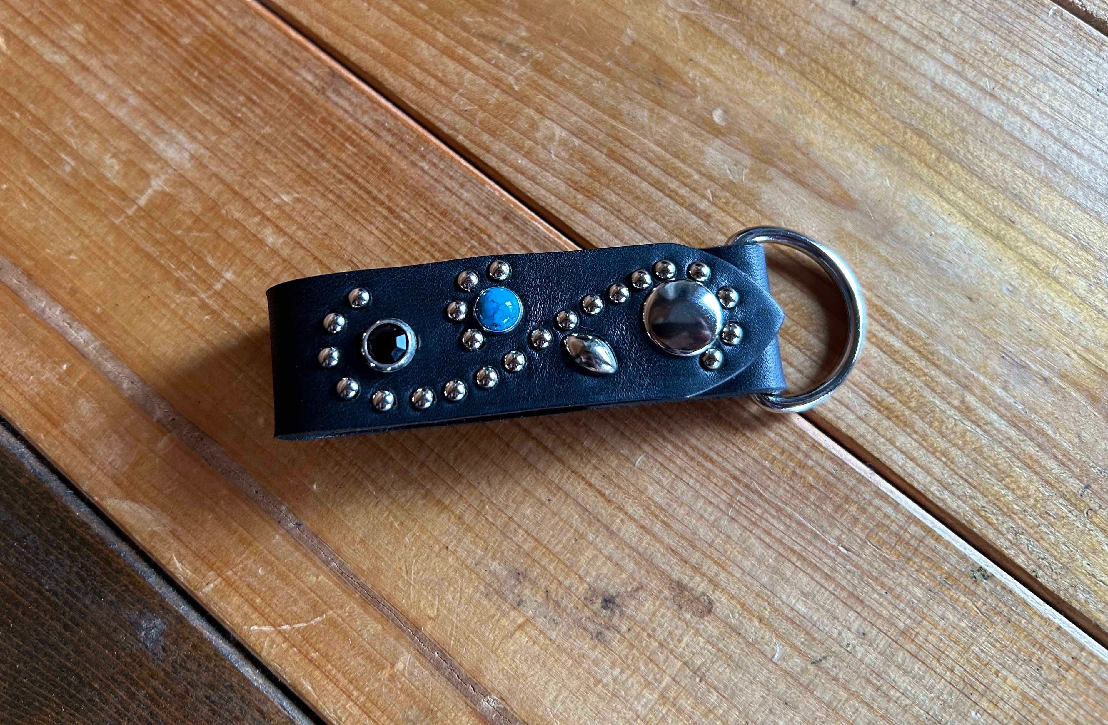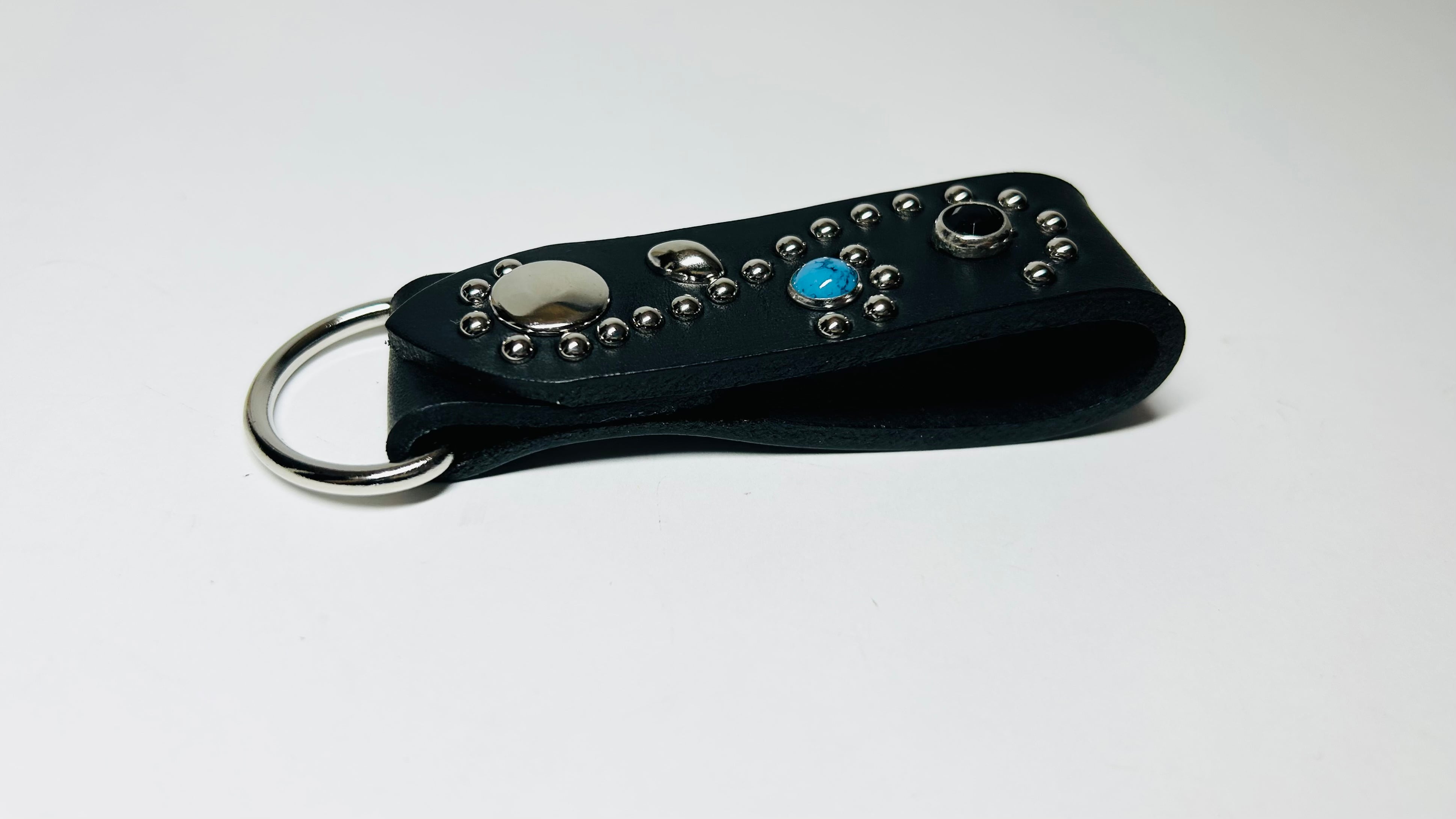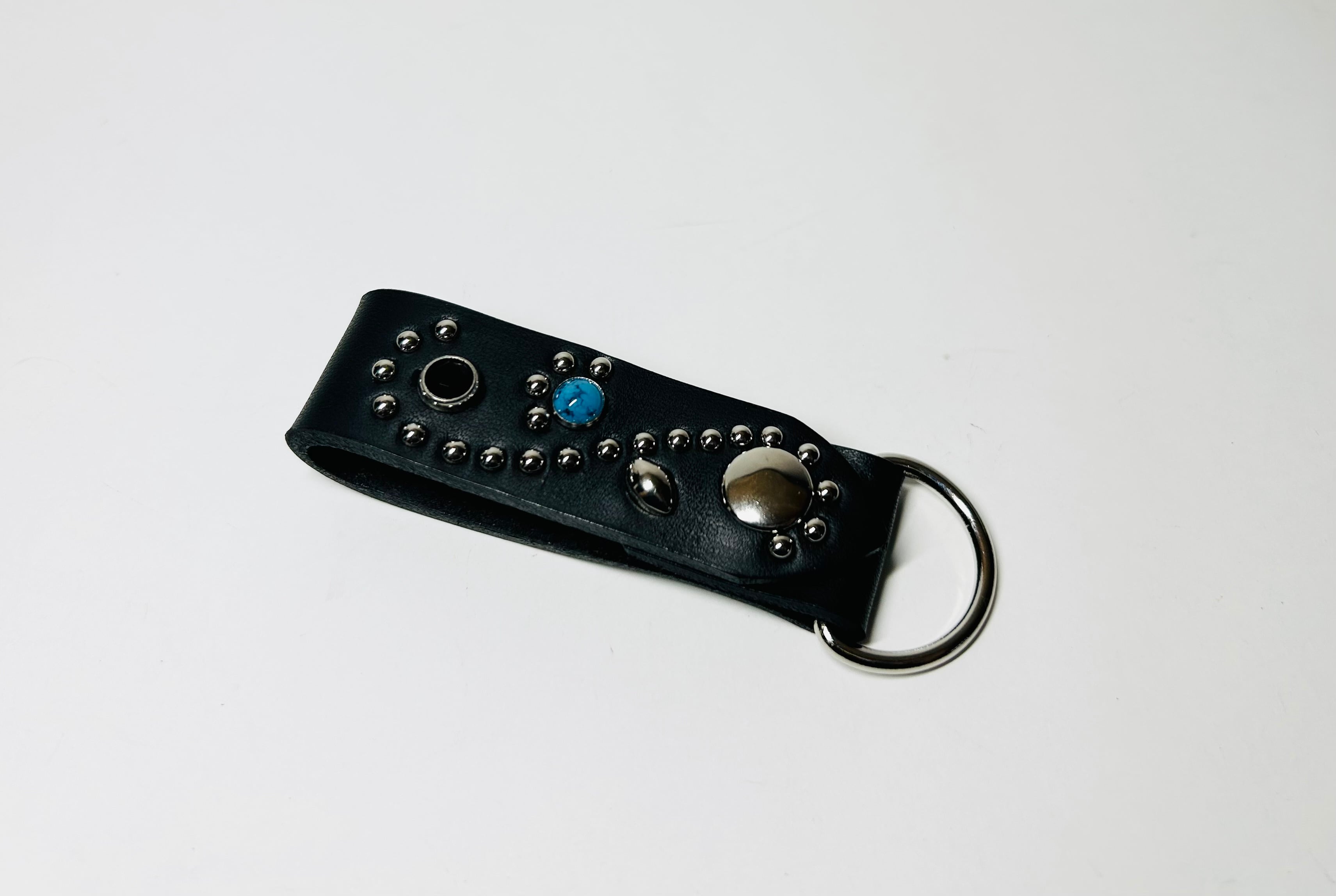 ターコイズスタッズとブラックストーンを使用したキーリング。