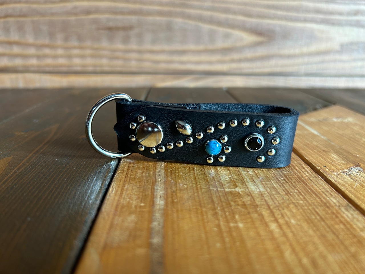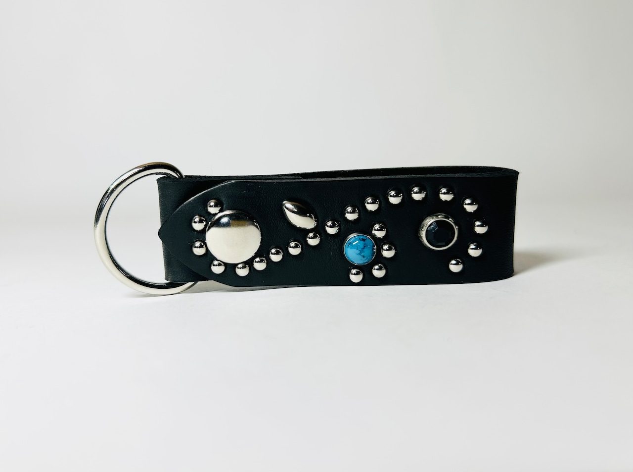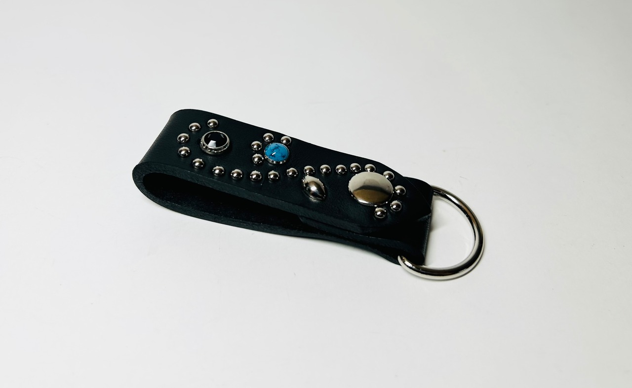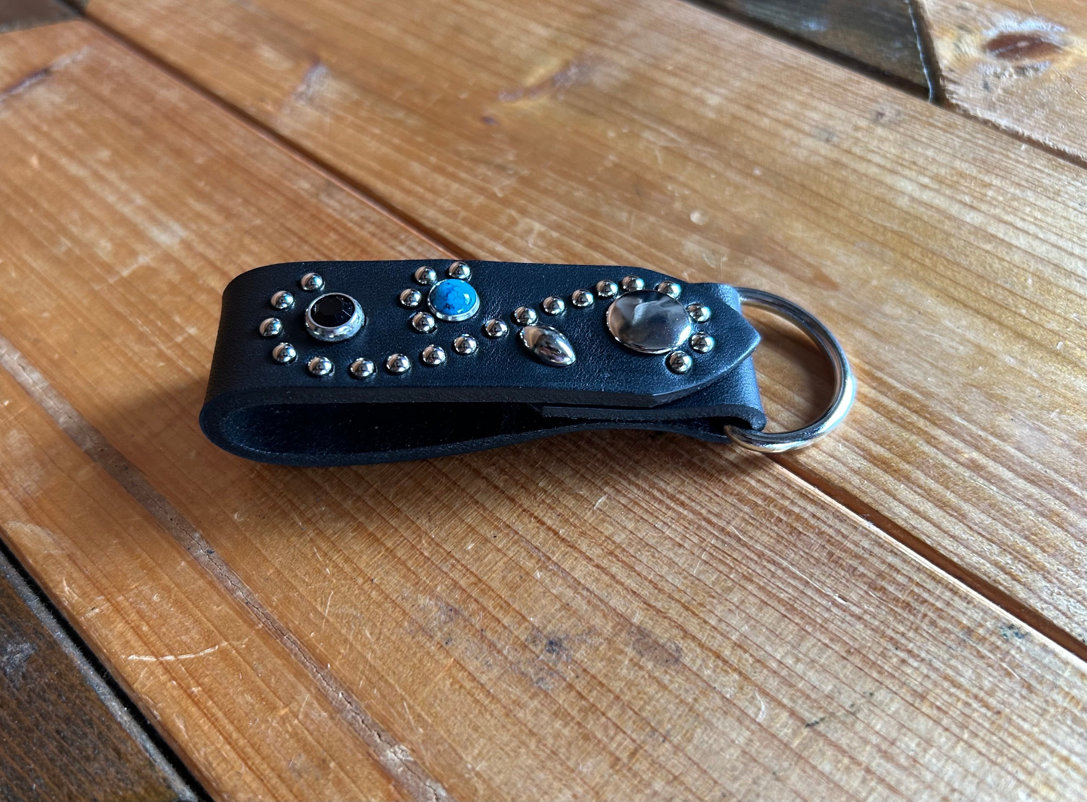 ターコイズスタッズとブラックストーンを使用したキーリング。