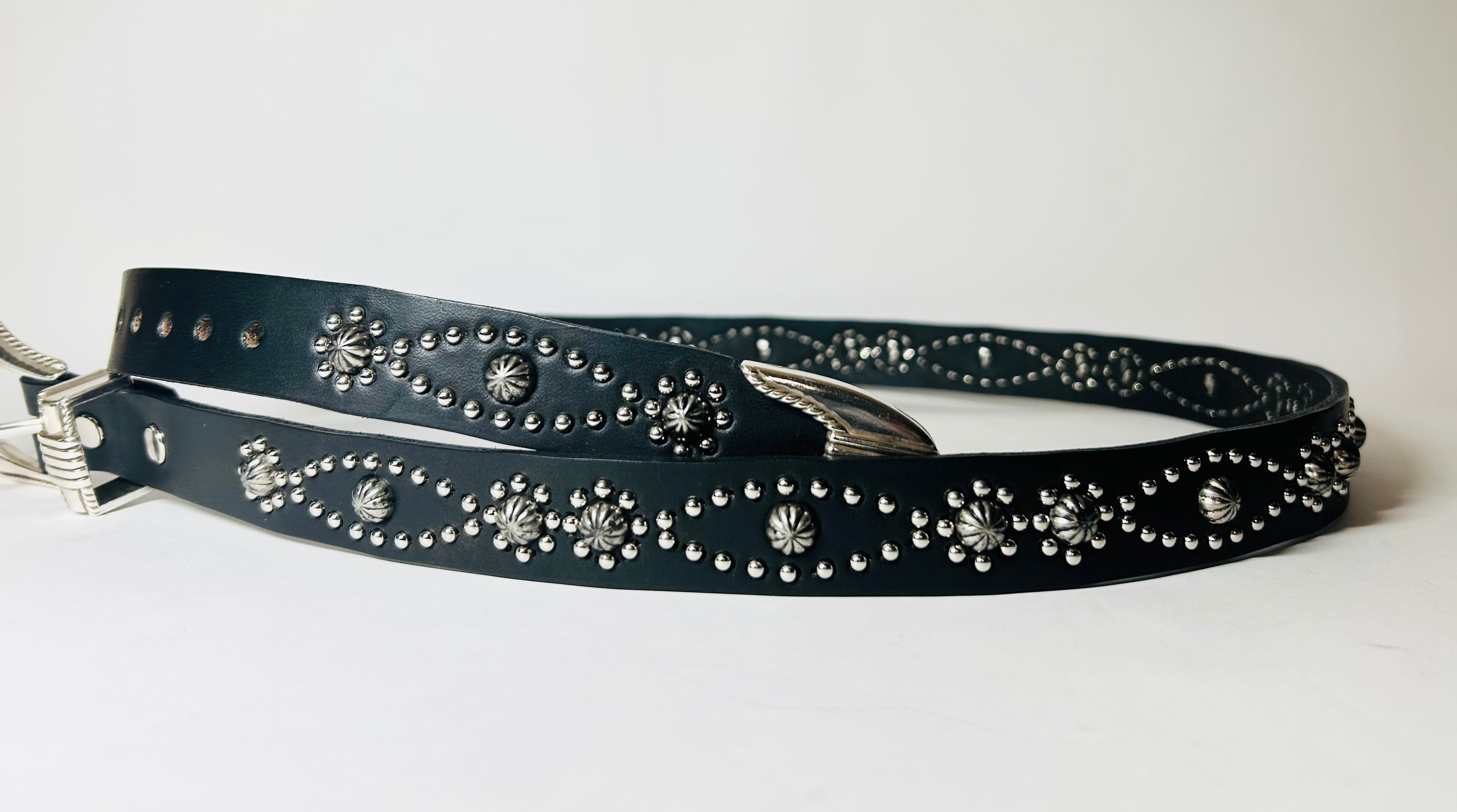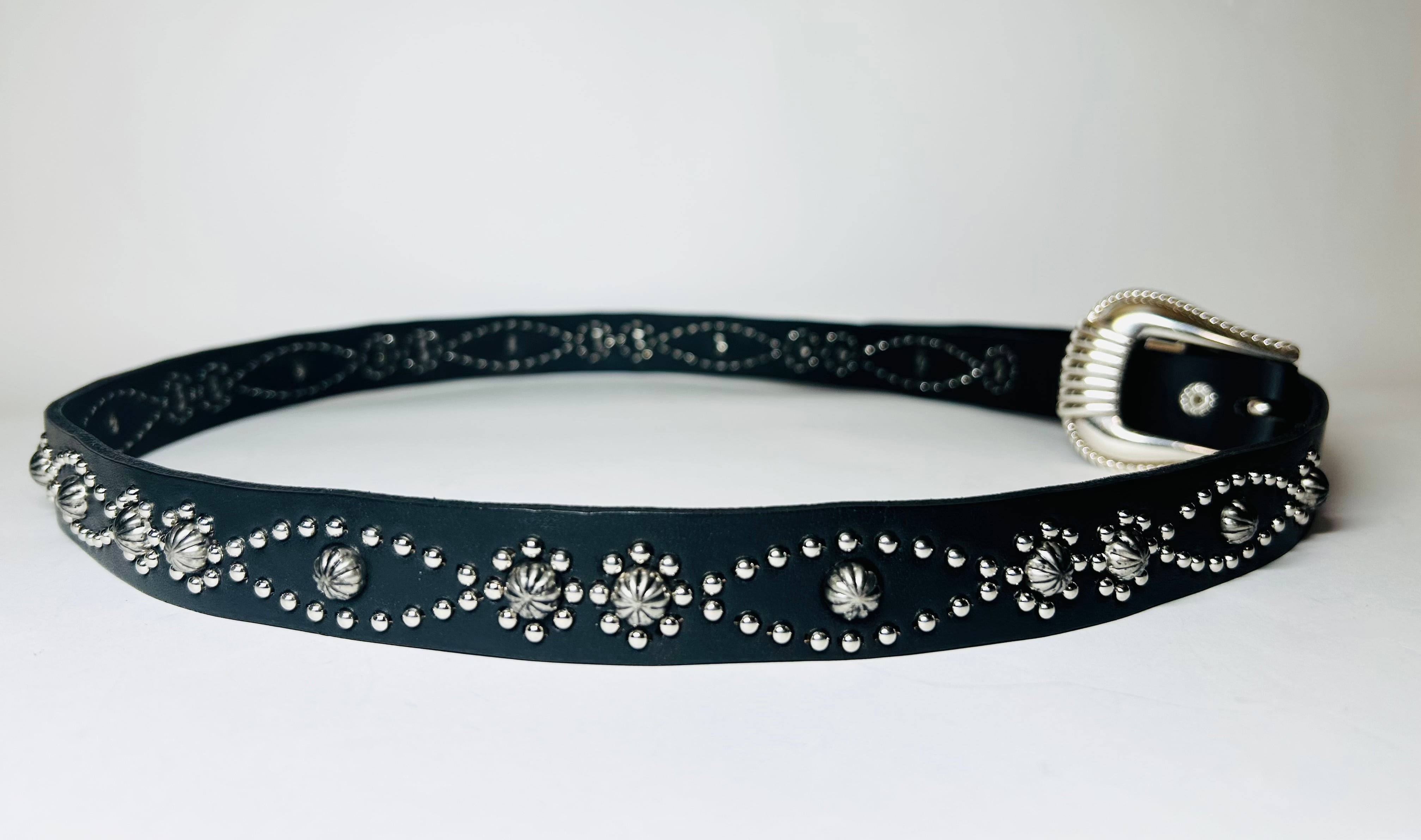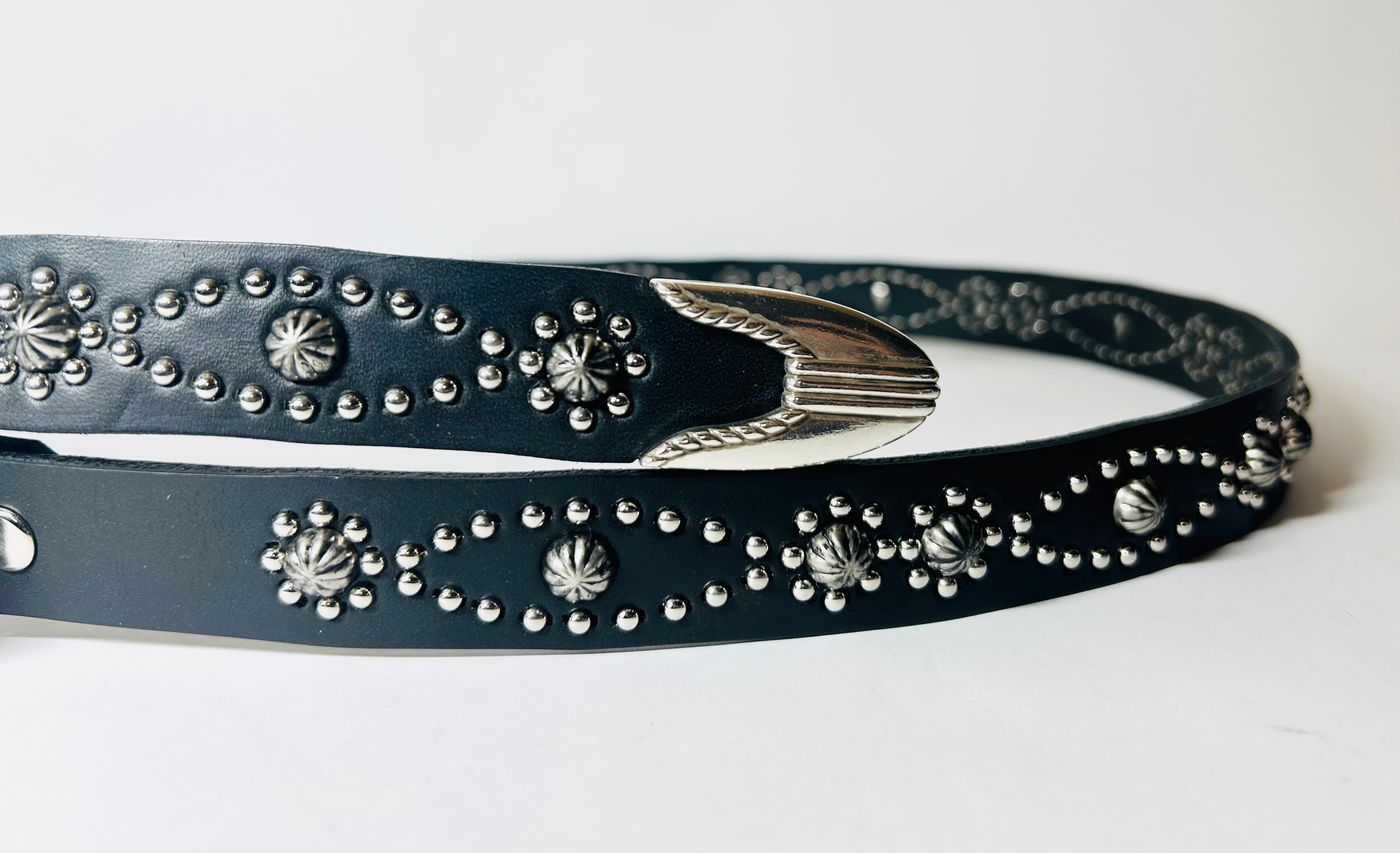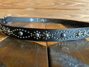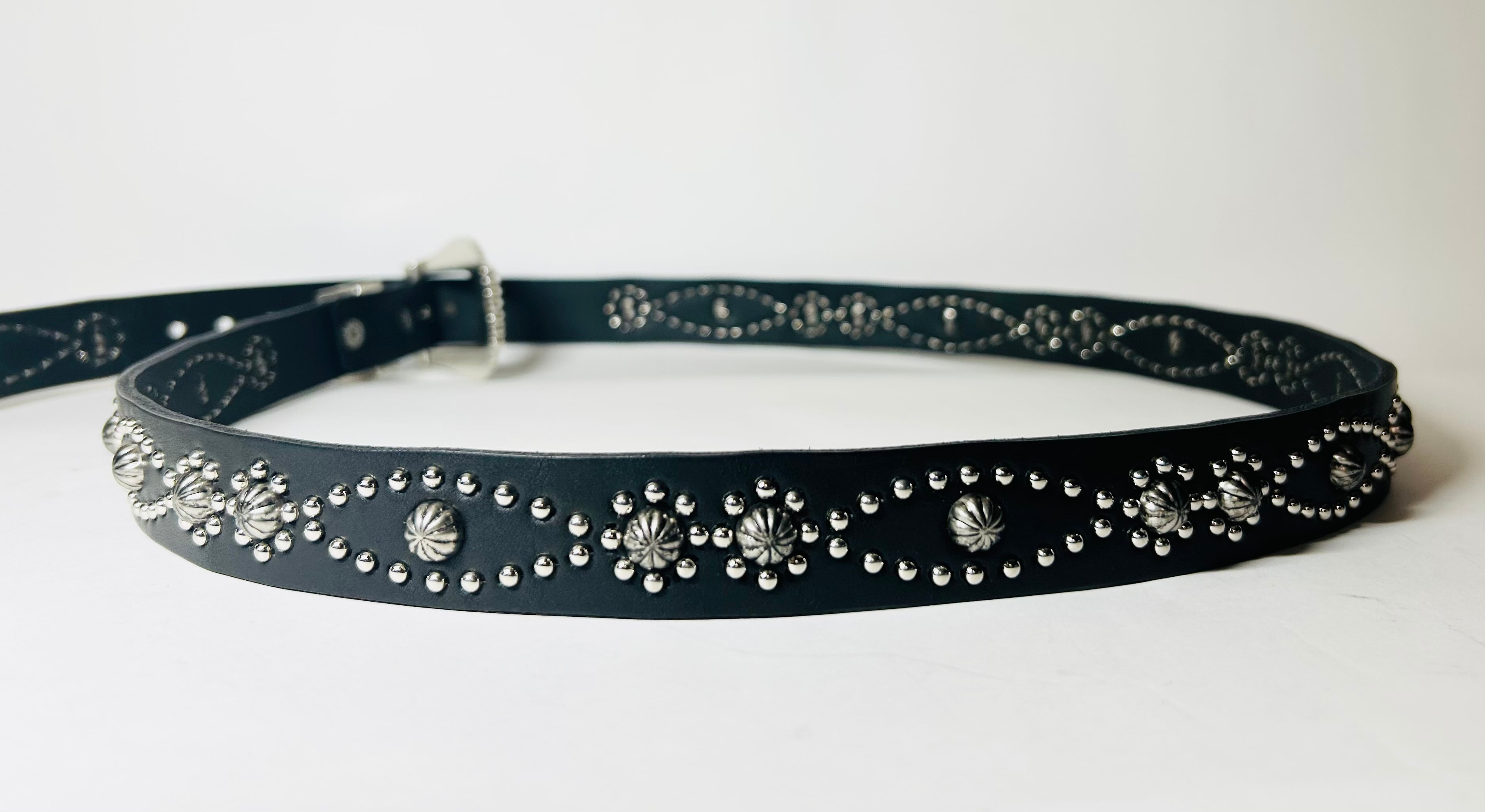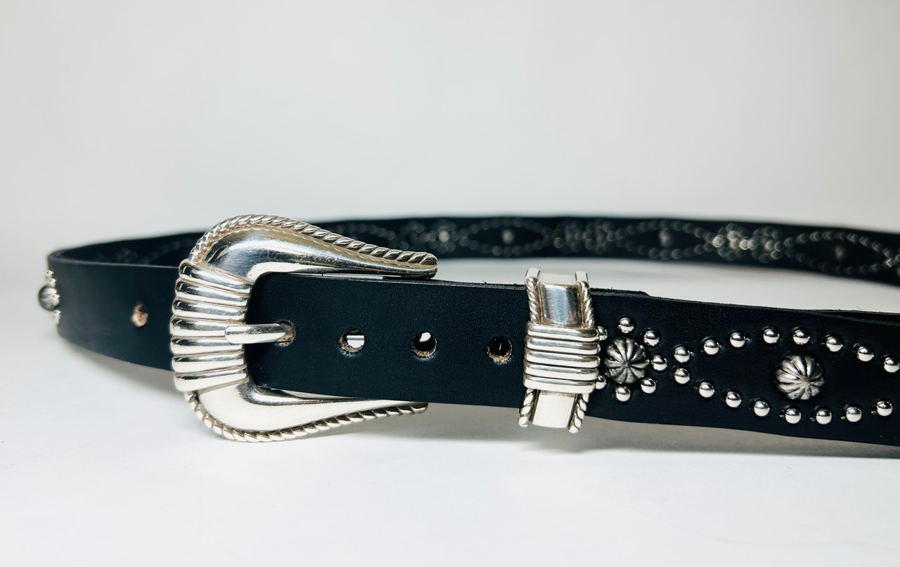 ローピング3ピースバックルを採用しベルト全面の360度にバタフライアポロを施したスタッズベルト。バックルの留め具はスナップボタン式ですので取り外しが可能です。
