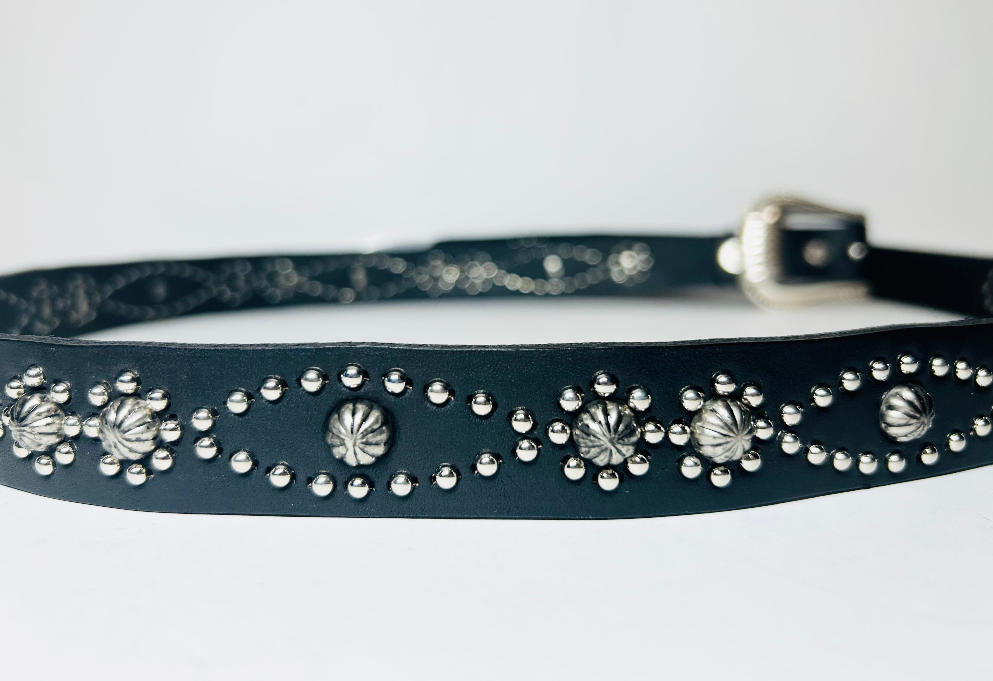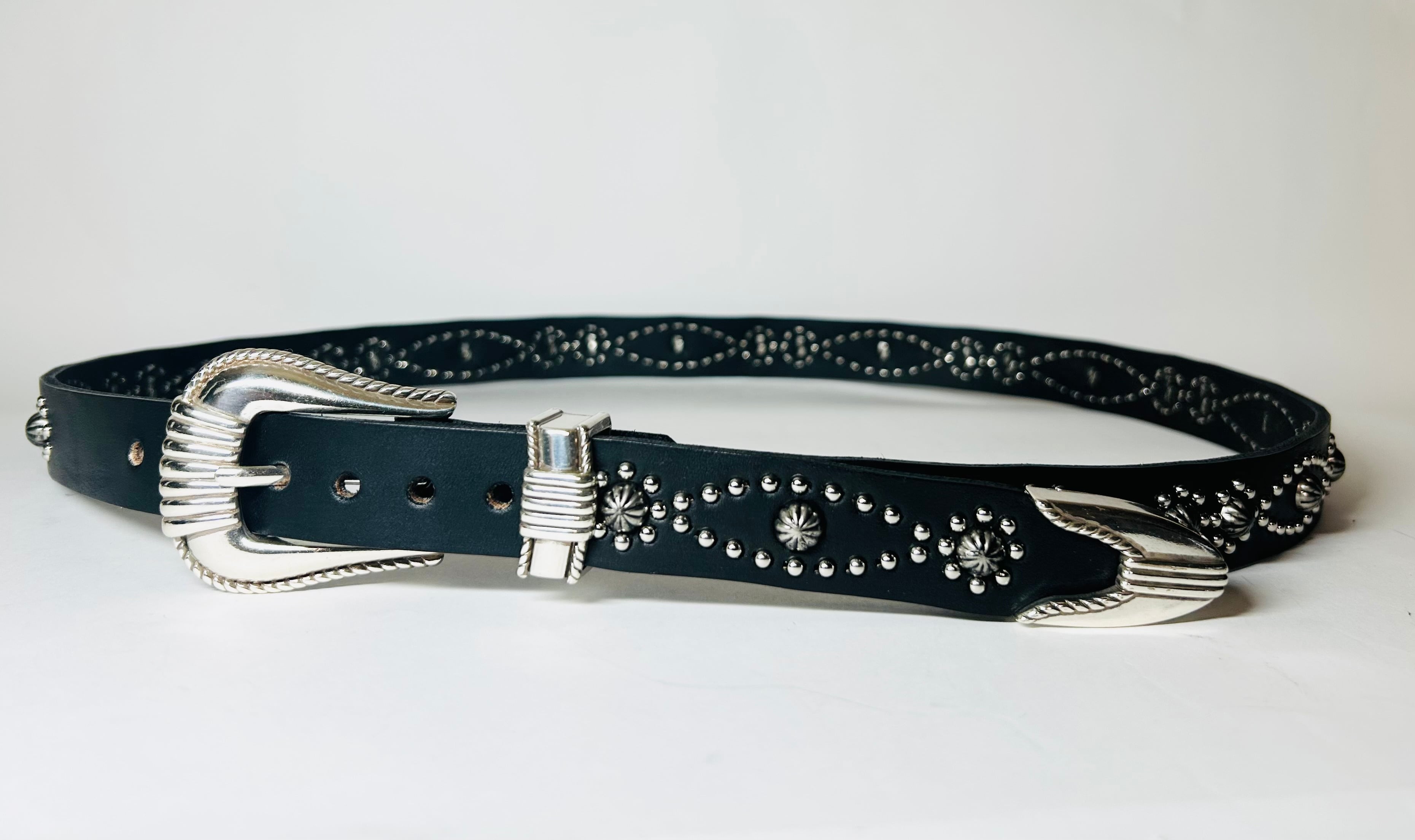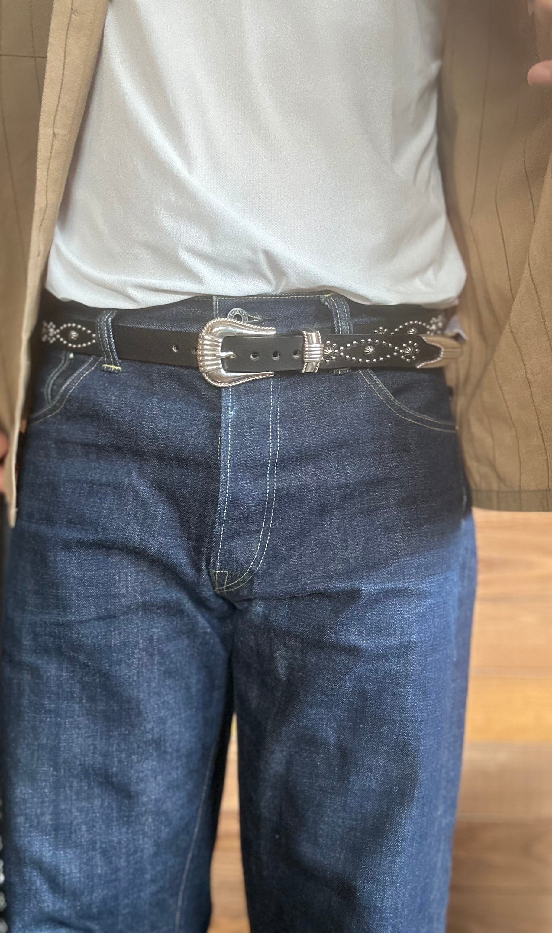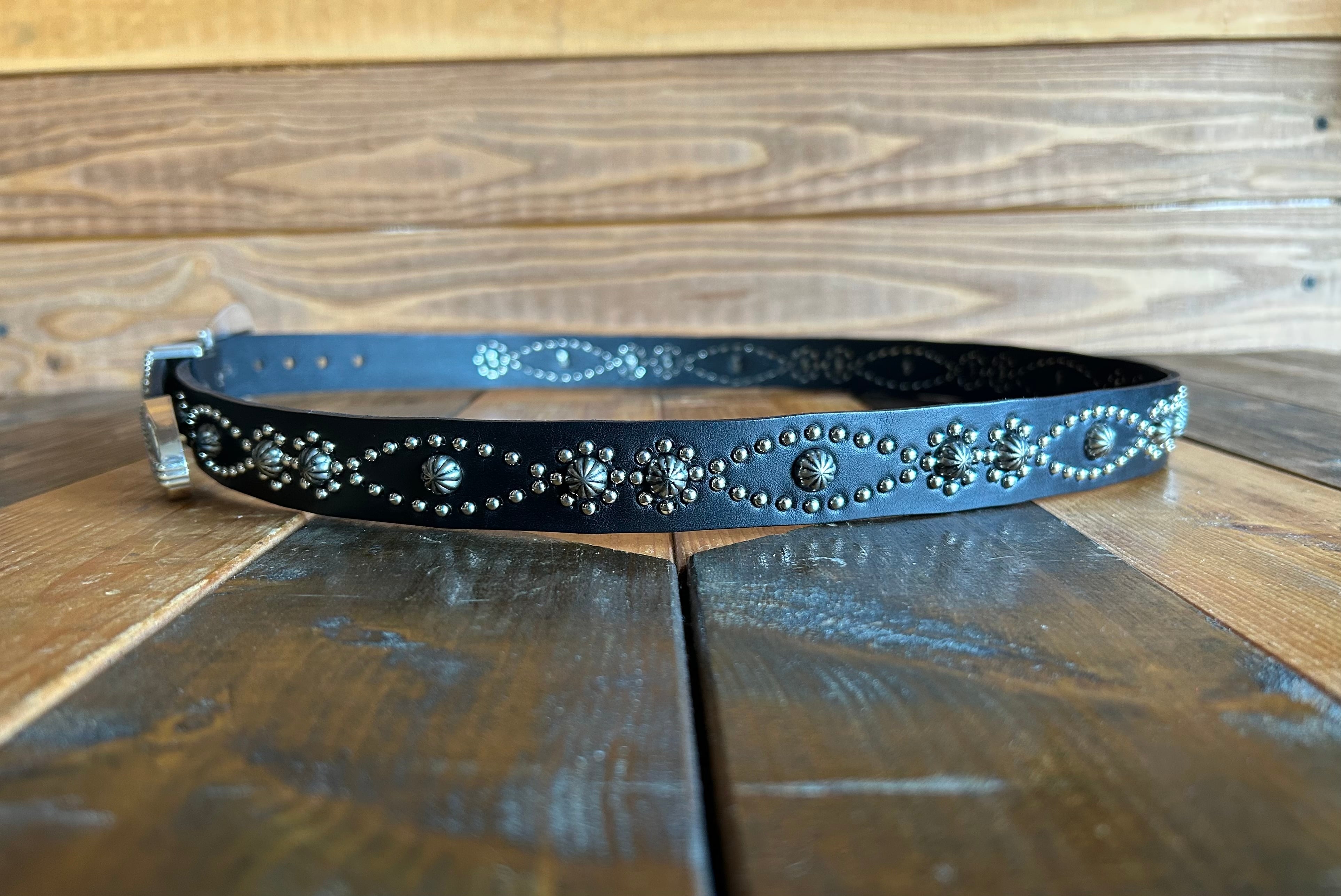 ローピング3ピースバックルを採用しベルト全面の360度にバタフライアポロを施したスタッズベルト。バックルの留め具はスナップボタン式ですので取り外しが可能です。
