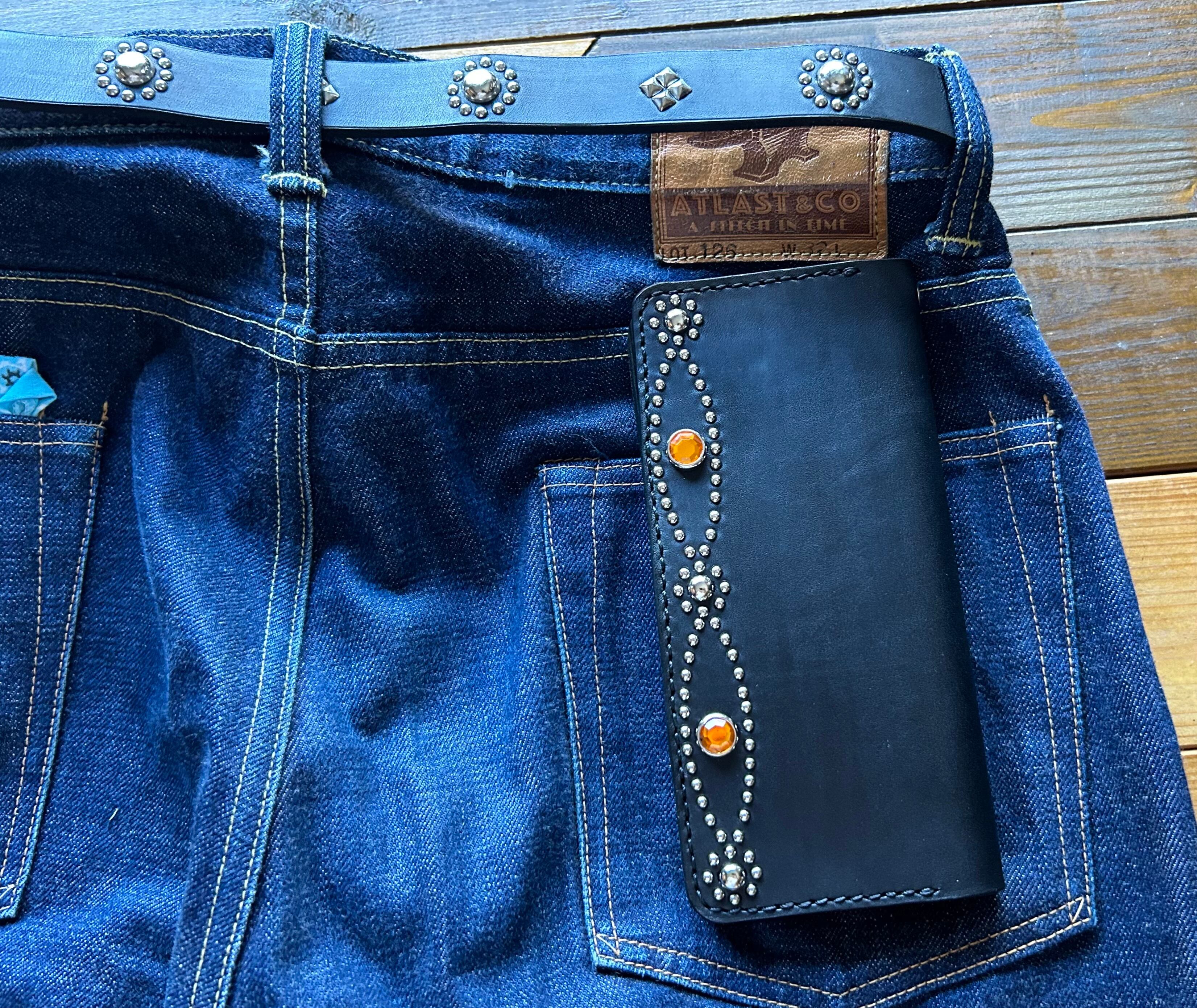 幸せが連なるよう願いを込めたサークルチェーンスタッズが特徴的なウォレットは1万円札も畳まずに収納できる横幅19cmのロングトラッカー。バックポケットに収納した際には、財布の頭がポケットから覗くため、視覚的なアクセントを加えます。内部は3層構造になっています(画像16)カード収納も充実しており場所はコインポケットの表側、フラップの裏、そして隠しカード入れの3箇所に分かれています。各所に合計4.5枚、最大で15枚ほどのカードを余裕を持って収めることが可能です。ジッパーには「42Talon」を使用しています。重厚な使い心地とアンティークな風合いが魅力のタロンジッパーは1960年代にアメリカで誕生し、当時画期的ジッパーとして評され今でもアメカジ好き、ヴィンテージ好きに愛されています。ロングトラッカーウォレットTALONは質感や機能性を兼ね備えた財布です。