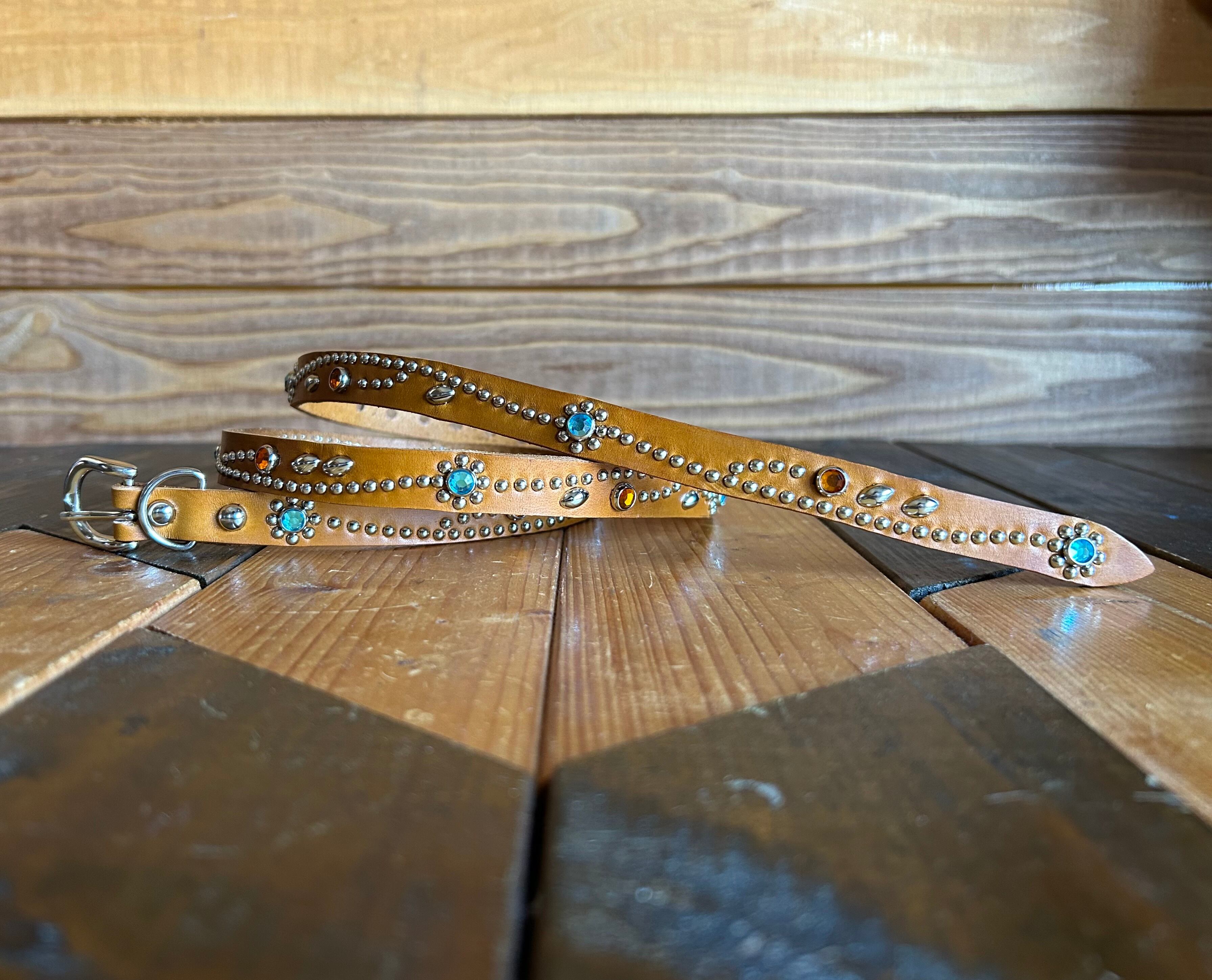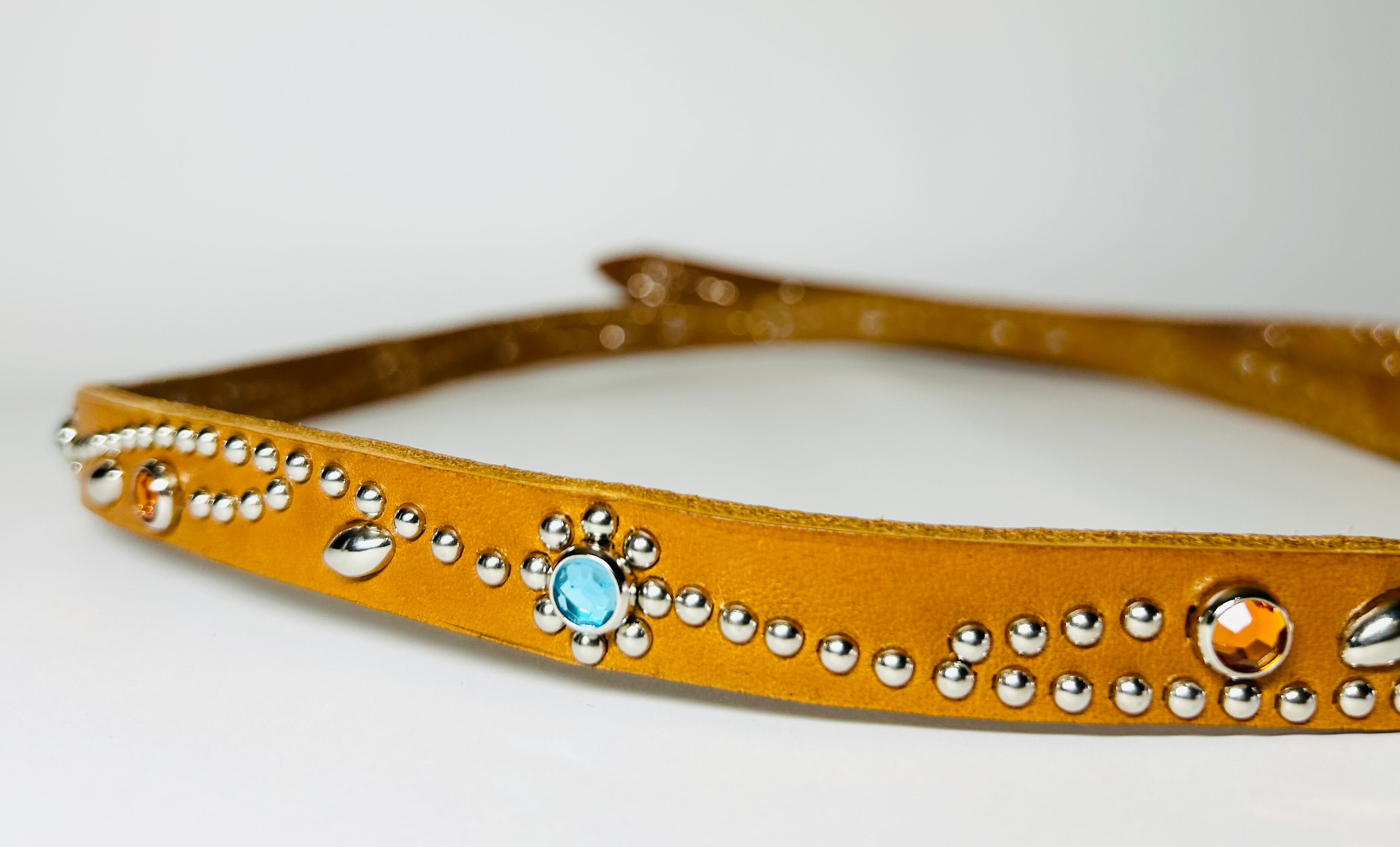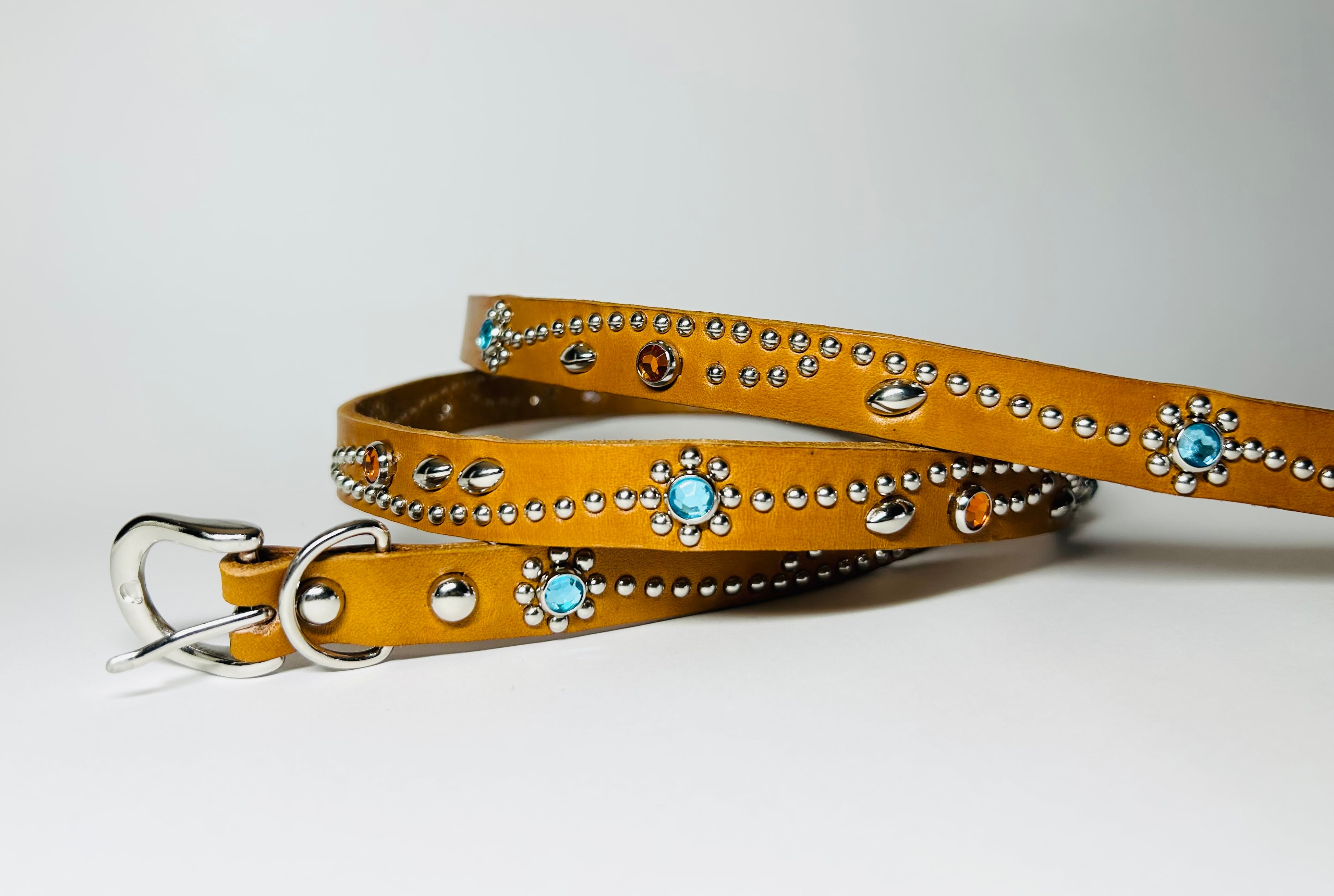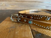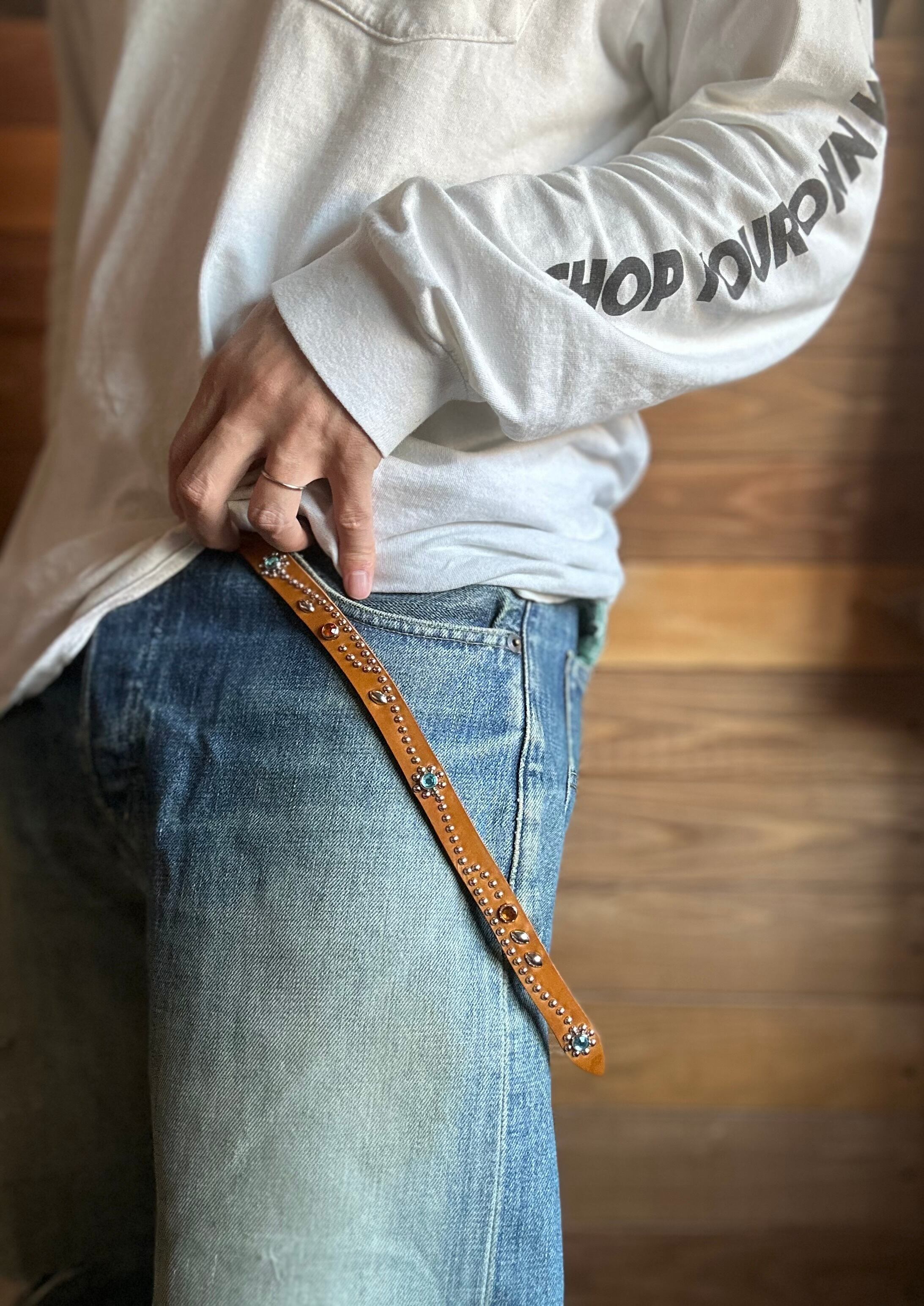 胴回り、剣先全て360度にスタッズを施したナローベルト。革カラーは【ライトブラウン】