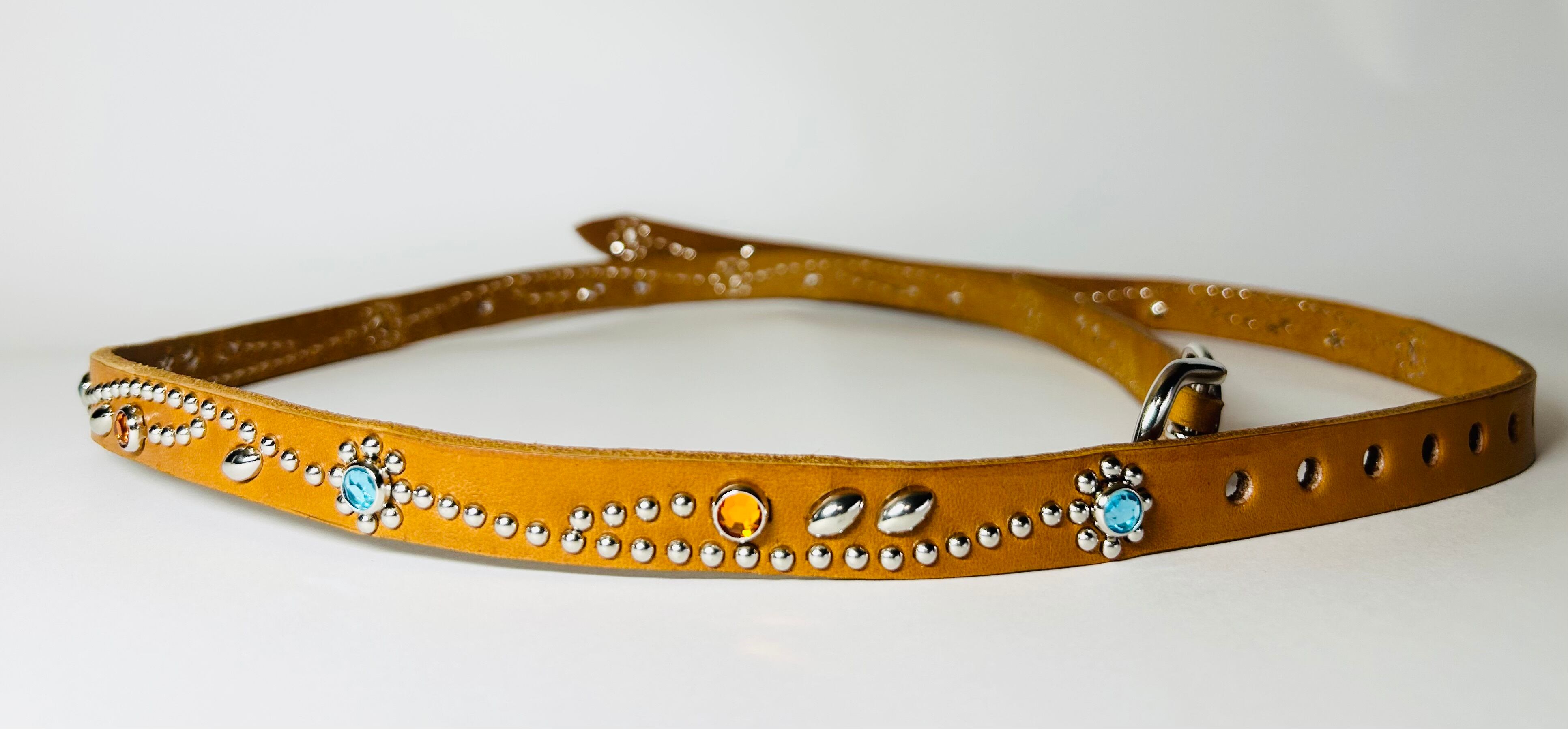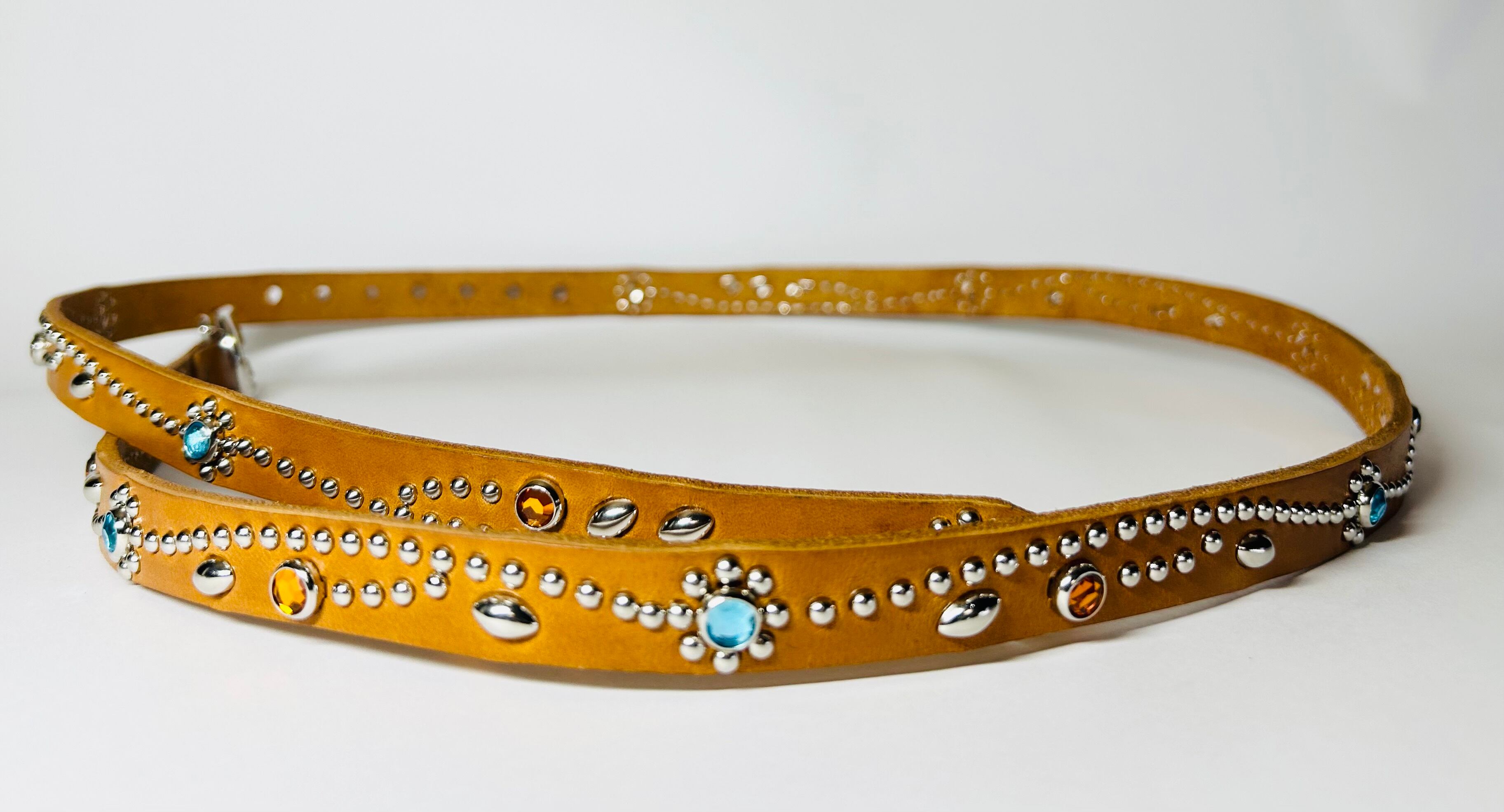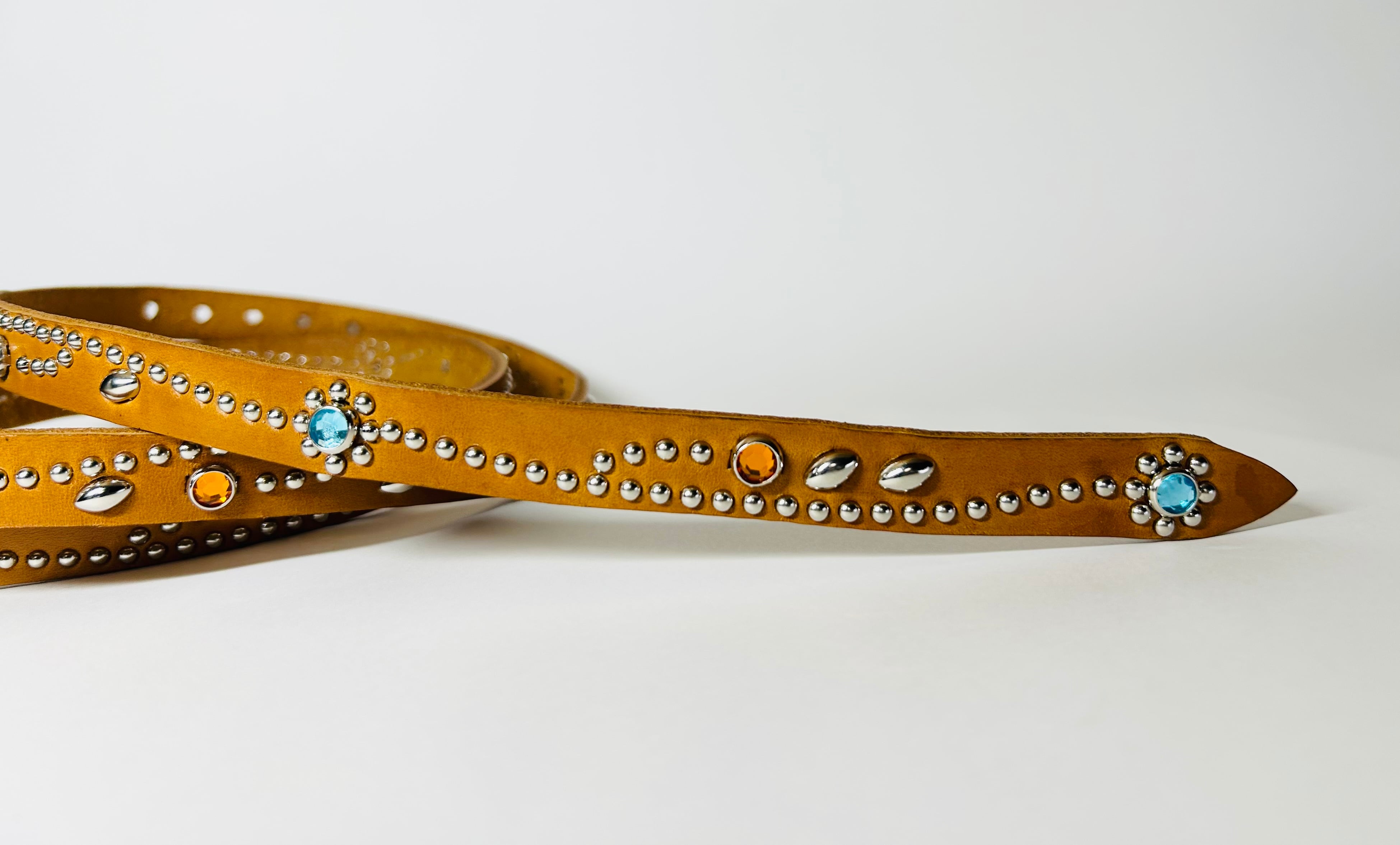 胴回り、剣先全て360度にスタッズを施したナローベルト。革カラーは【ライトブラウン】