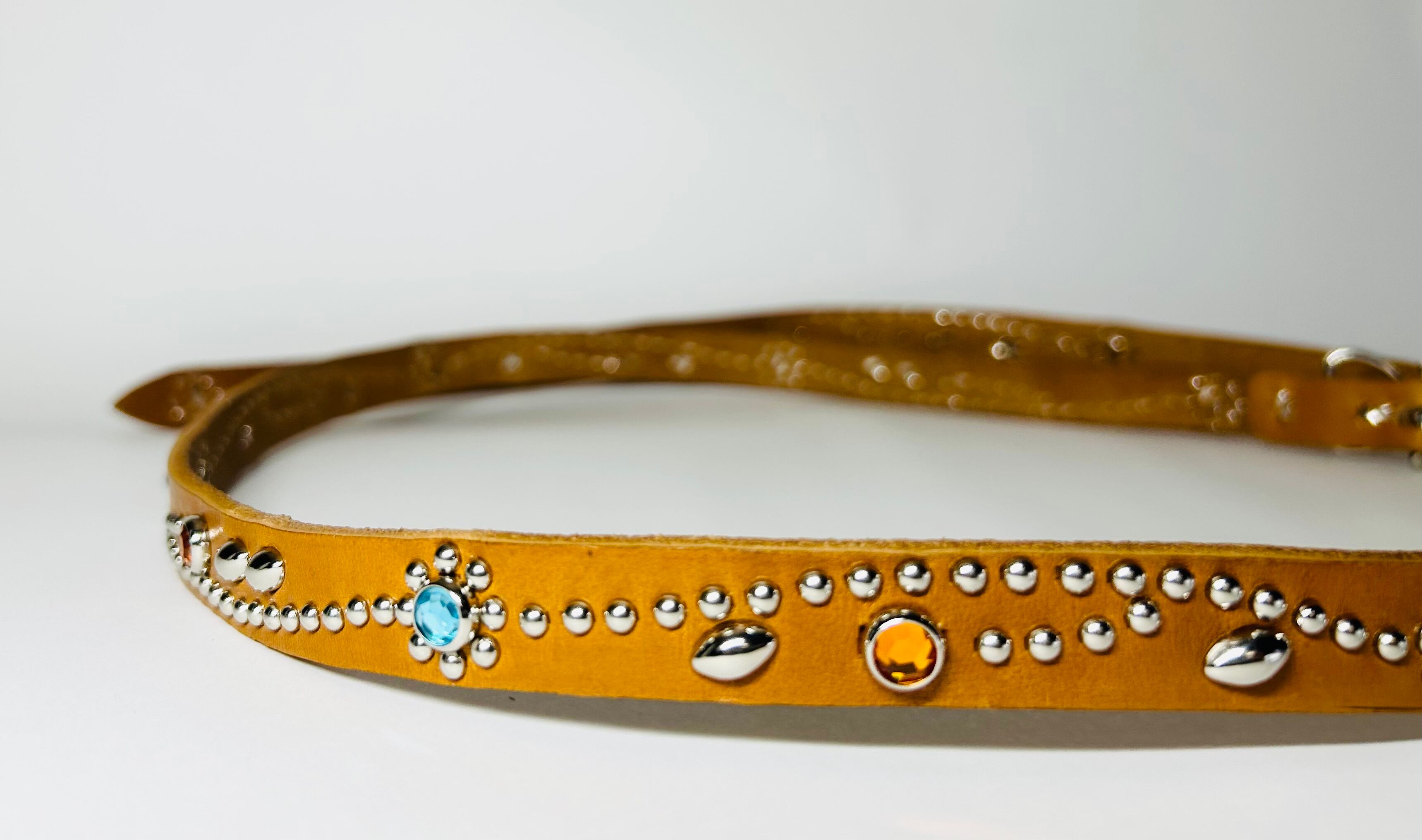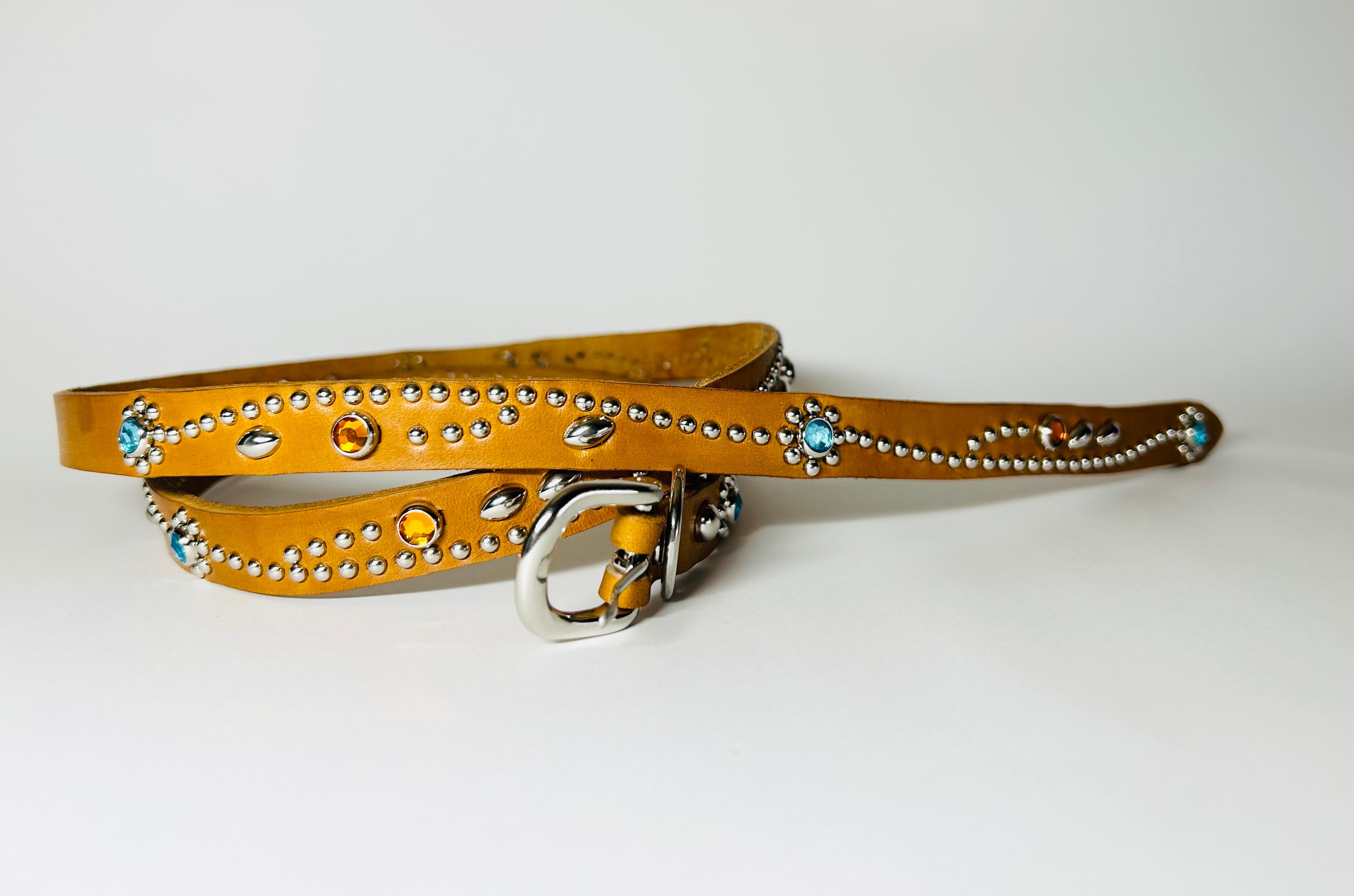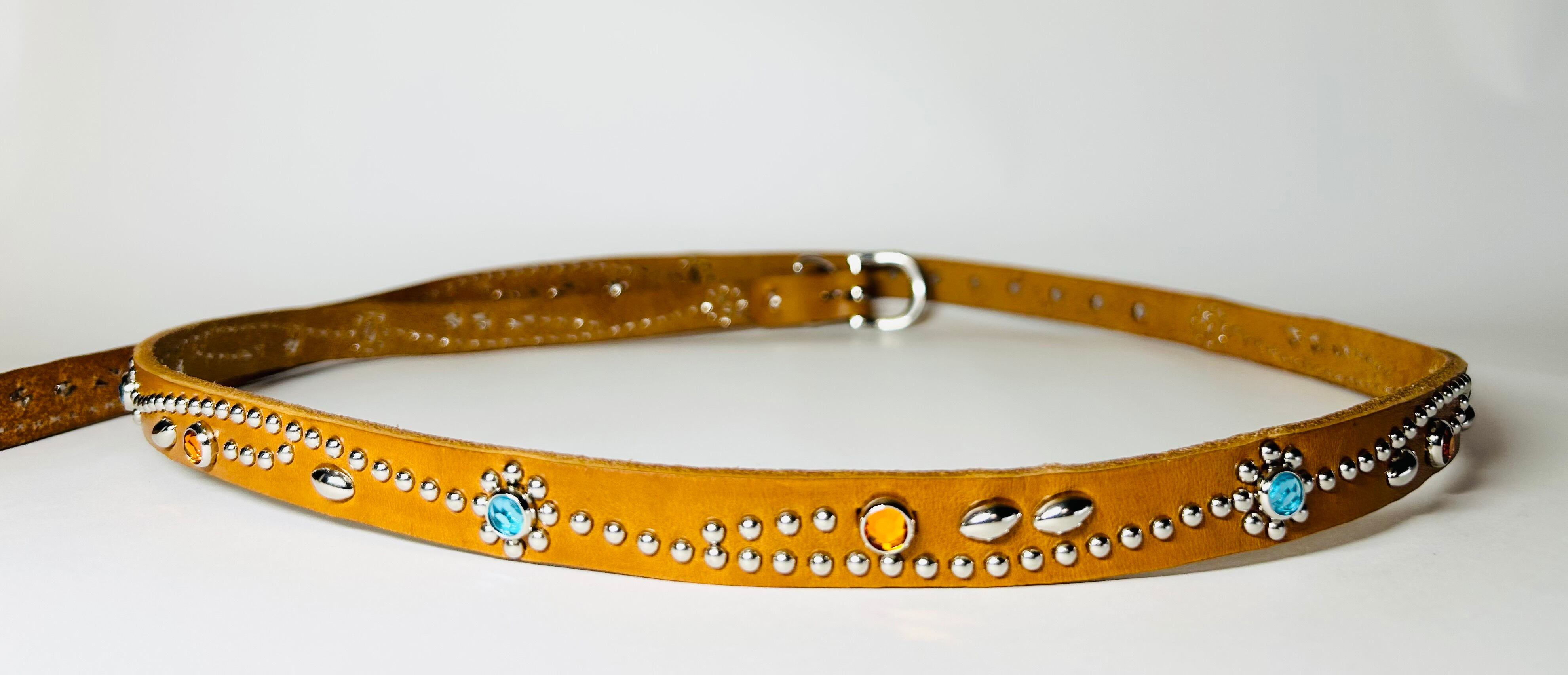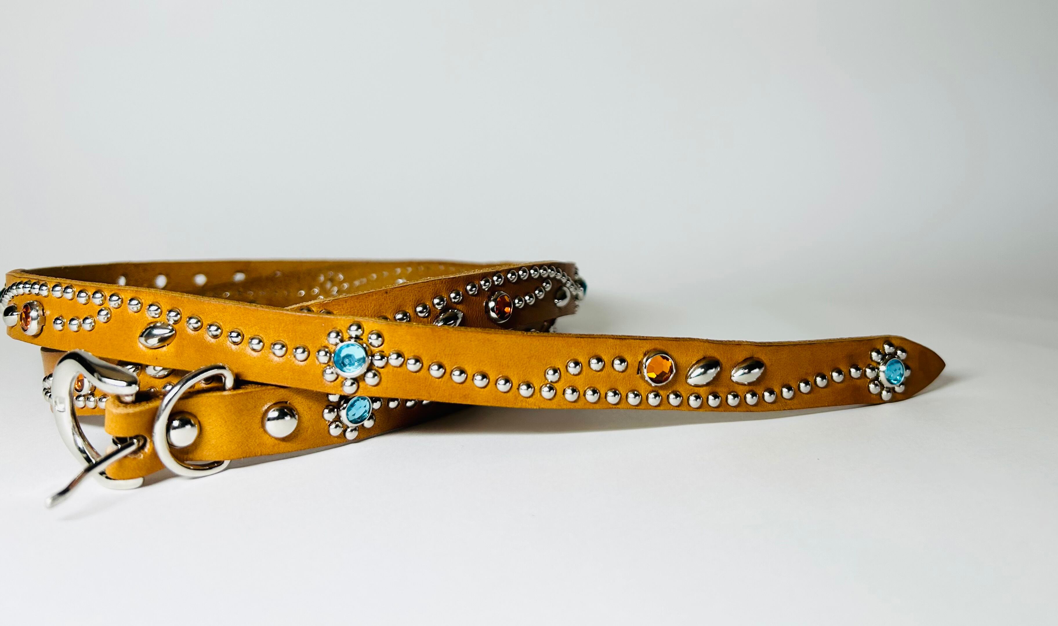 胴回り、剣先全て360度にスタッズを施したナローベルト。革カラーは【ライトブラウン】