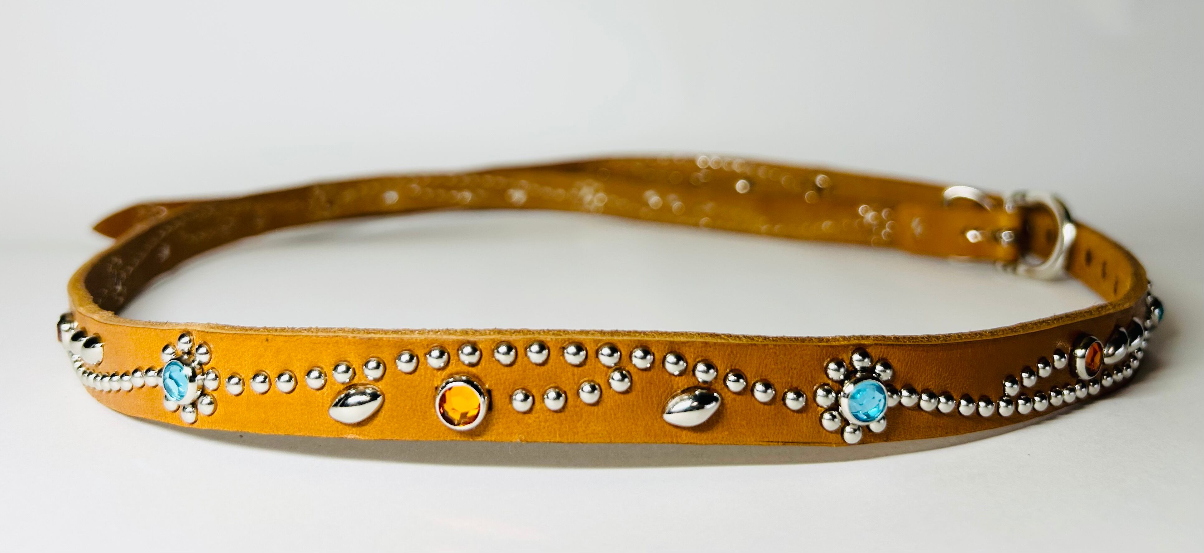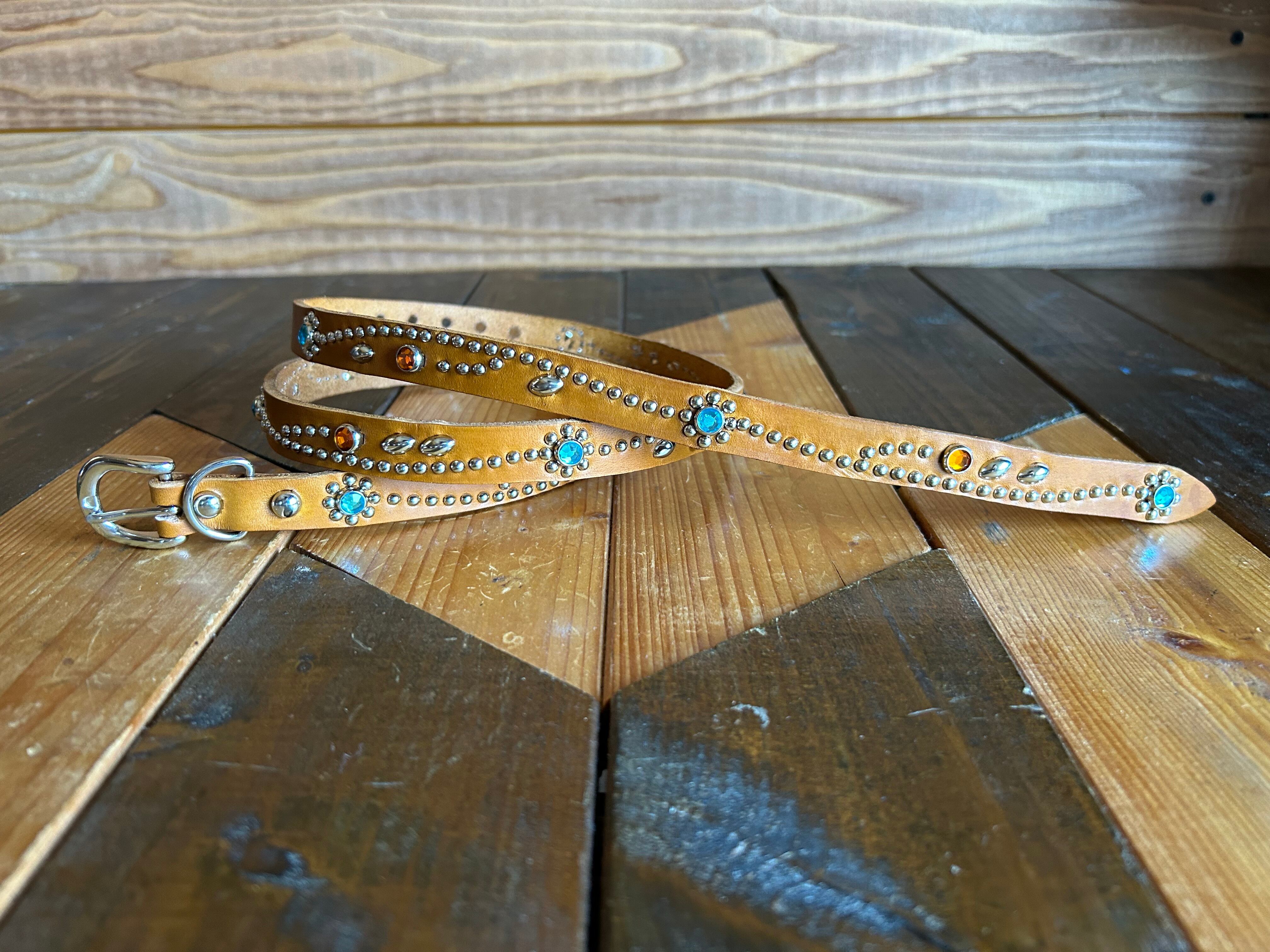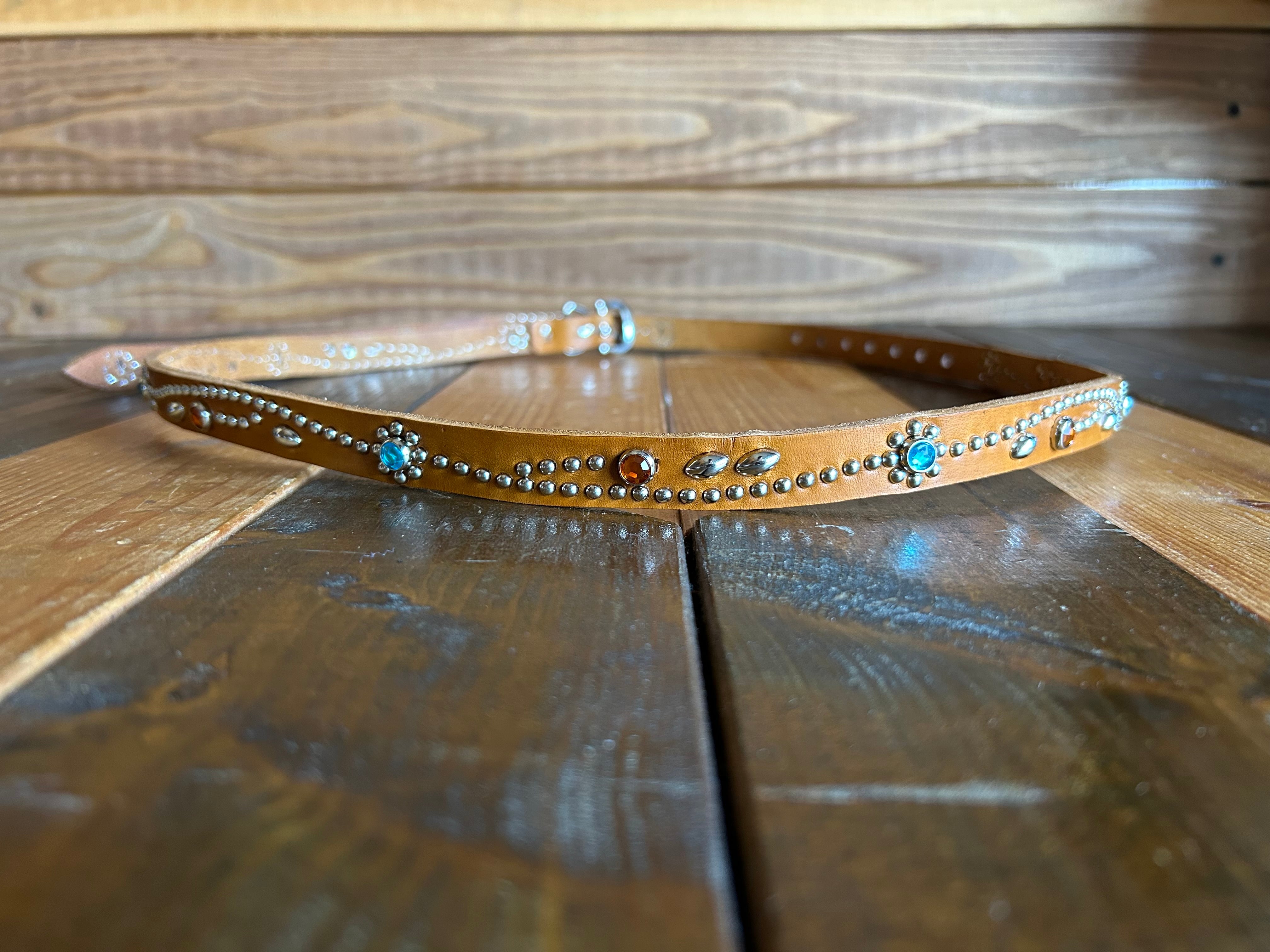360スタッズベルト(1,5cm幅)スカイブルーフラワー【ライトブラウン】