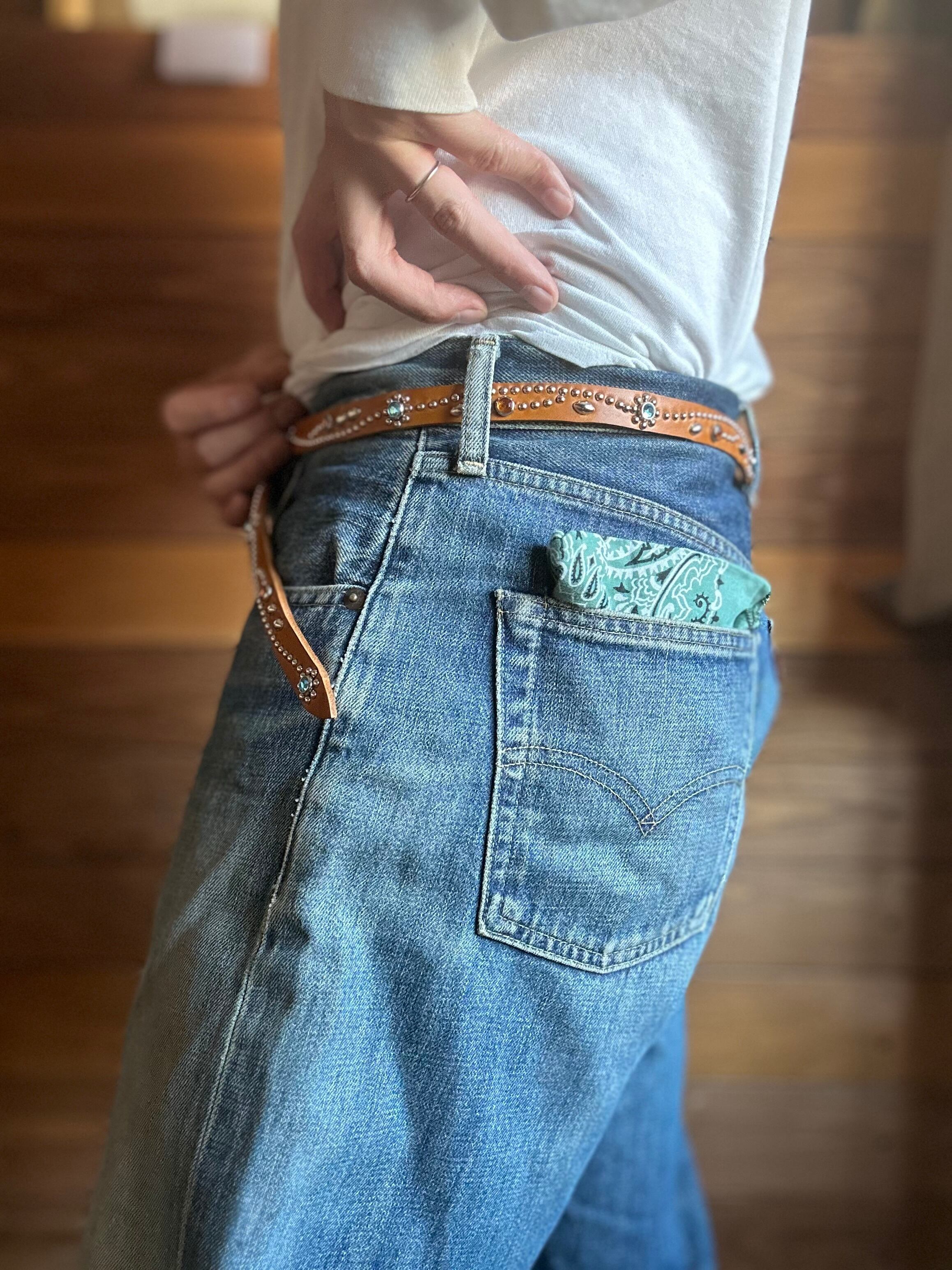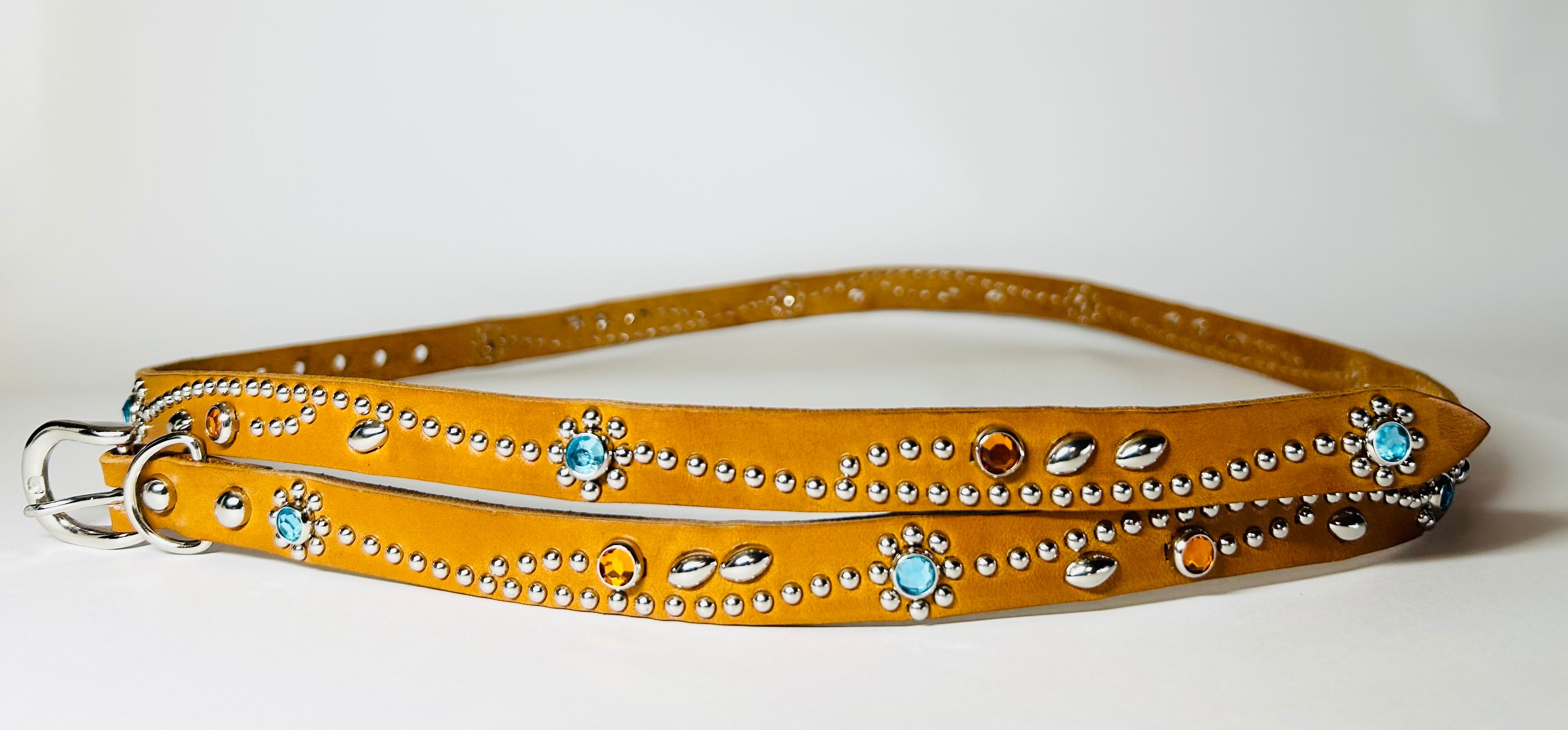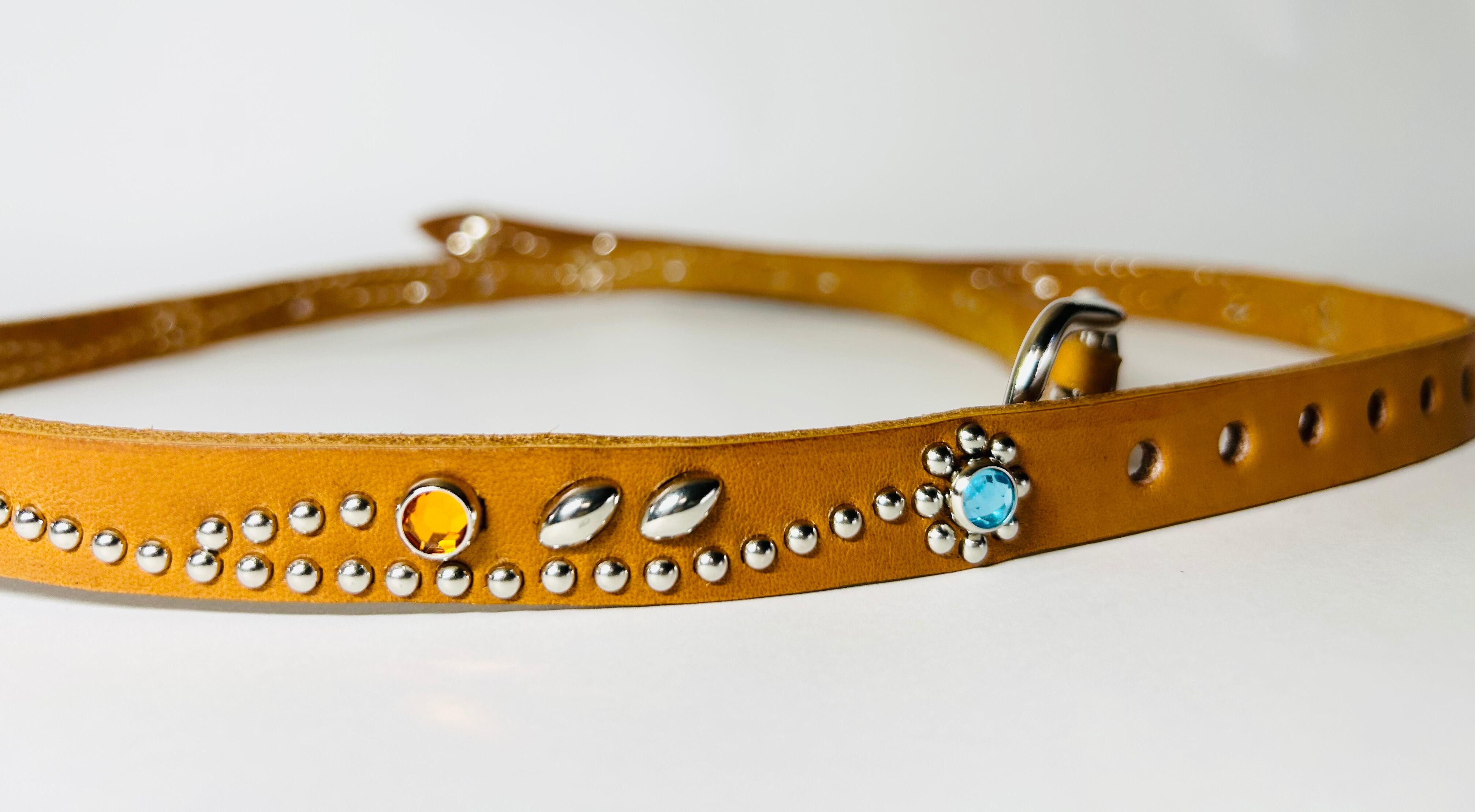 360スタッズベルト(1,5cm幅)スカイブルーフラワー【ライトブラウン】