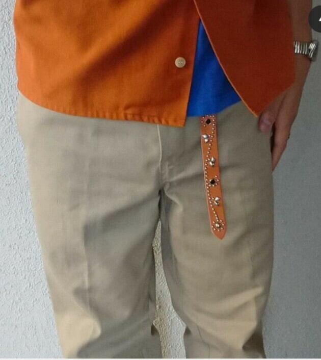 剣先にブラックストーンでフラワースタッズを施したナローベルト。革カラー【ライトブラウン】