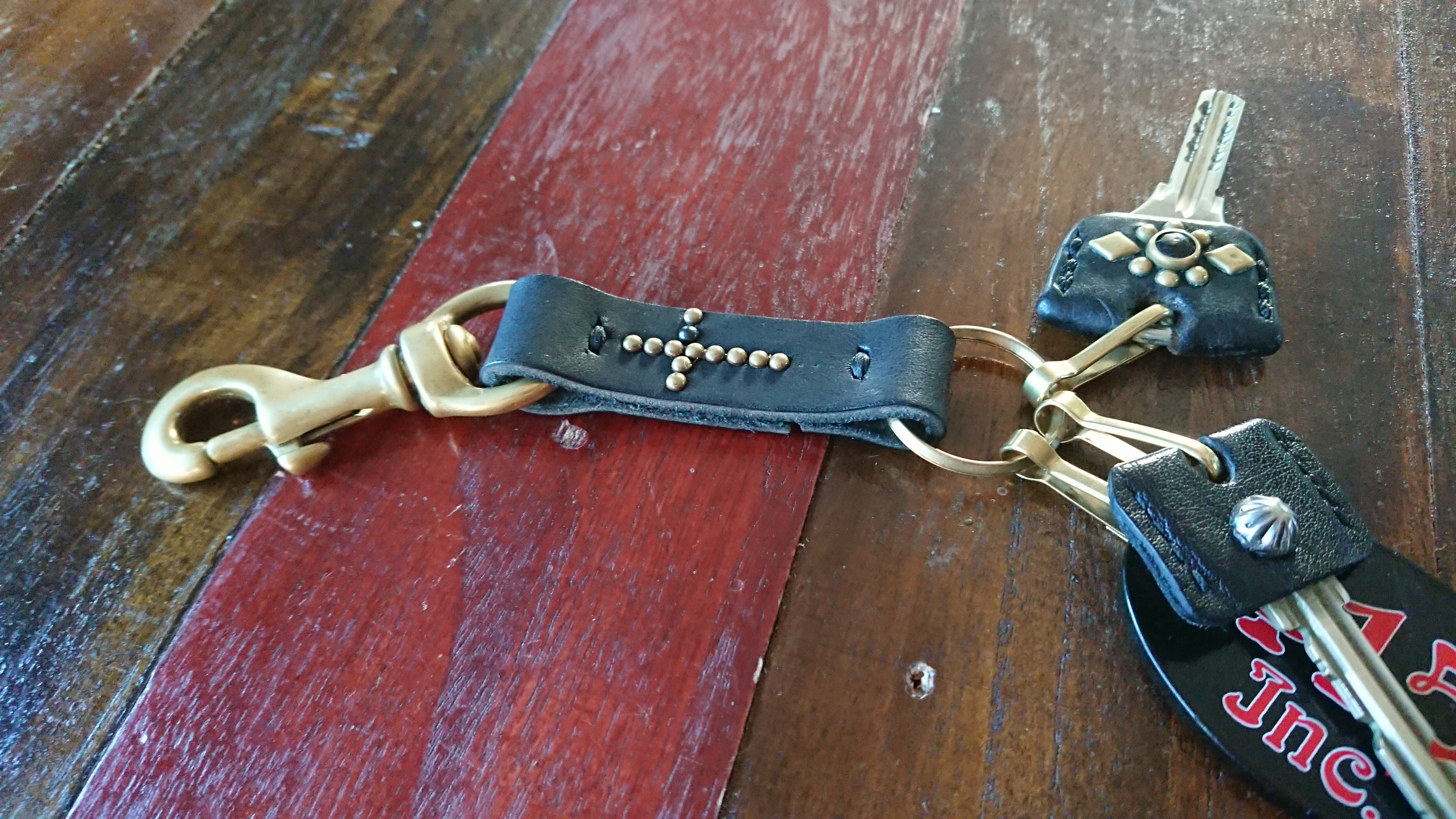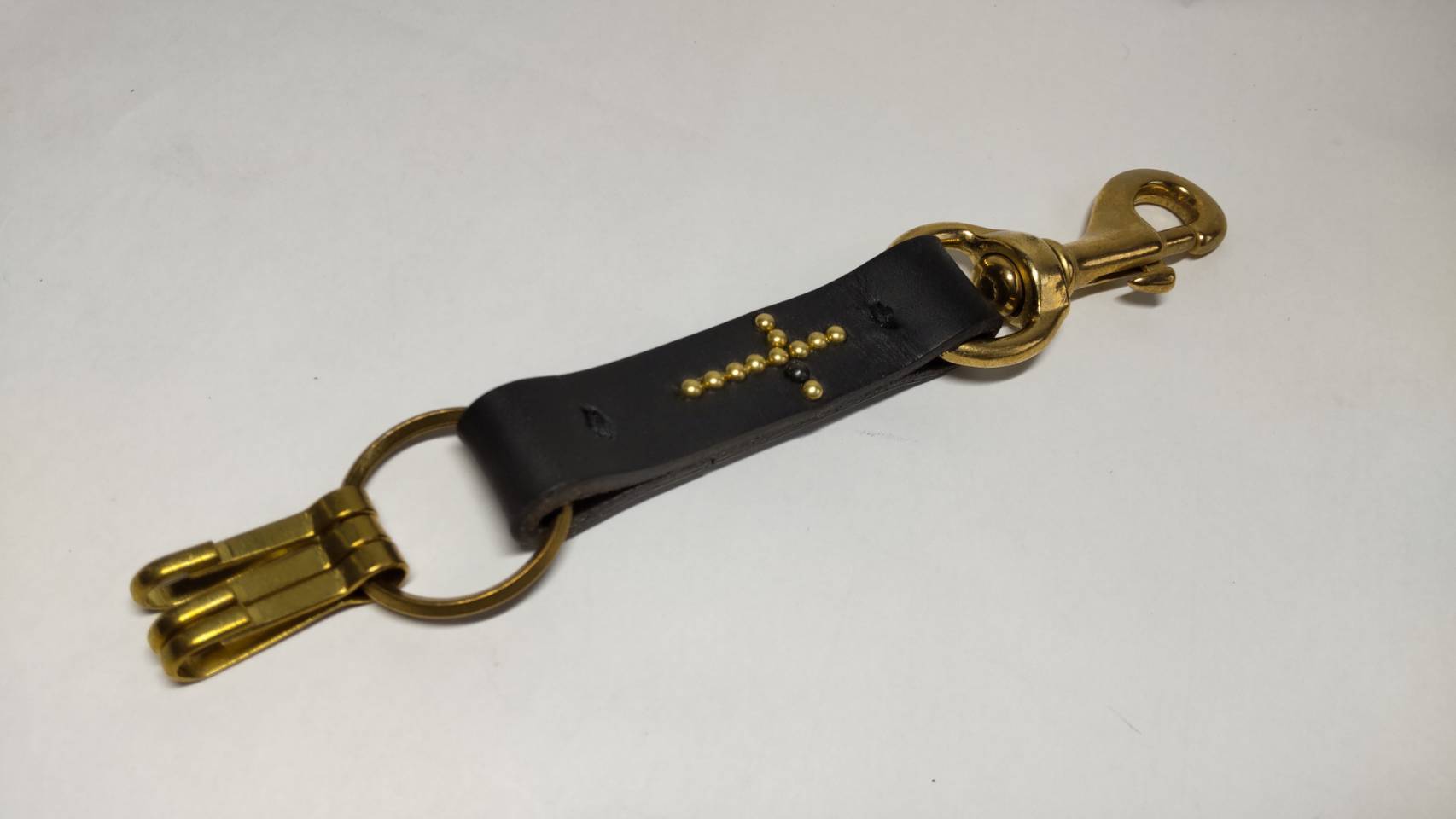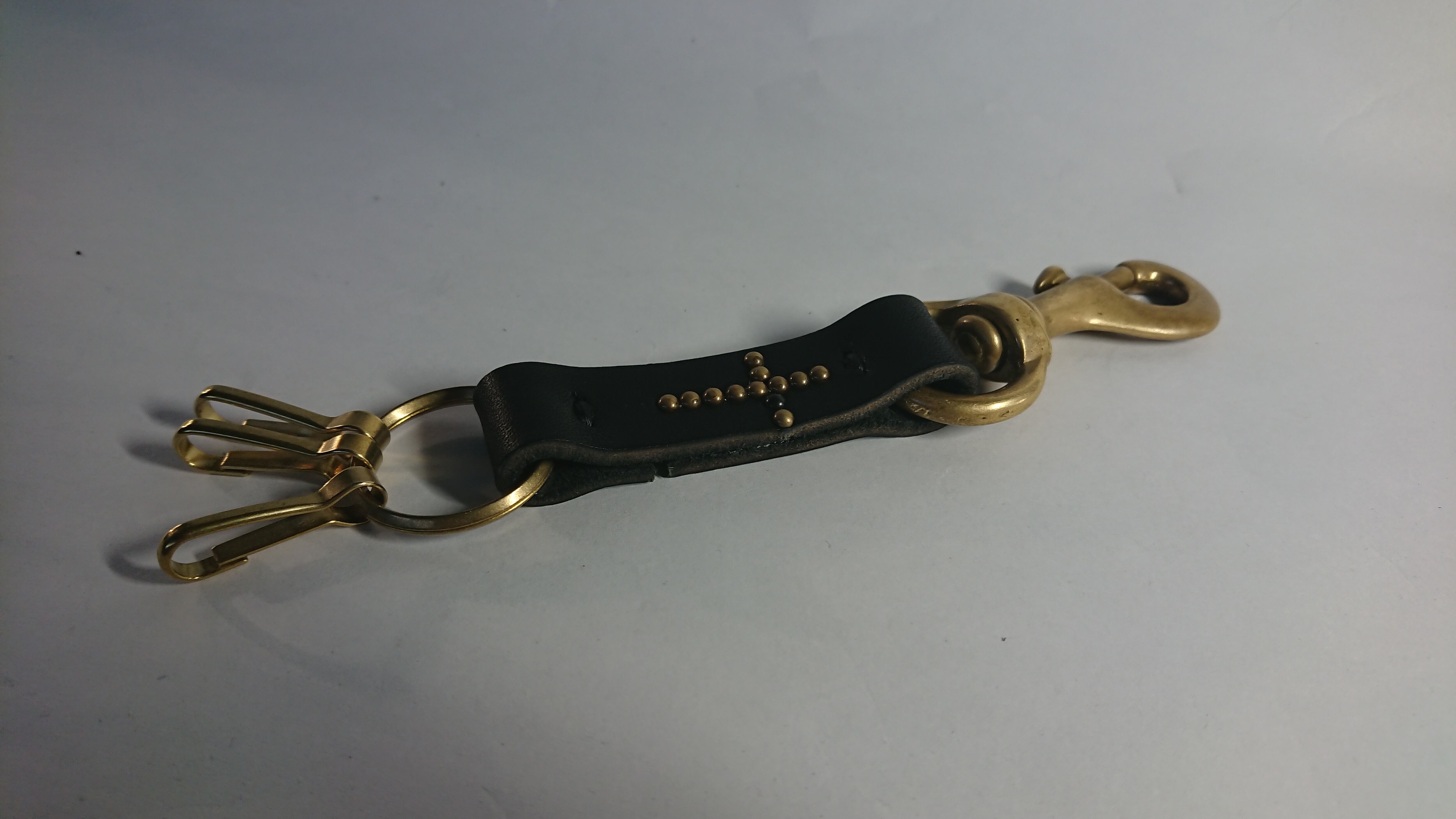 ブラス金具、ヴィンテージブラススタッズを使用したキーリングです。