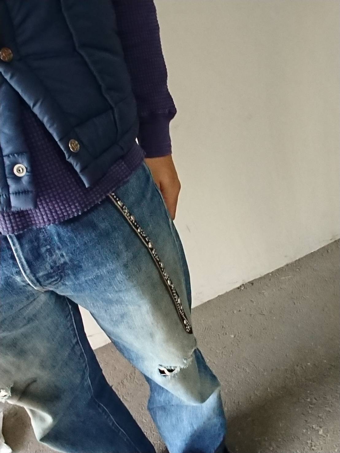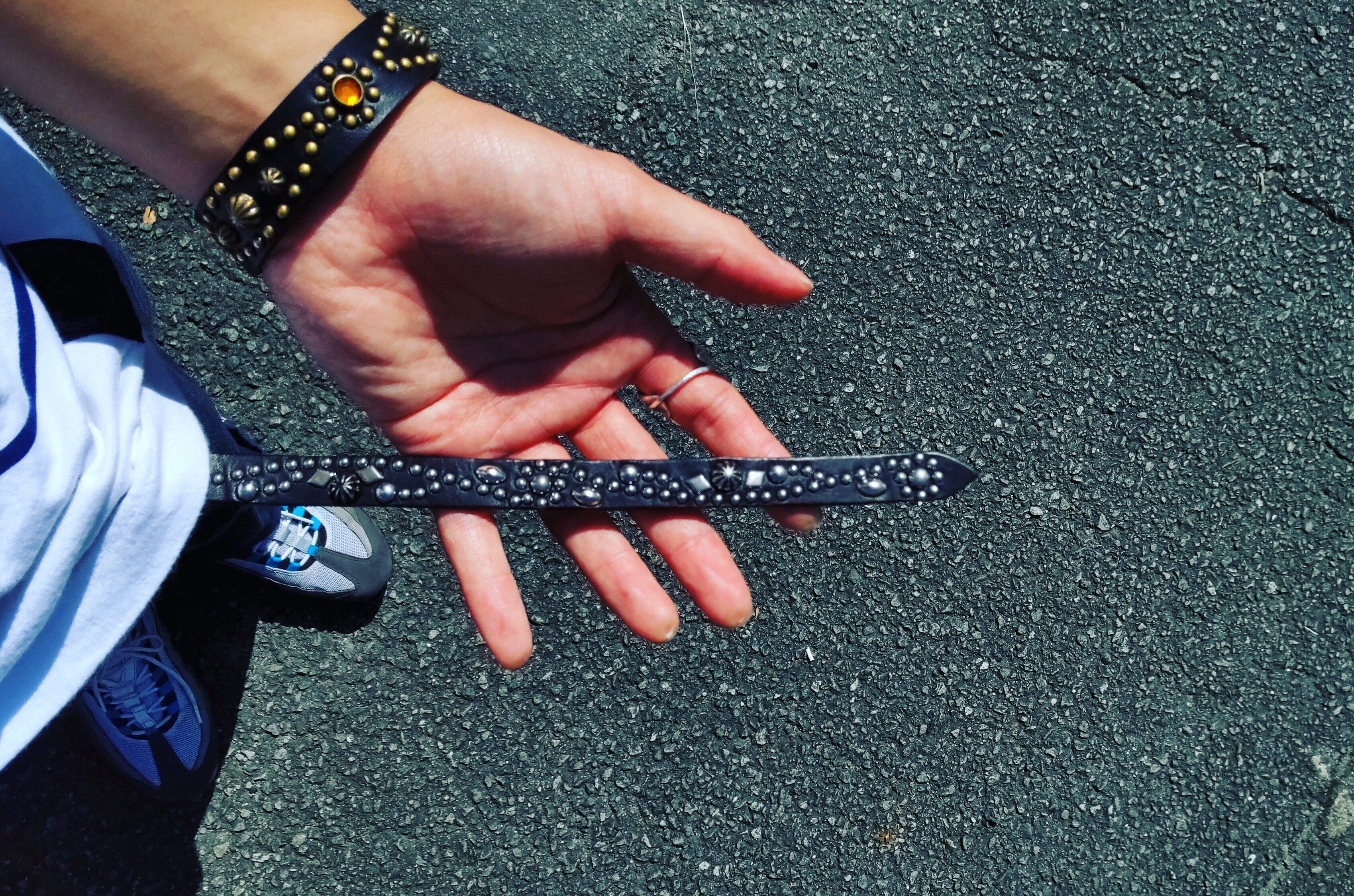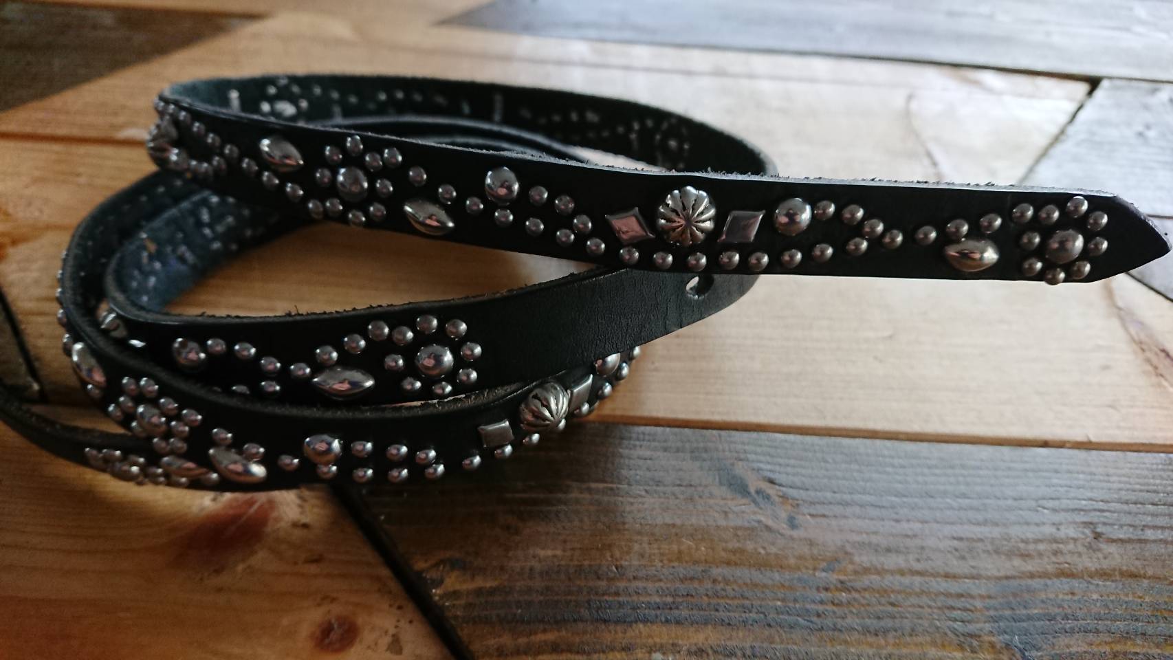 ベルト全体の360度にスタッズを施したナローベルト。ケン先は約40センチです。
