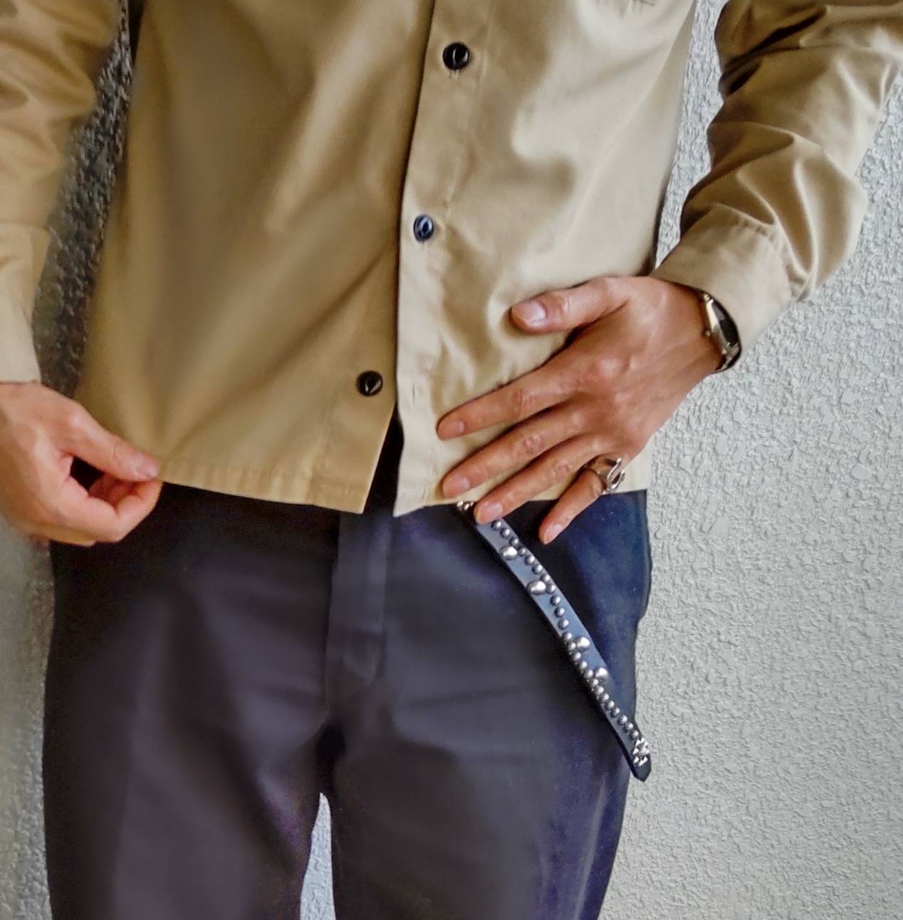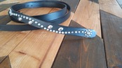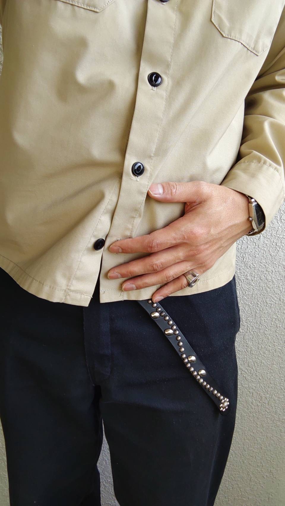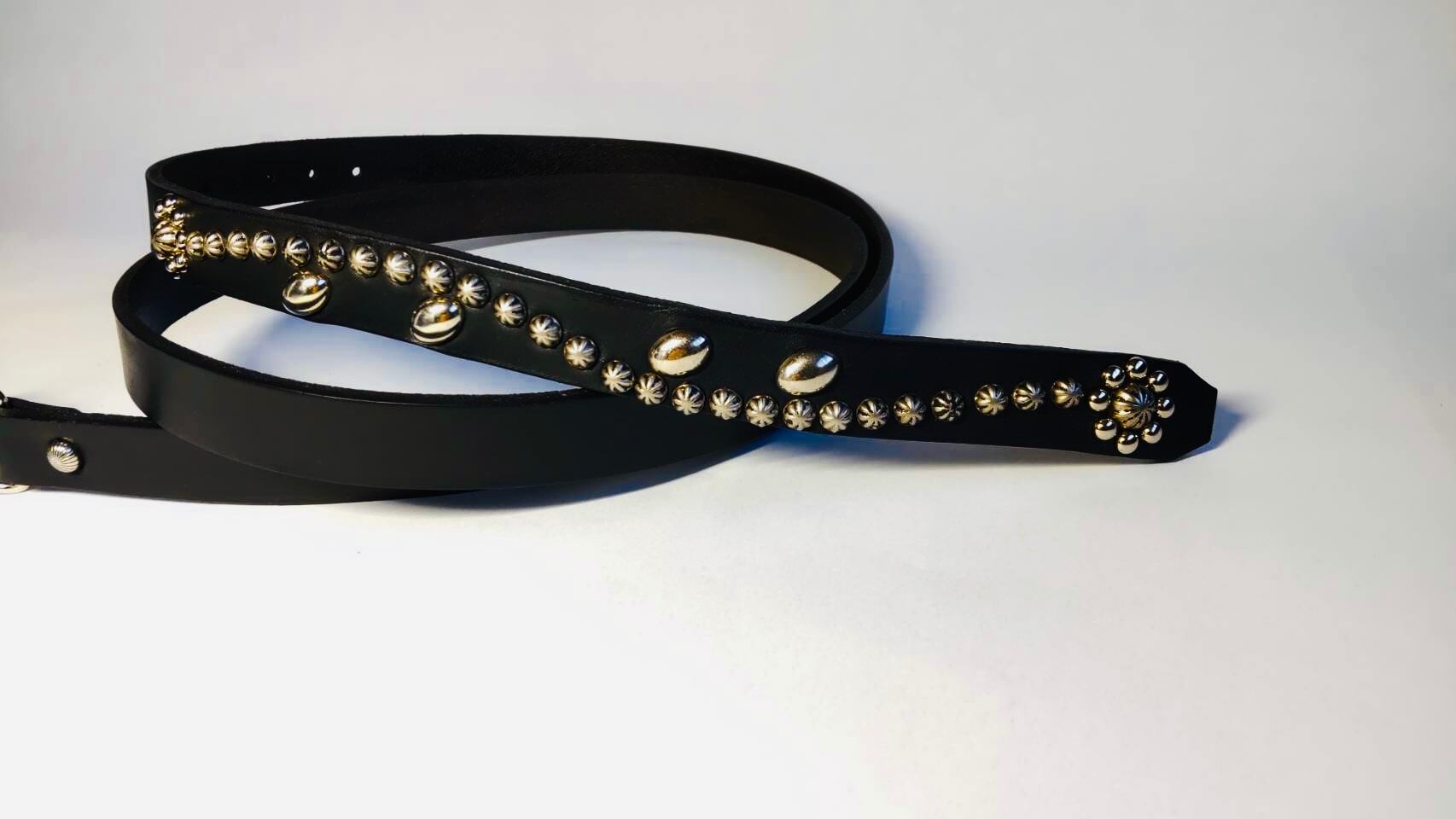 剣先にスモールアポロ6mmミリとリーフスタッズでフラワーを表現したナローベルト、剣先の長さは約30センチです。