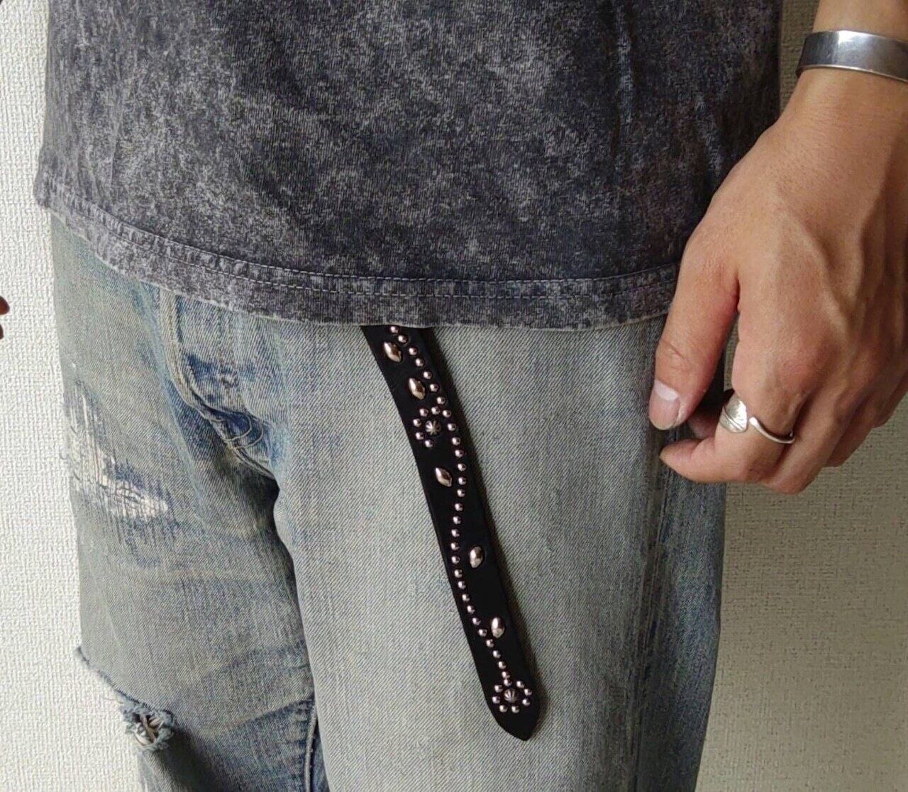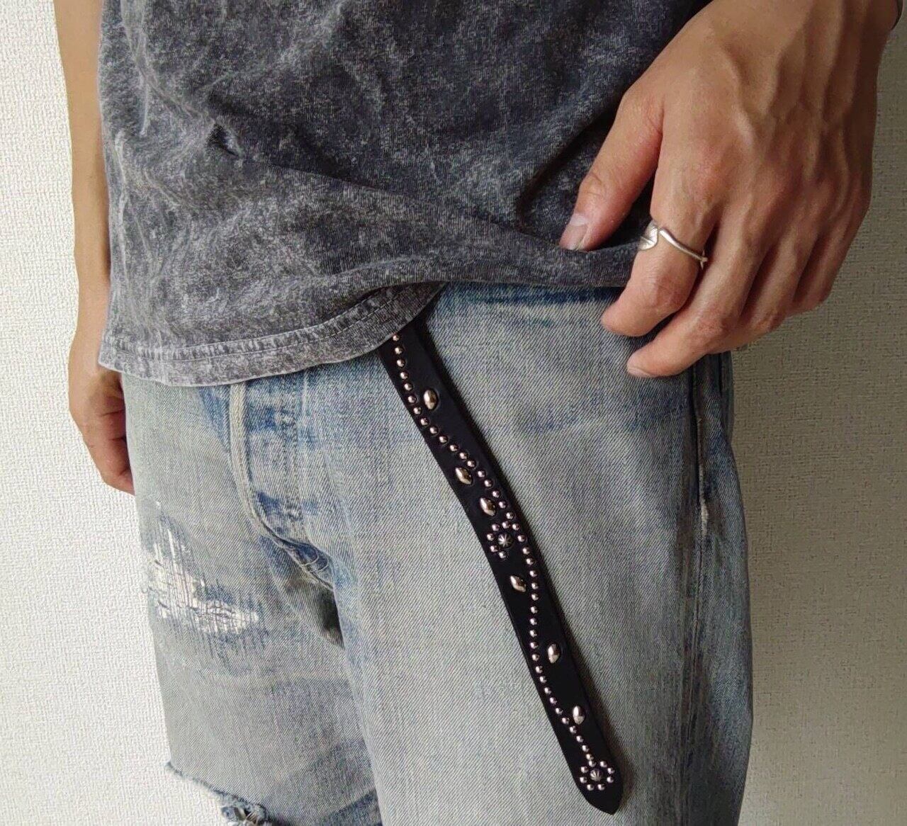 ベルト全体の360度にシルバーフラワーを施したナローベルトです。※バックルの留め具がスナップボタン式です。バックルを取り外す事ができます。