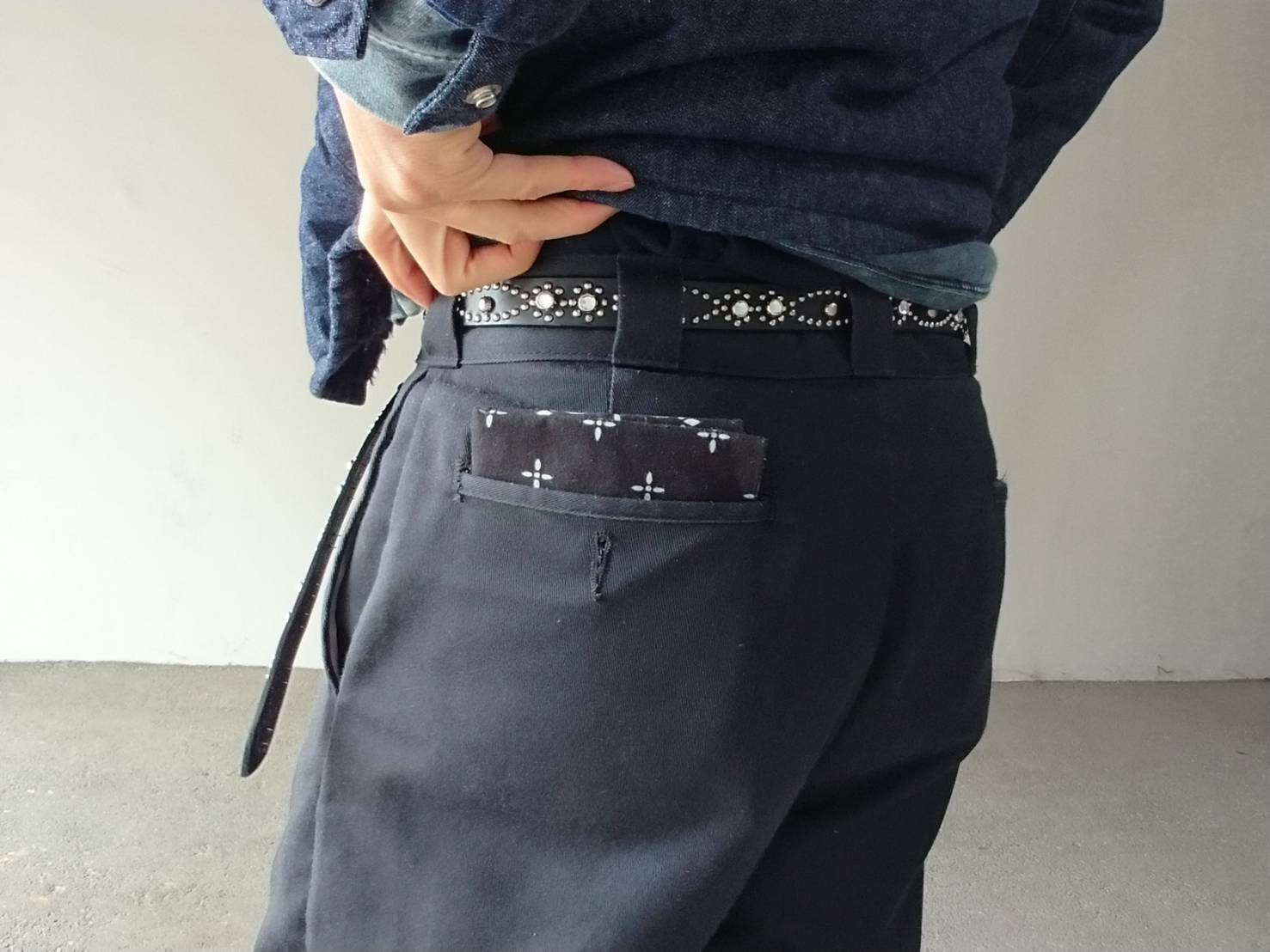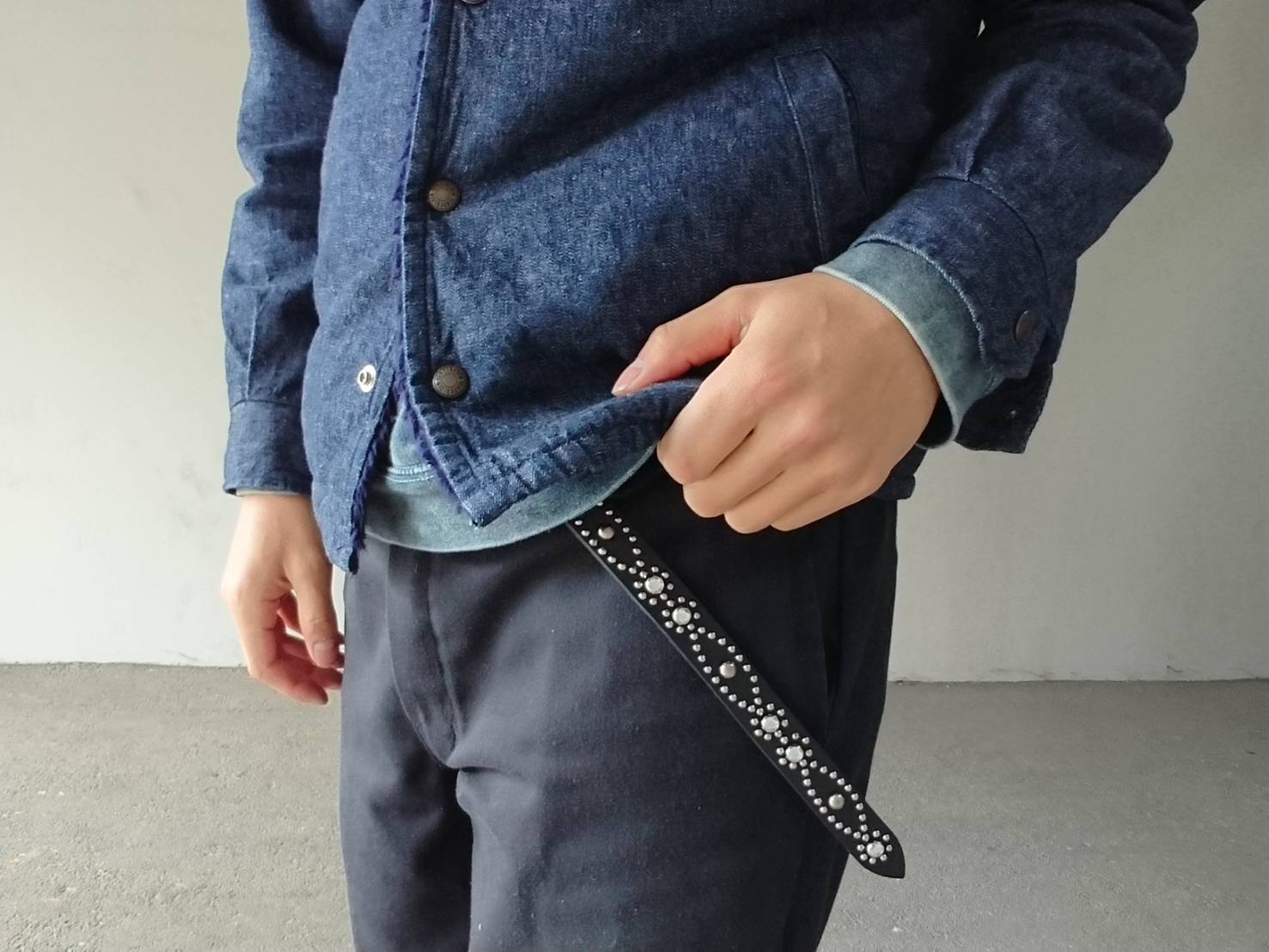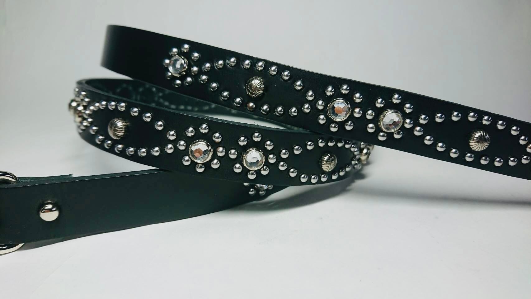 ベルト全面360度にバタフライパターンクリアストーンスタッズを施したナローベルト。