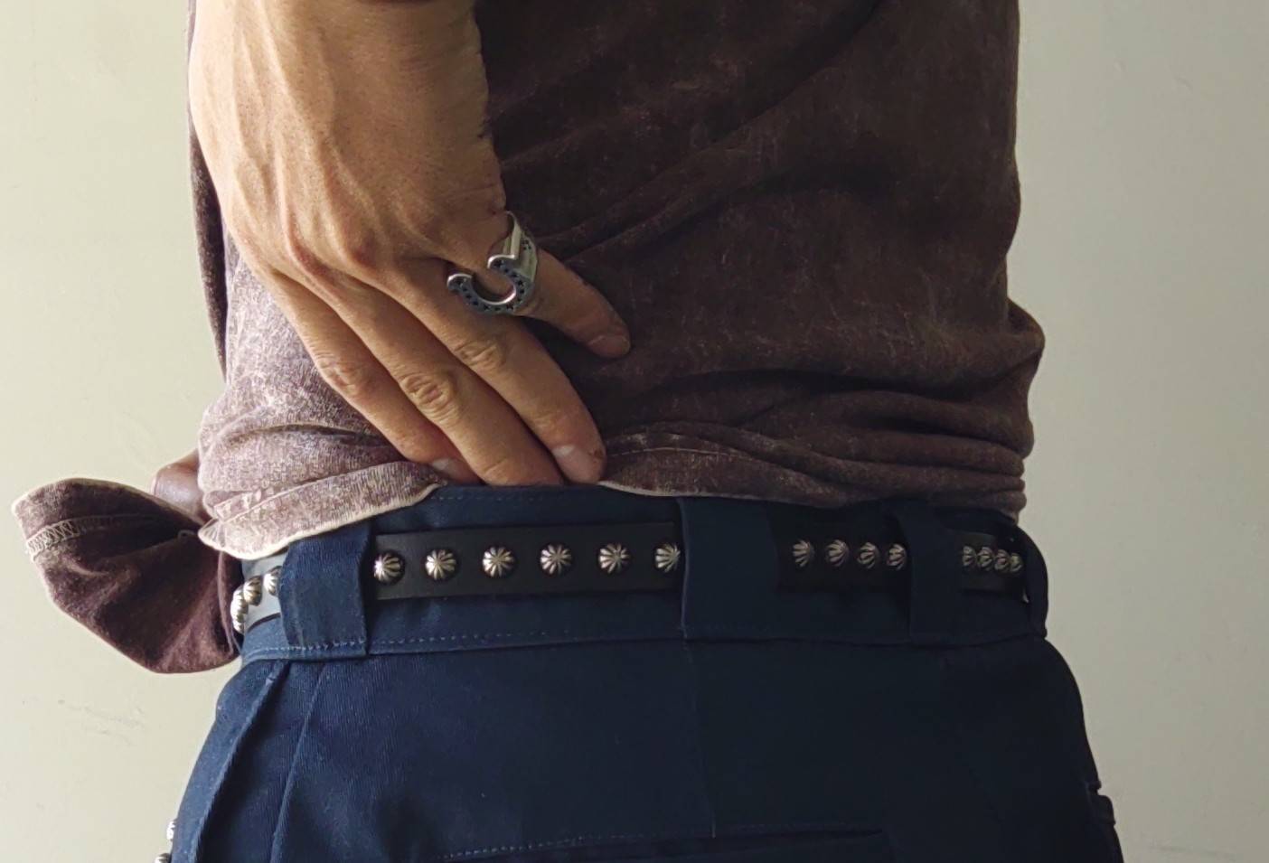 ベルト全面の360度にビックアポロを使用したナローベルト。ビックアポロは直径約1センチ