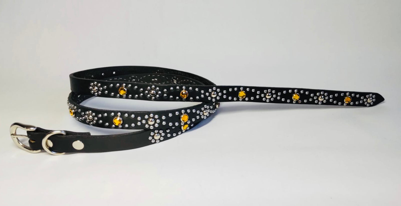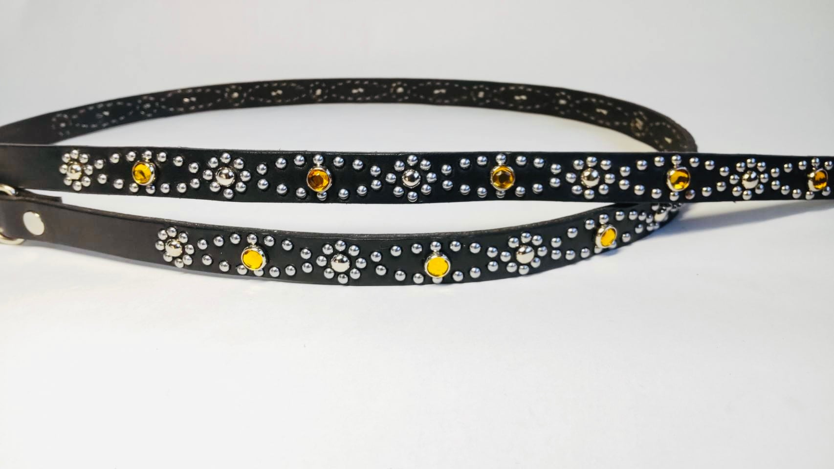 360スタッズベルト(1,5cm幅)エクストラファインチェーンバタフライ サンフラワー