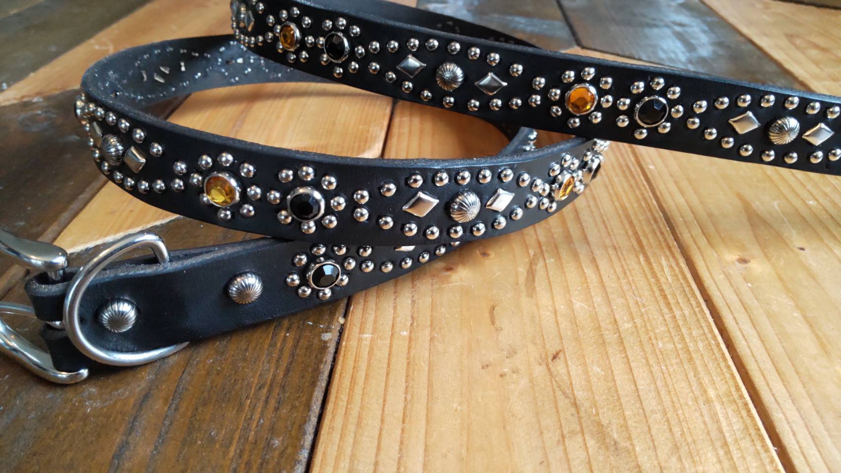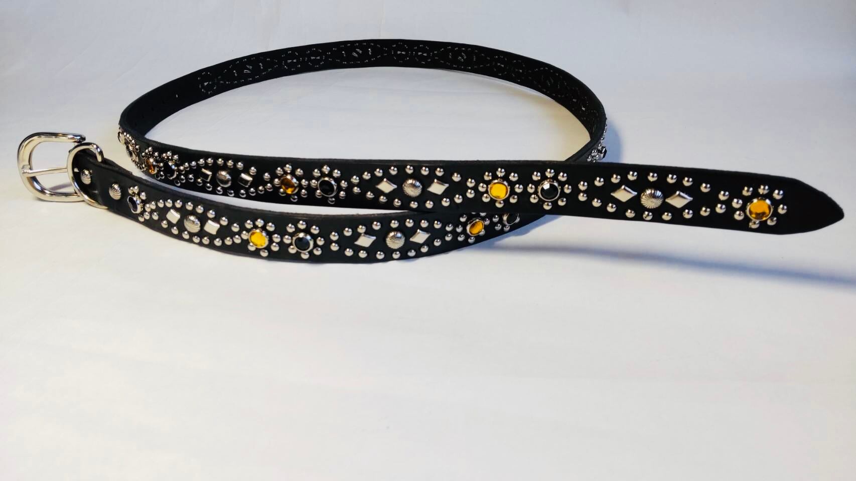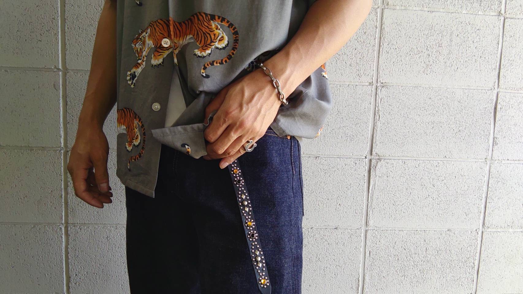 ベルト全体の360度にバタフライパターンスタッズを施したナローベルト。