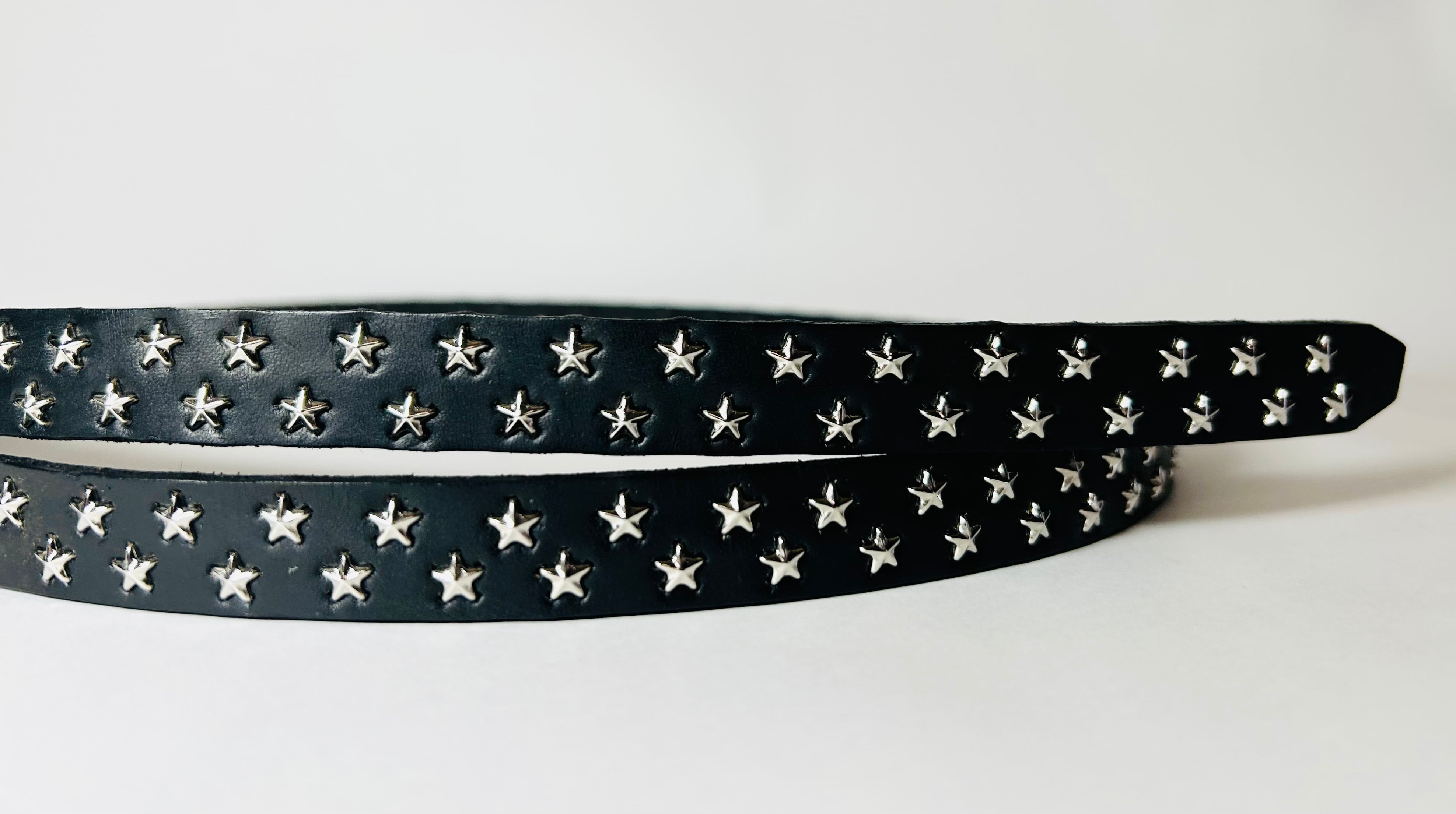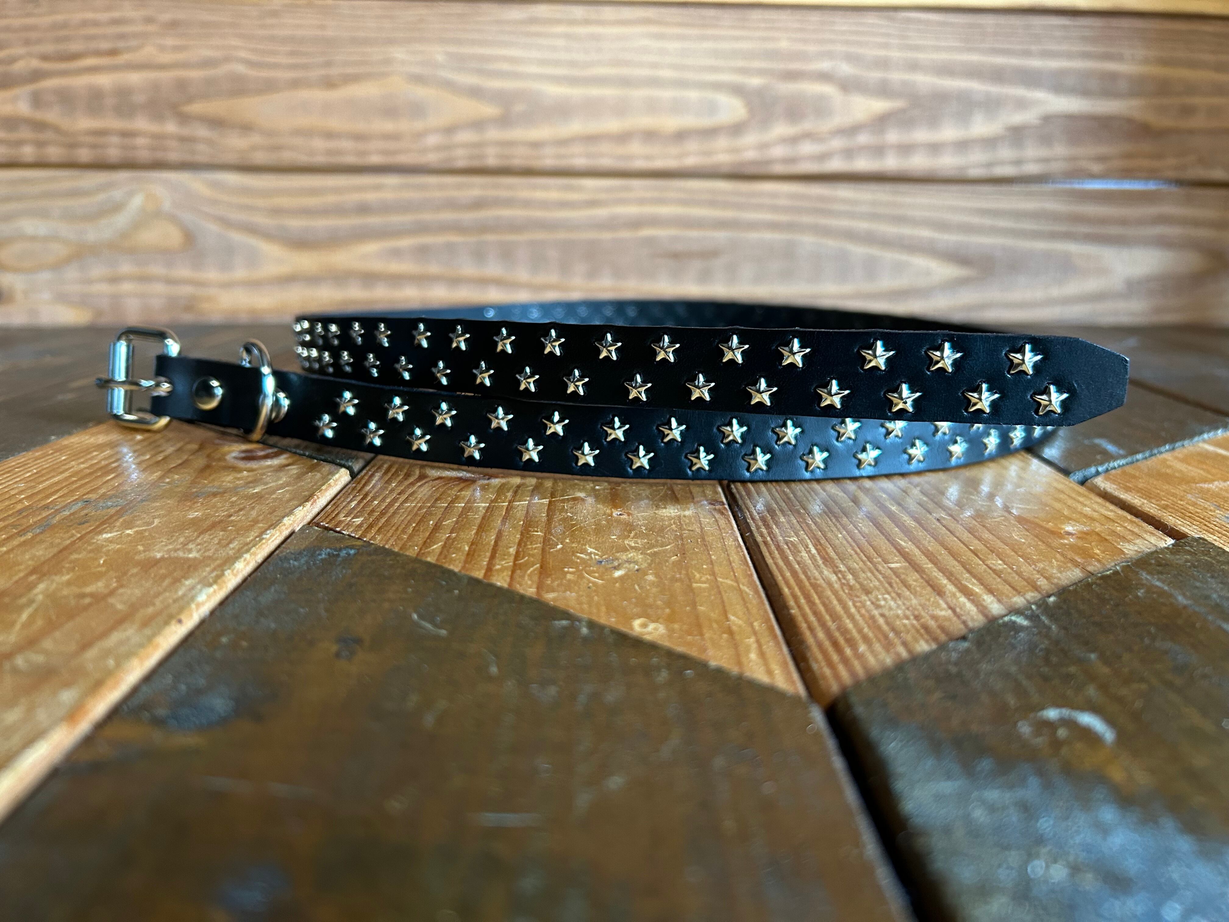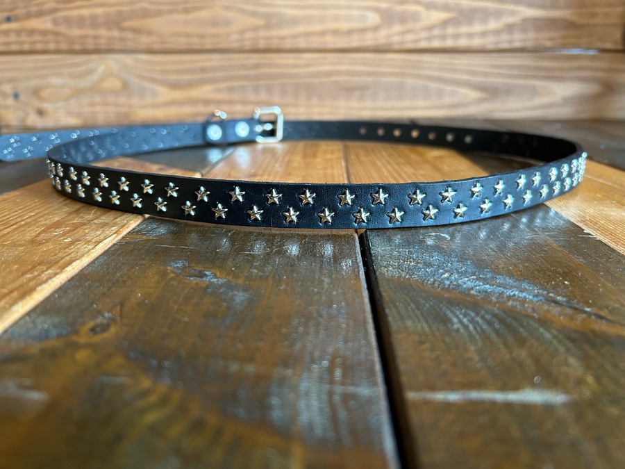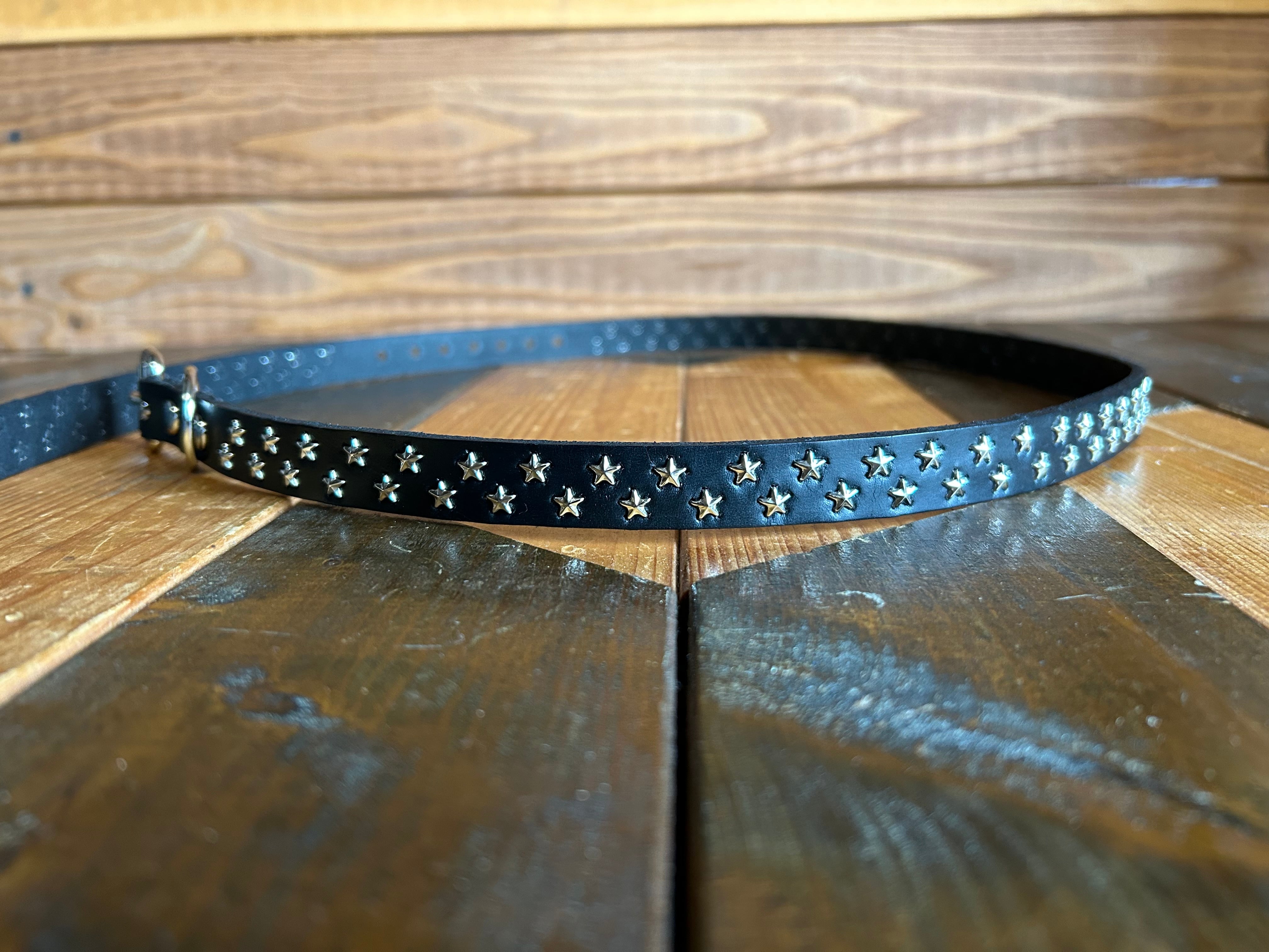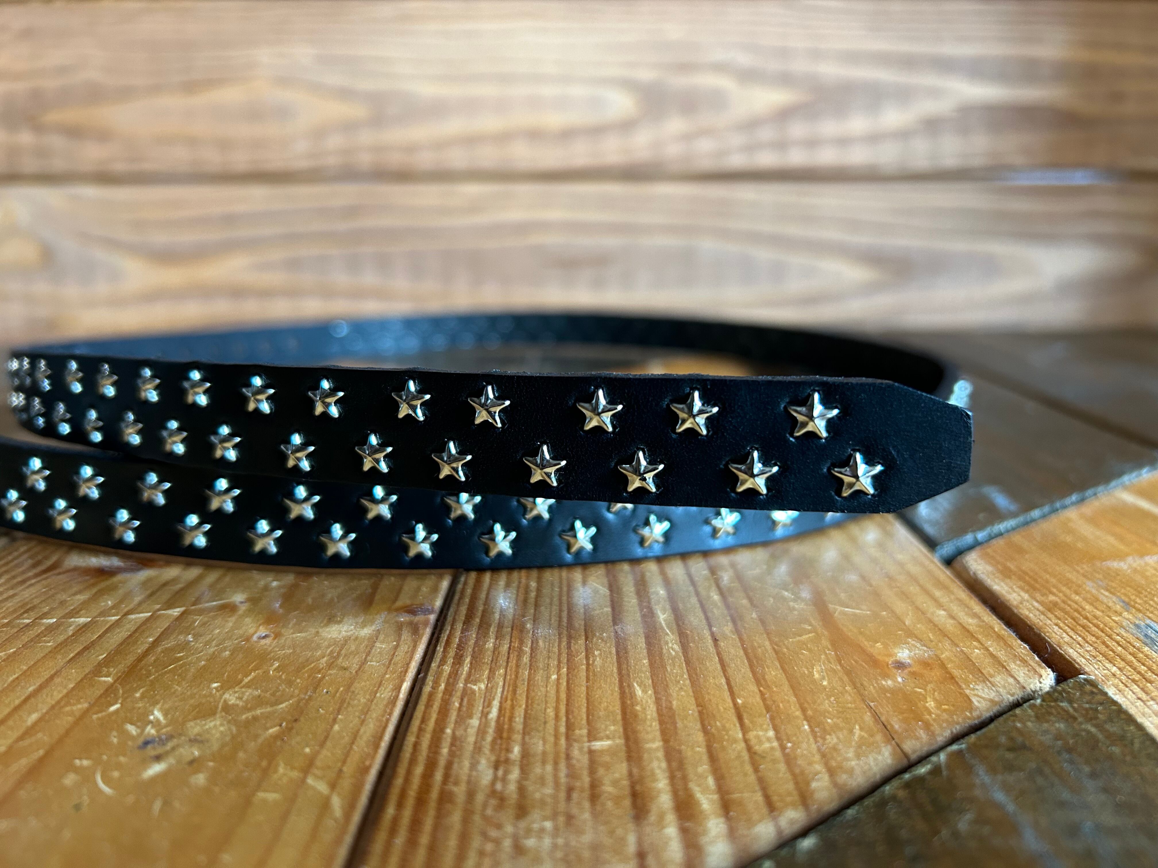 ベルト全体の360度にスタースタッズを施したナローベルト。バックルの留め具がスナップボタン式ですのでバックルの取り外しが可能です。
