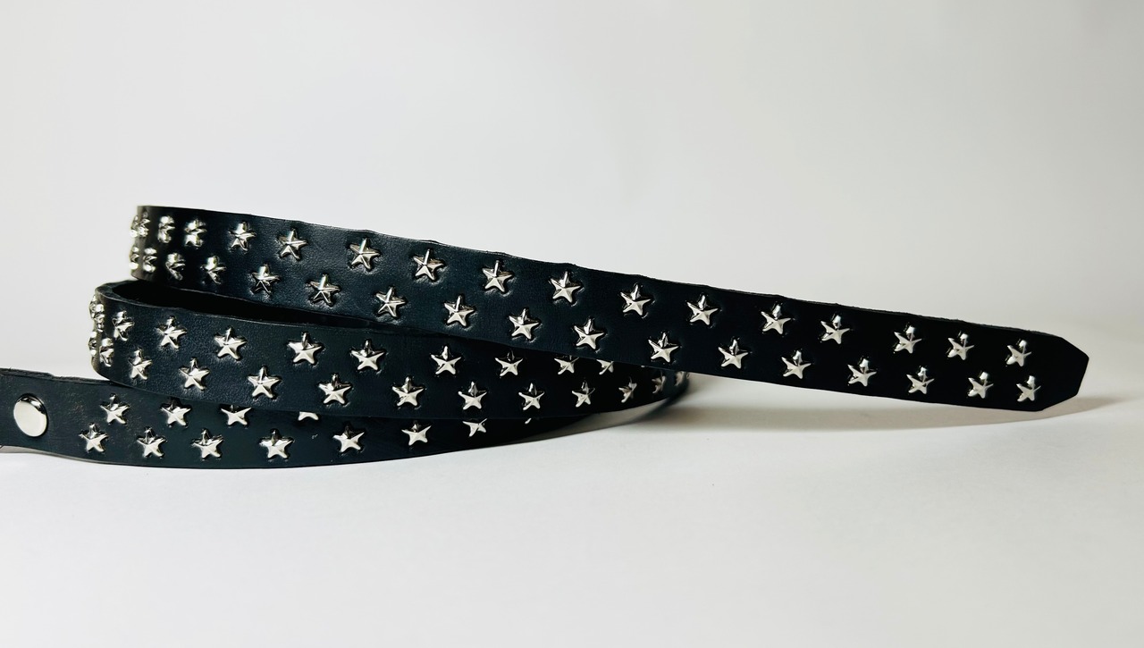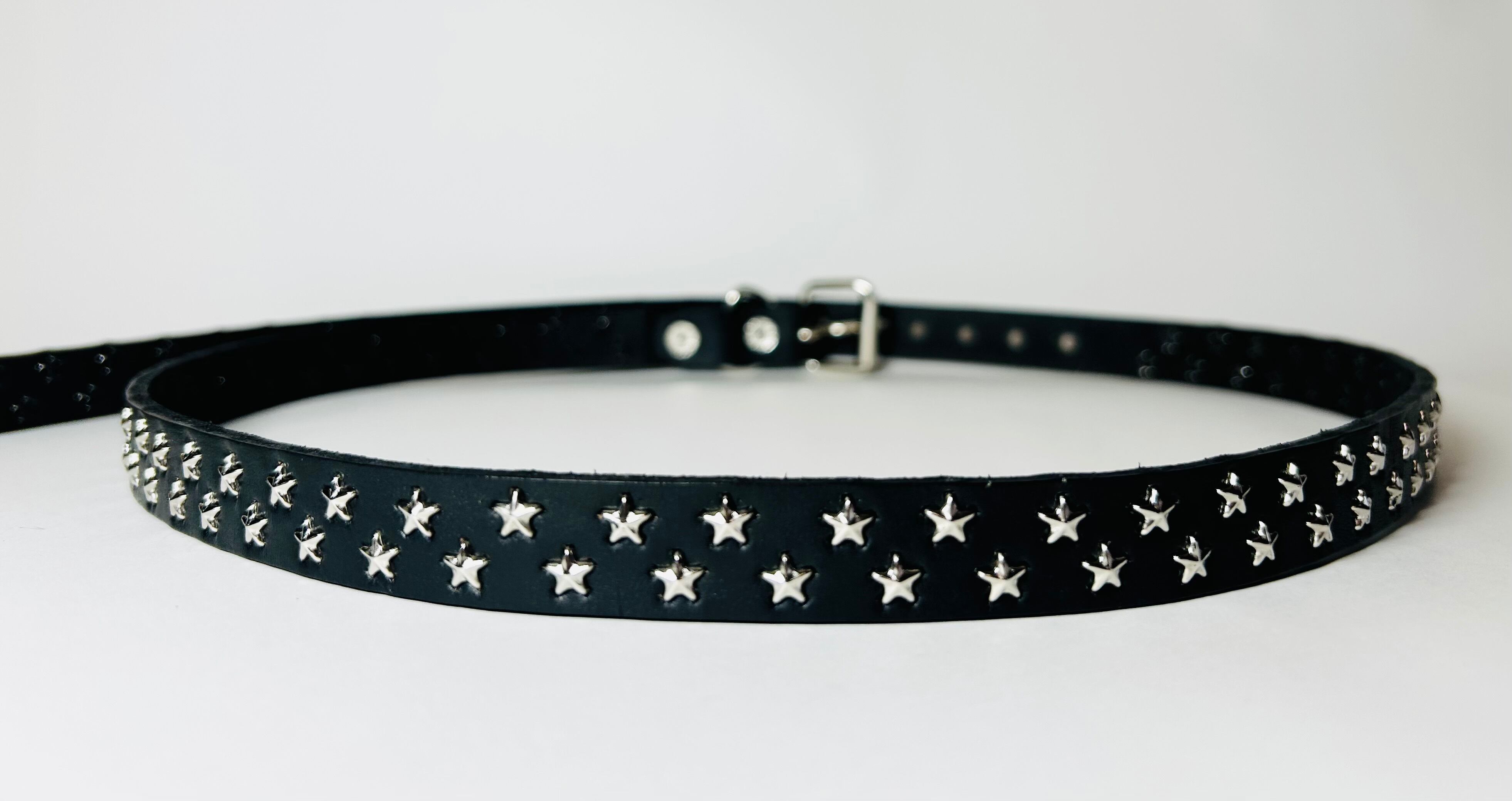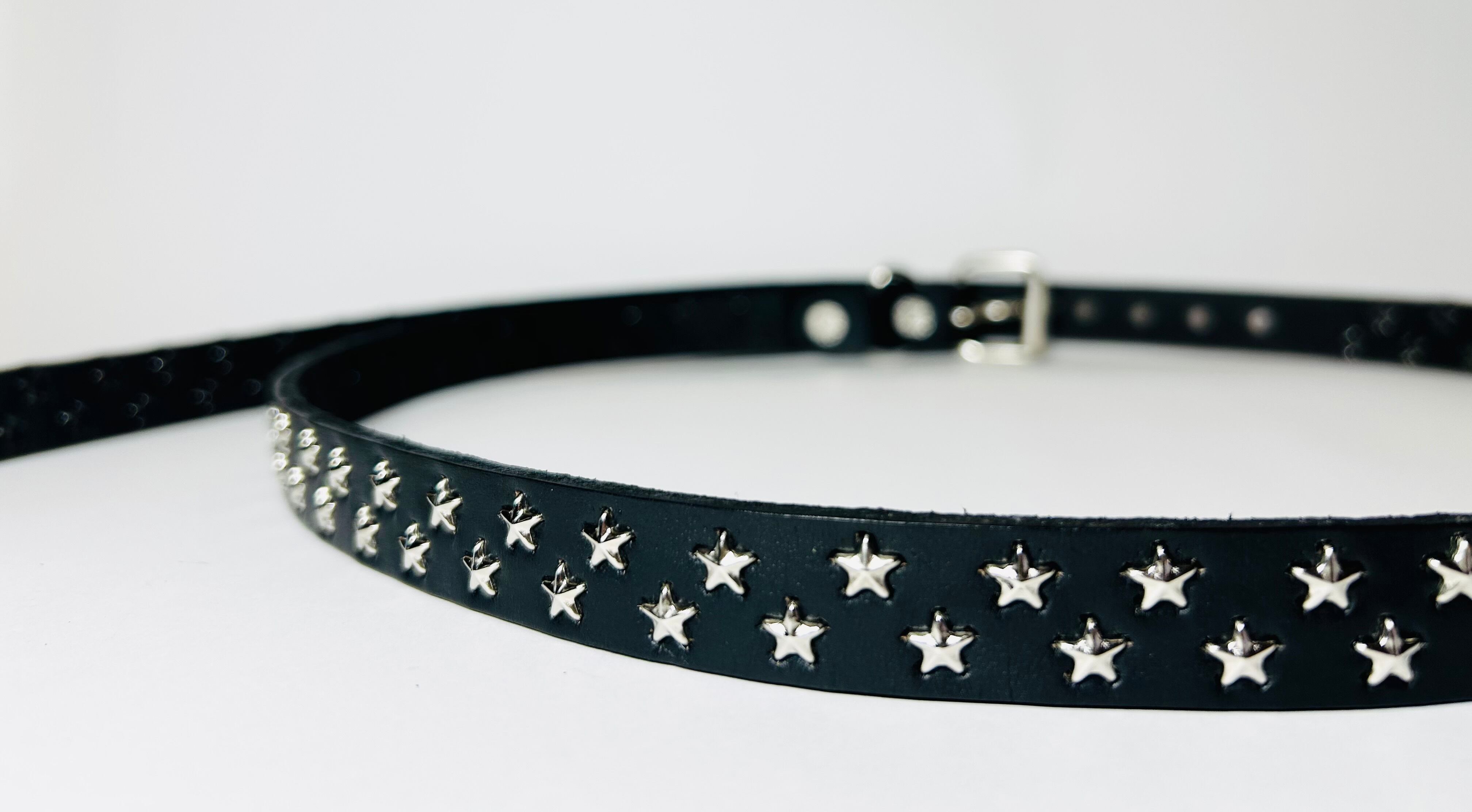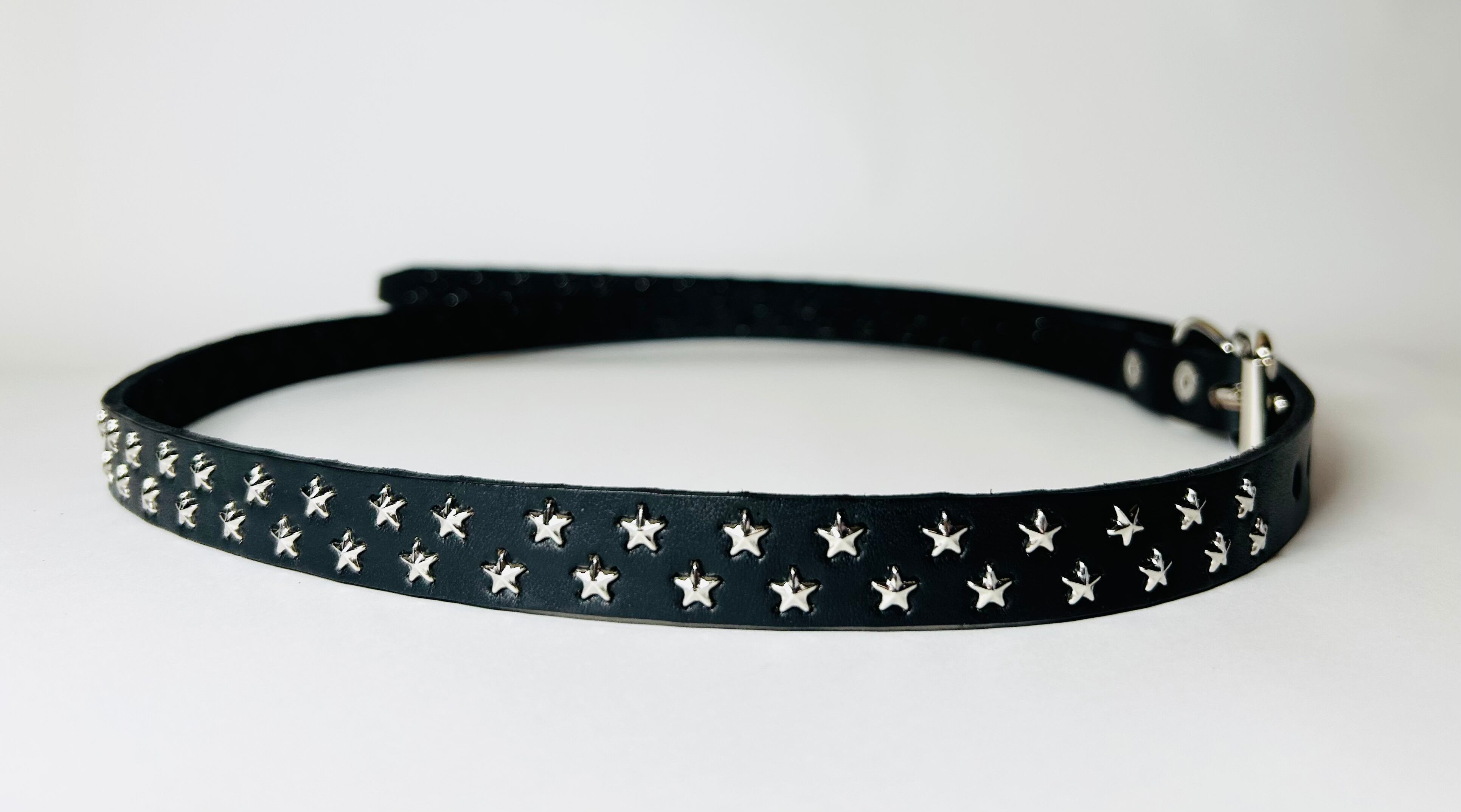 ベルト全体の360度にスタースタッズを施したナローベルト。バックルの留め具がスナップボタン式ですのでバックルの取り外しが可能です。