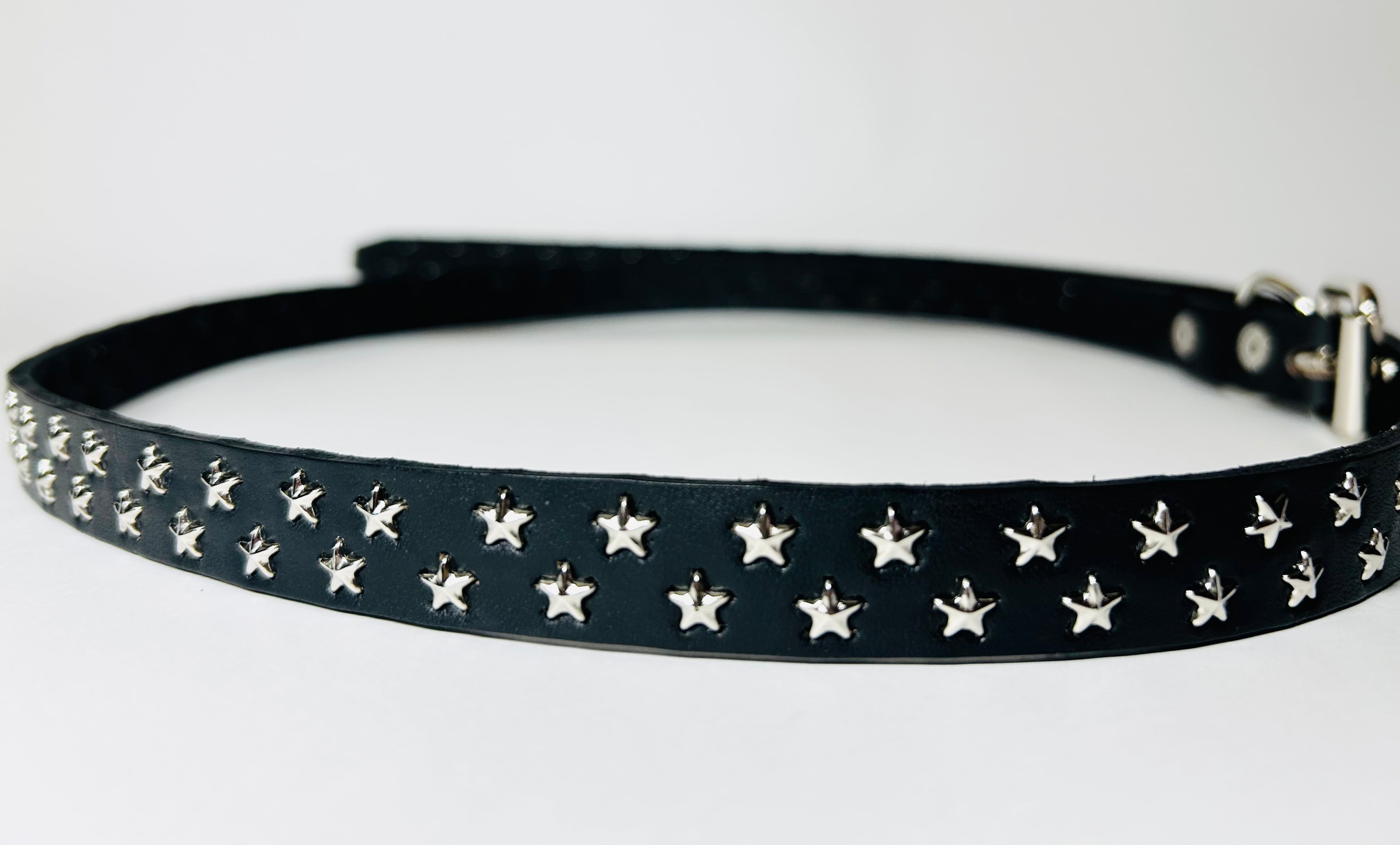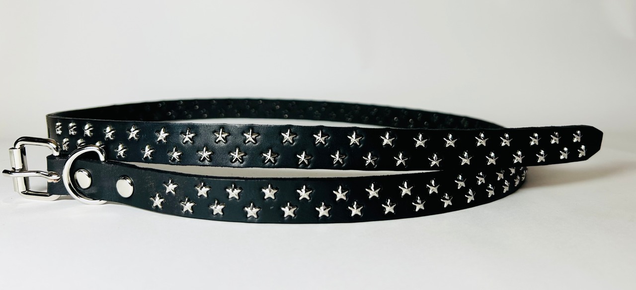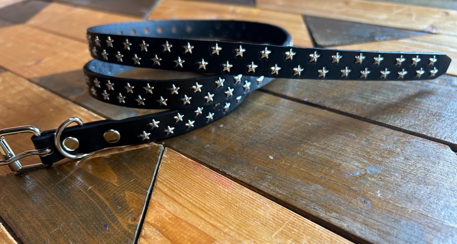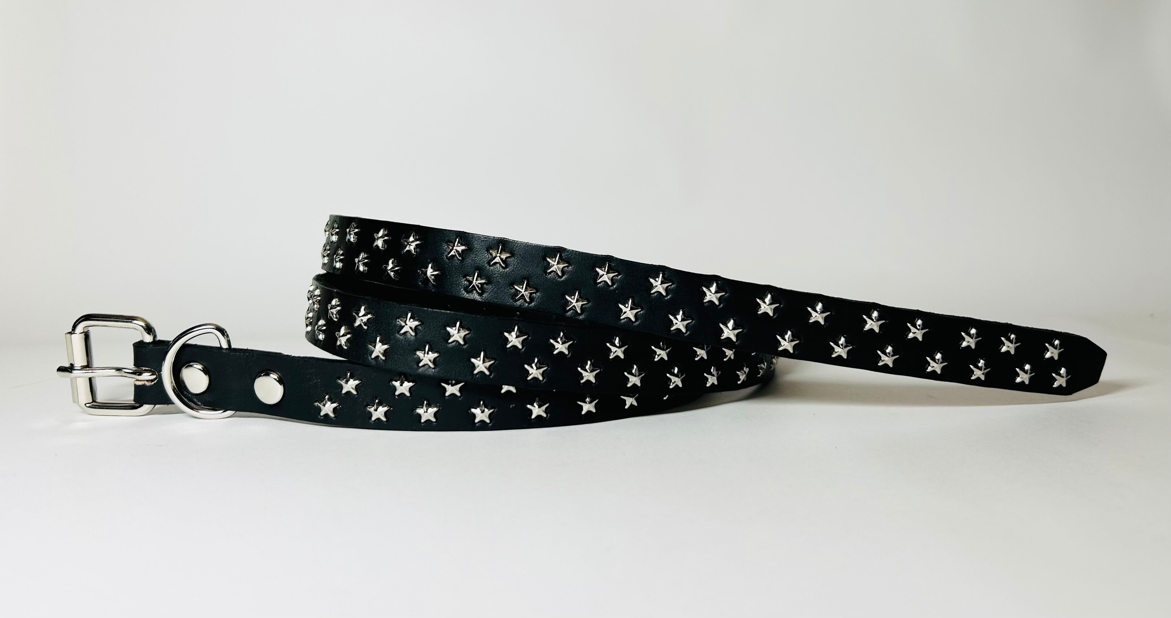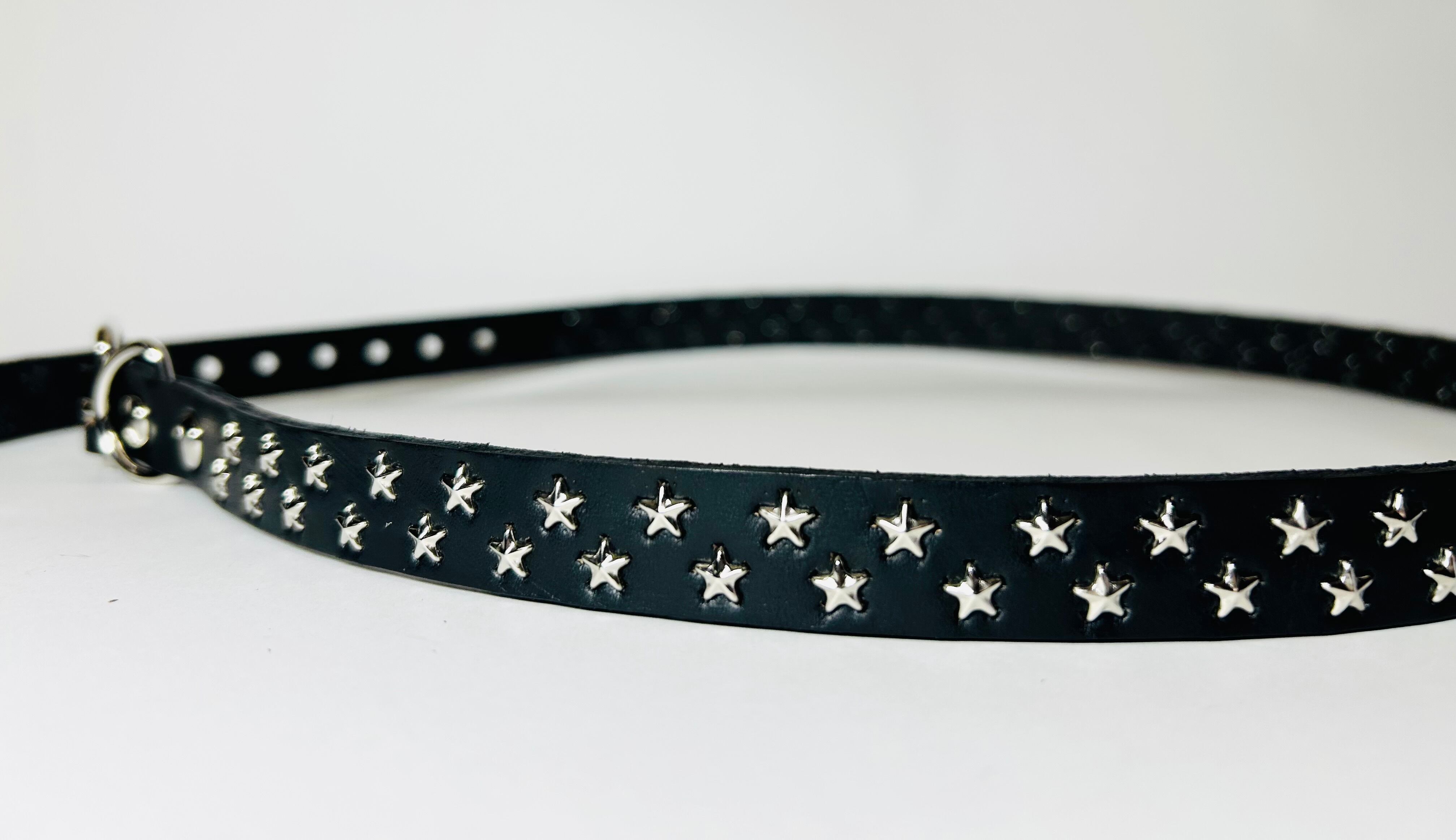 ベルト全体の360度にスタースタッズを施したナローベルト。バックルの留め具がスナップボタン式ですのでバックルの取り外しが可能です。