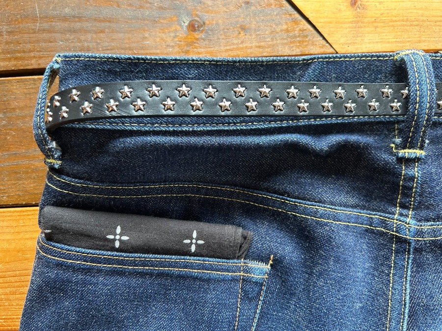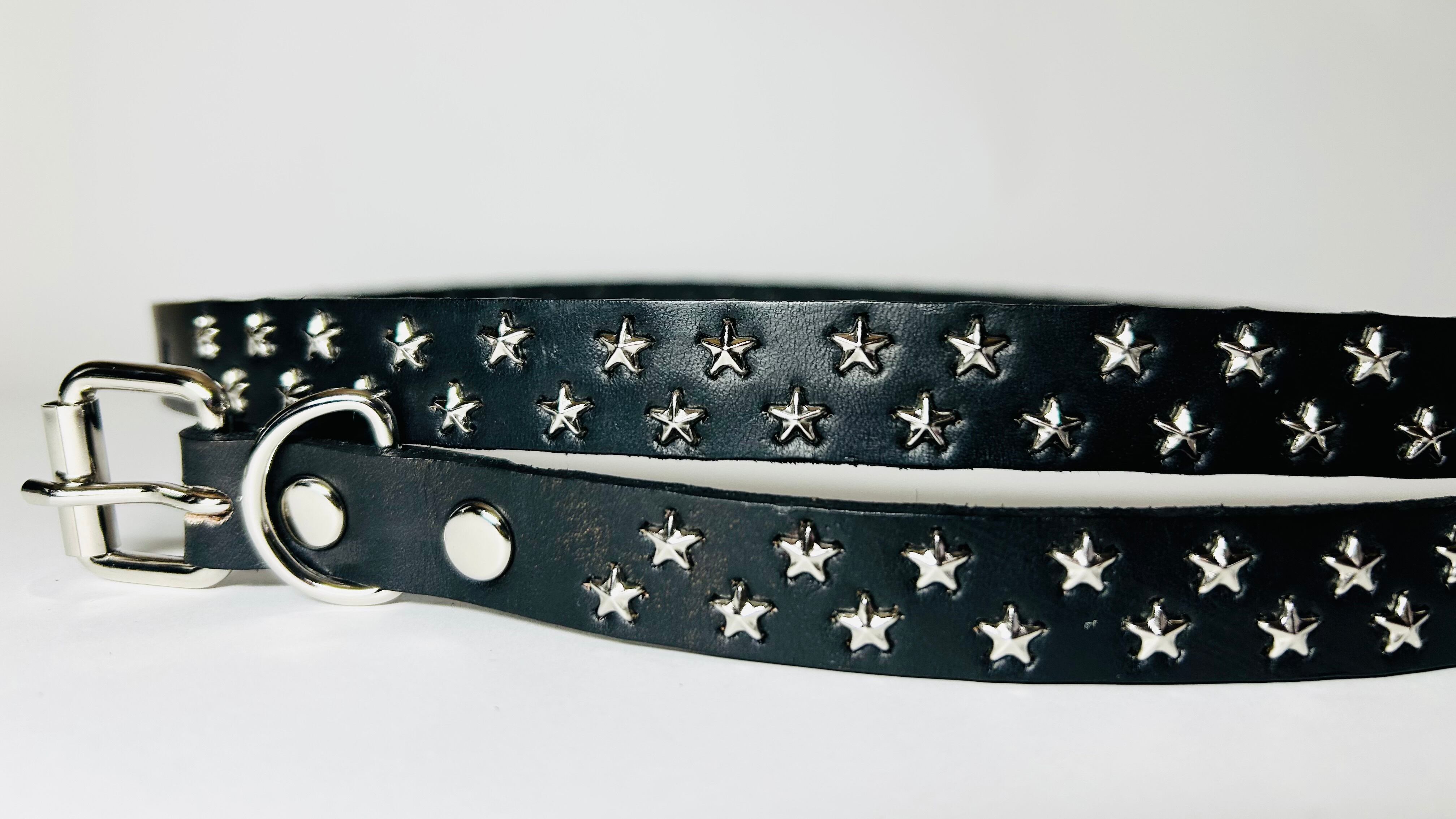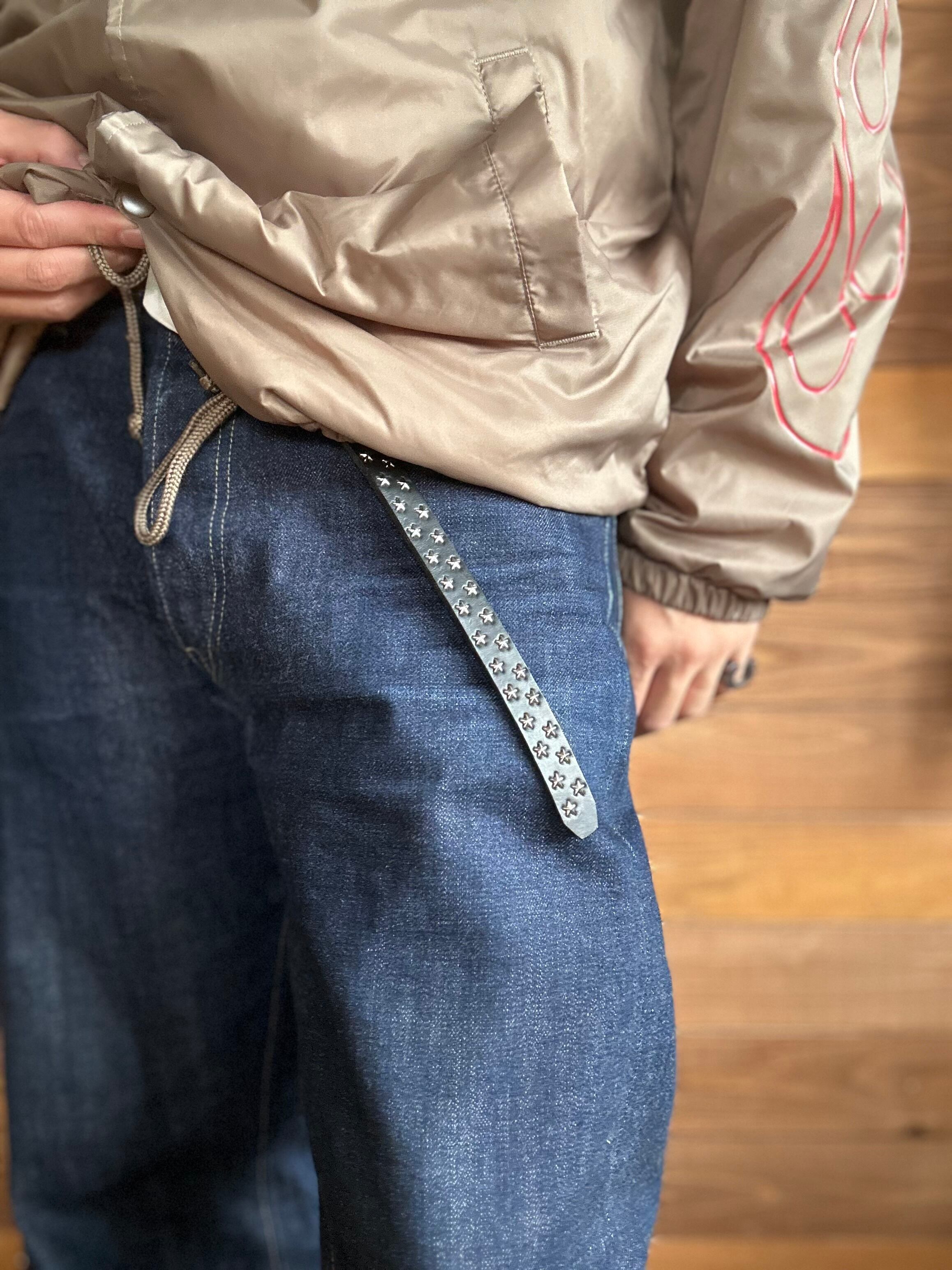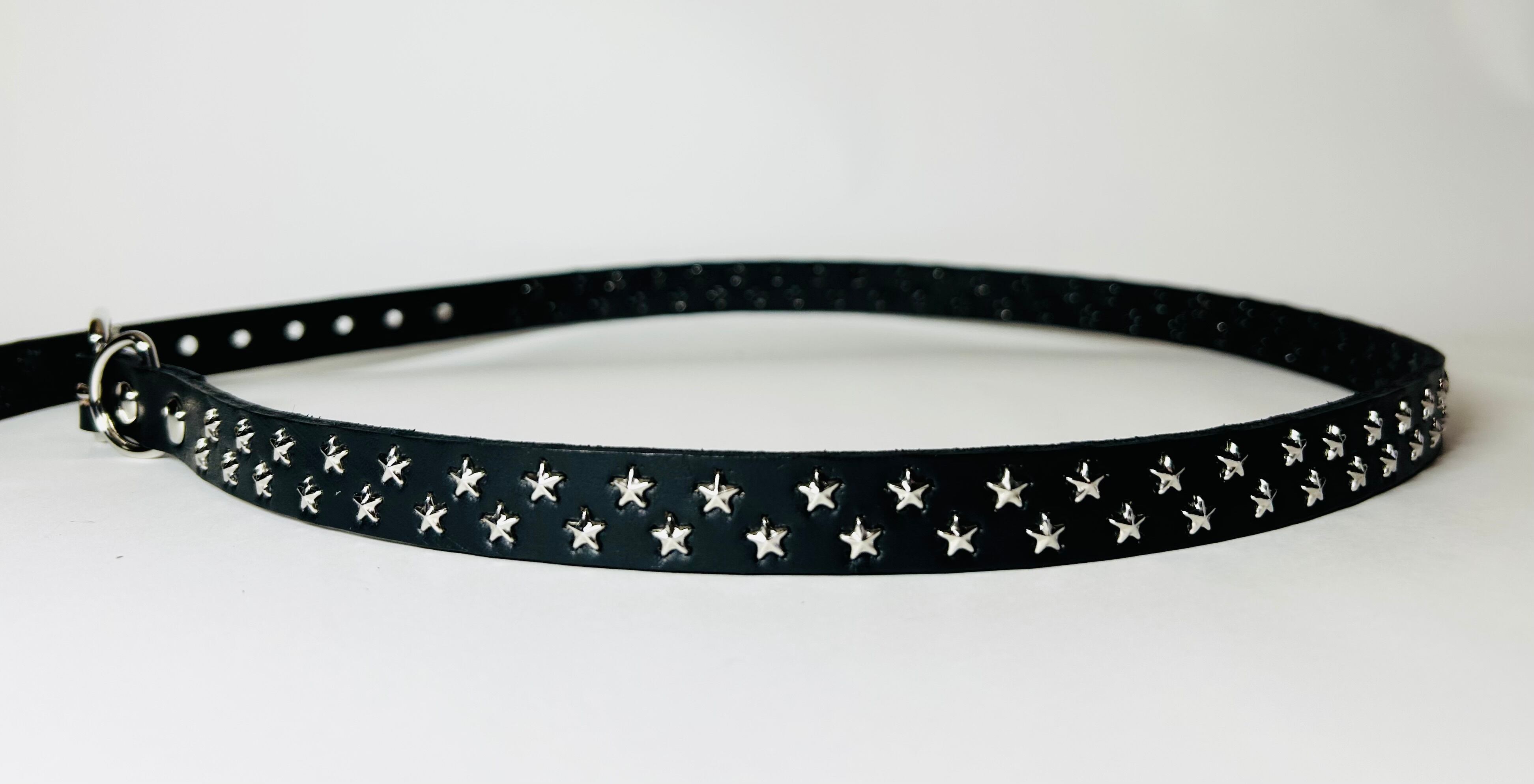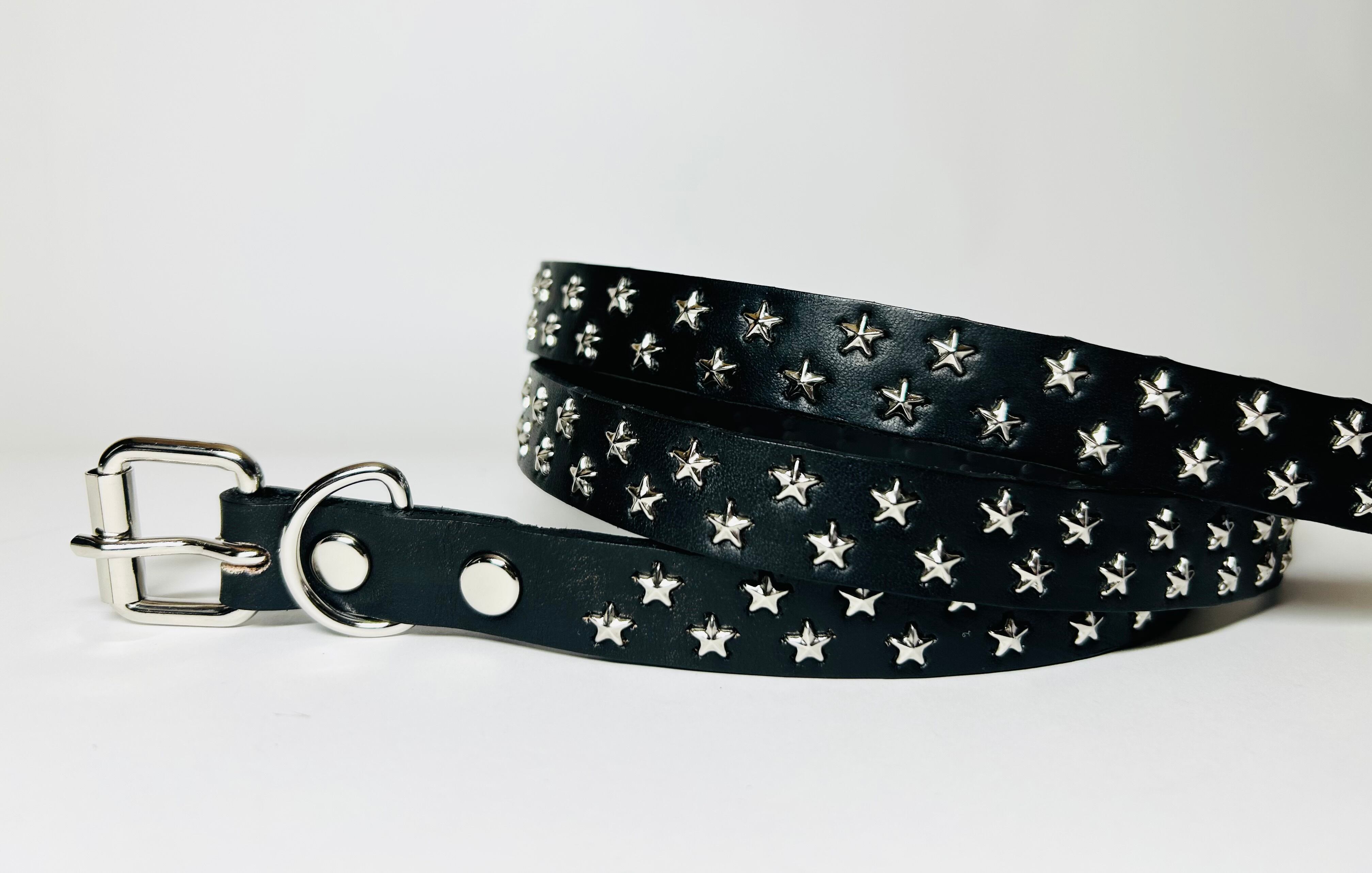 ベルト全体の360度にスタースタッズを施したナローベルト。バックルの留め具がスナップボタン式ですのでバックルの取り外しが可能です。