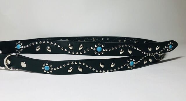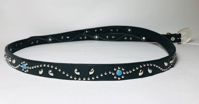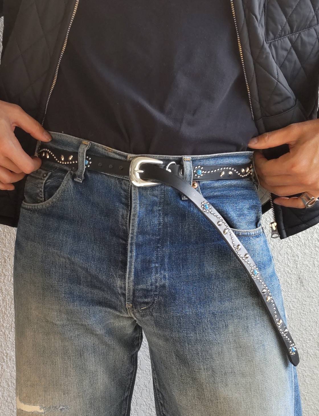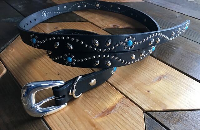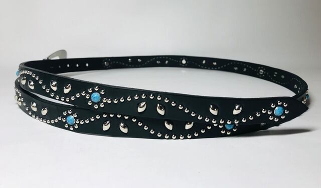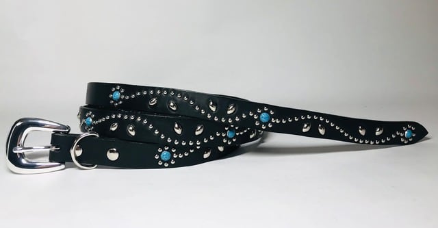 360スタッズベルト(2cm幅) ターコイズチューリップフラワー【ウエスタンバックル】