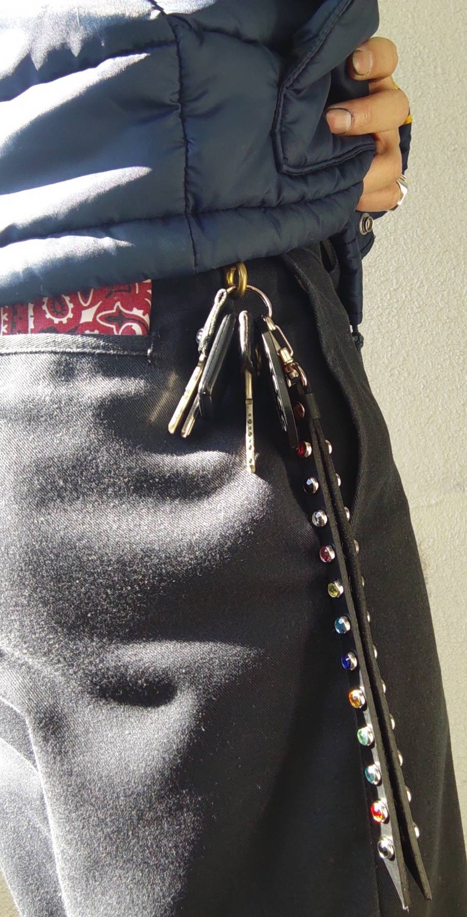 10色、12個のカラーストーンスタッズを両面に施したリバーシブルスタッズのキーリングとなります。金具に回転ナスカンを使用する事で裏表が自由に動き簡単に取り外す事が可能です。金具の色をシルバー、アンティークから選択可能です。