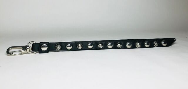 ビックラウンドとビッグアポロを両面に施したリバーシブルスタッズのキーリングとなります。金具に回転ナスカンを使用する事で裏表が自由に動き簡単に取り外す事が可能です。