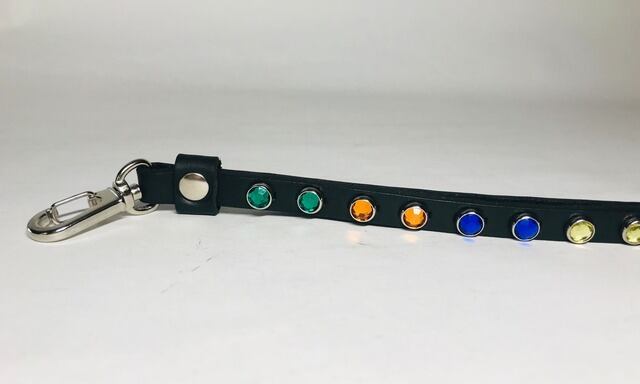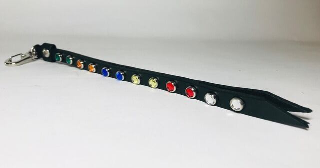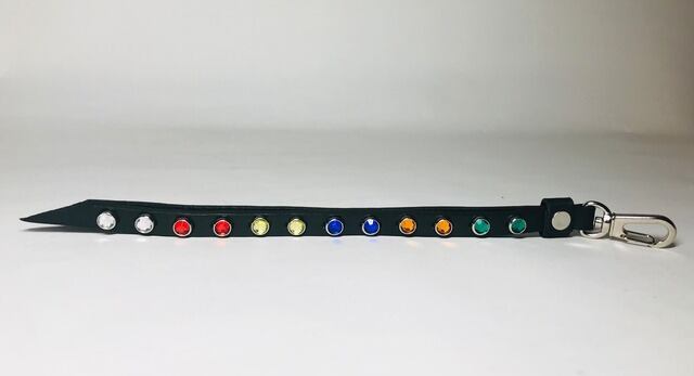6色12個のカラーストーンを両面に施したリバーシブルスタッズのキーリングとなります。金具に回転ナスカンを使用する事で裏表が自由に動き簡単に取り外す事が可能です。