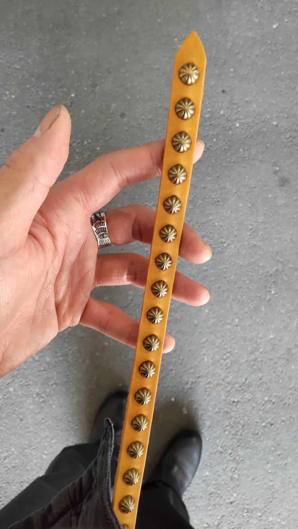 スタッズベルト360(1,5cm幅)bigapoアンティークブラス【ライトブラウン】