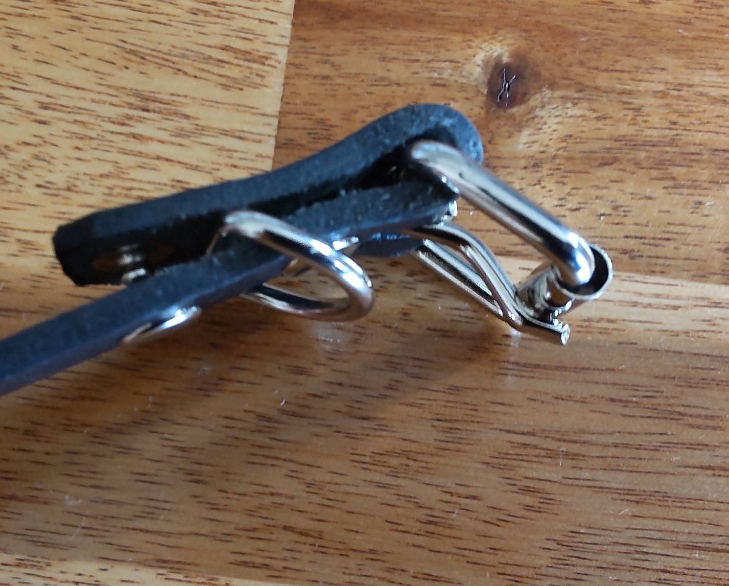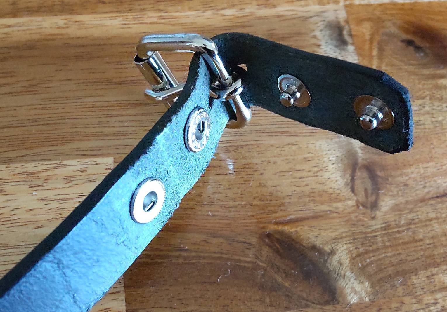 バックルを留める金具をスナップボタン式へ変更する事が可能です。バックルの取り外しが可能となります。