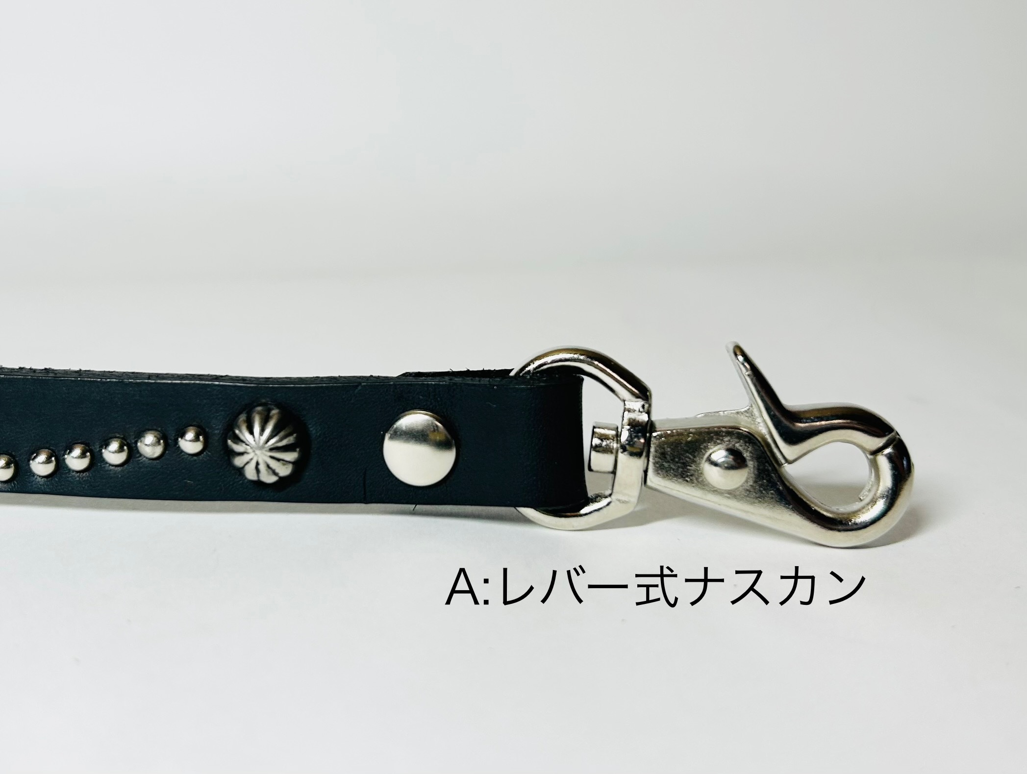 A:レバー式ナスカン(2箇所)への変更が可能です。※オプションより選択下さい。