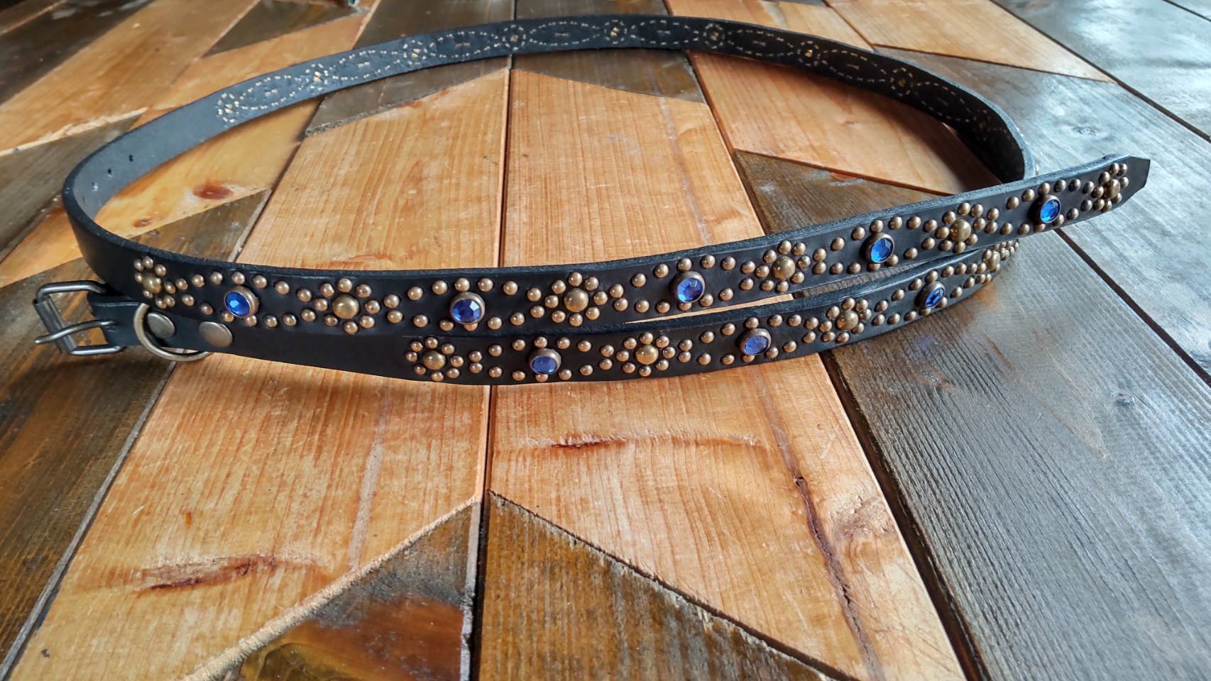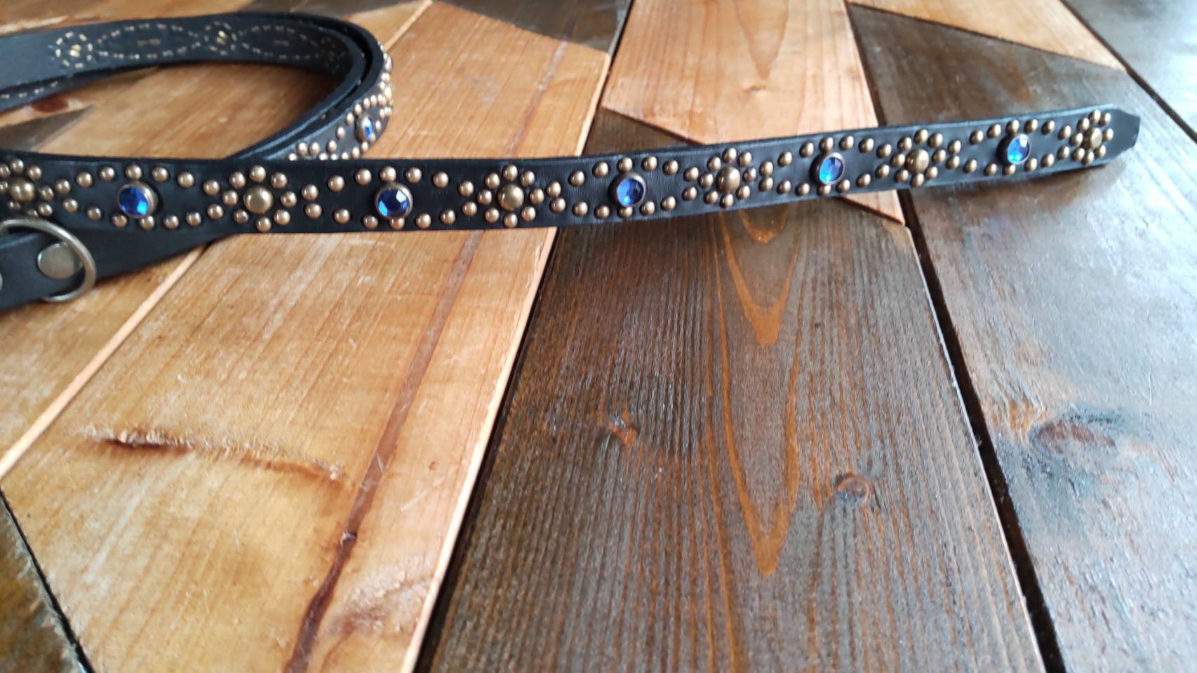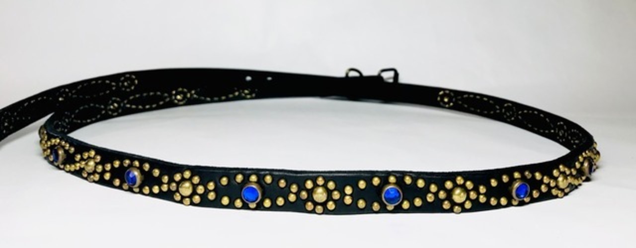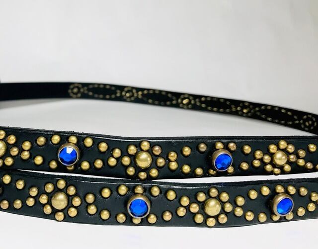 360スタッズベルト(1,5cm幅)エクストラファインチェーンバタフライディープブルー【アンティークブラス】