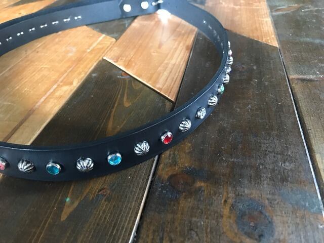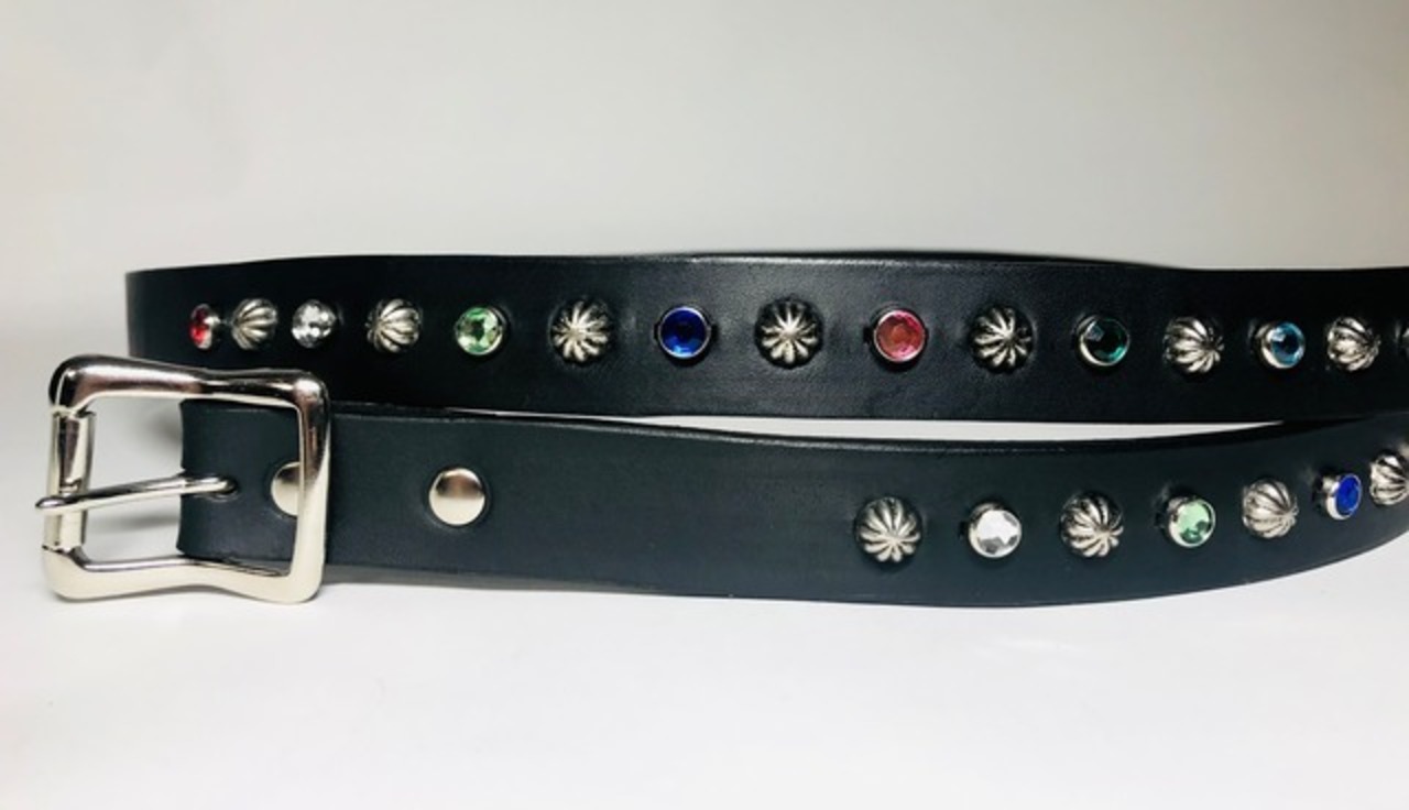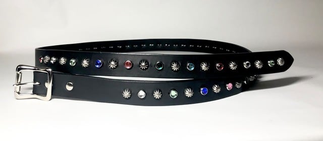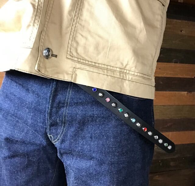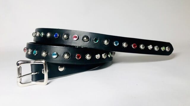 ベルト全体の360度にビックアポロスタッズと7色のカラーストーンを施したナローベルト。