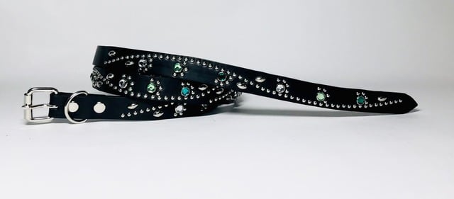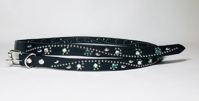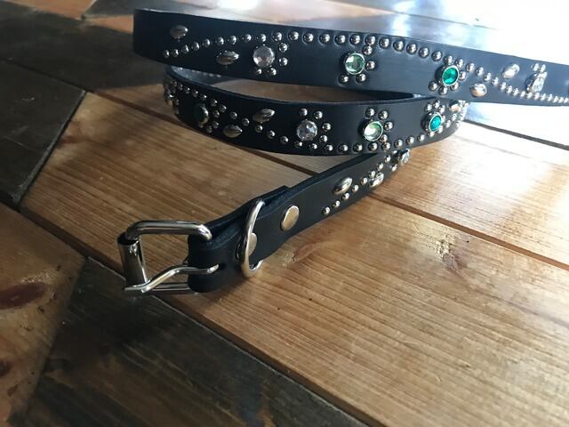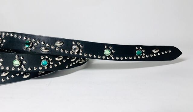 ベルト全体の360度にスタッズを施し鈴蘭を表現したナローベルト。バックルの留め具がスナップボタン式ですのでバックルの取り外しが可能となります。