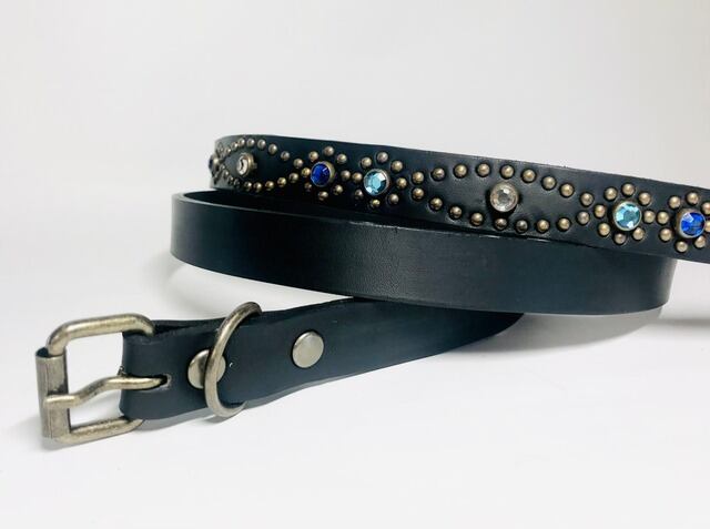 ベルト剣先にバタフライデザインを施したナローベルト。スタッズ、バックル金具全て【アンティークブラス】を使用しています。※バックルの留め具がスナップボタン式ですのでバックルの取り外しが可能です。