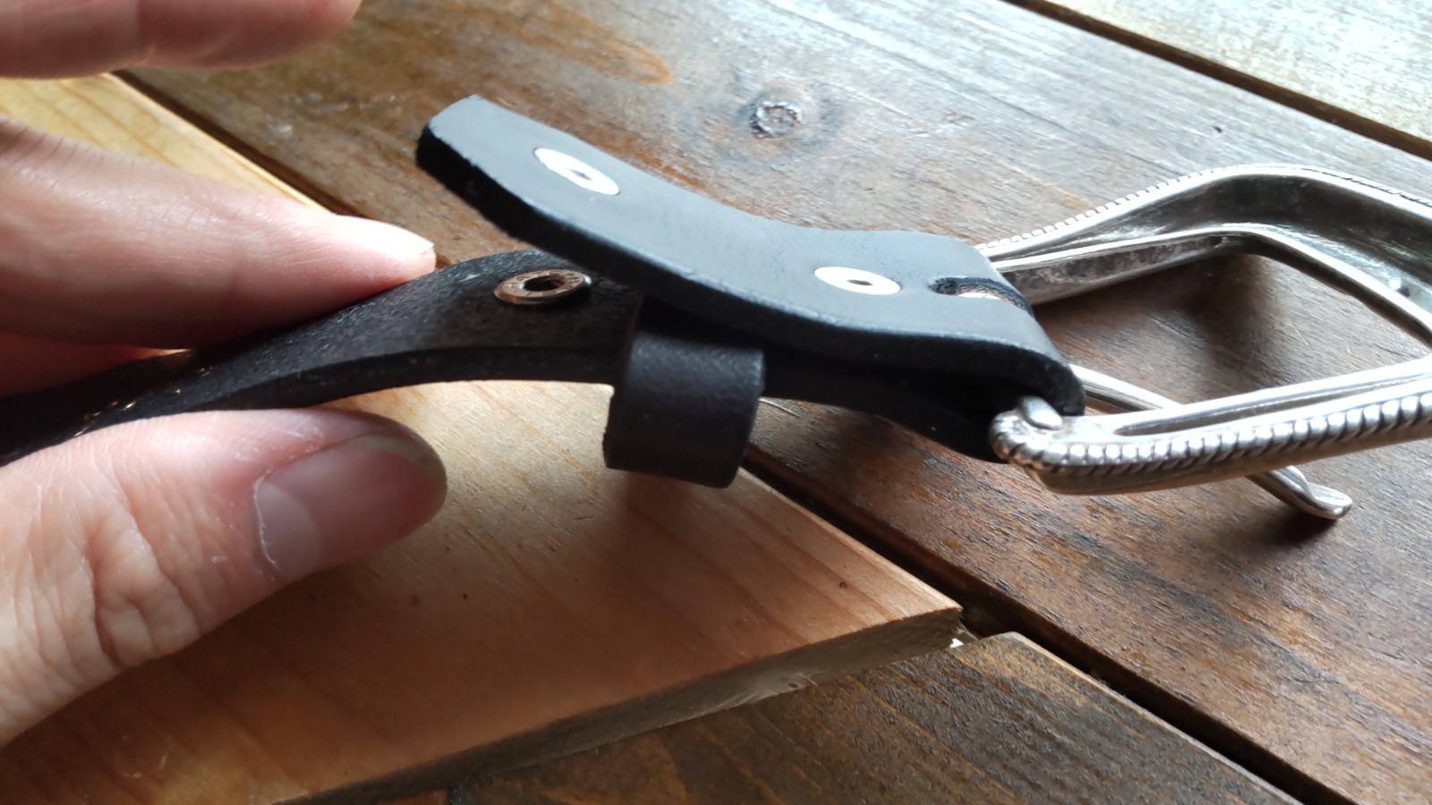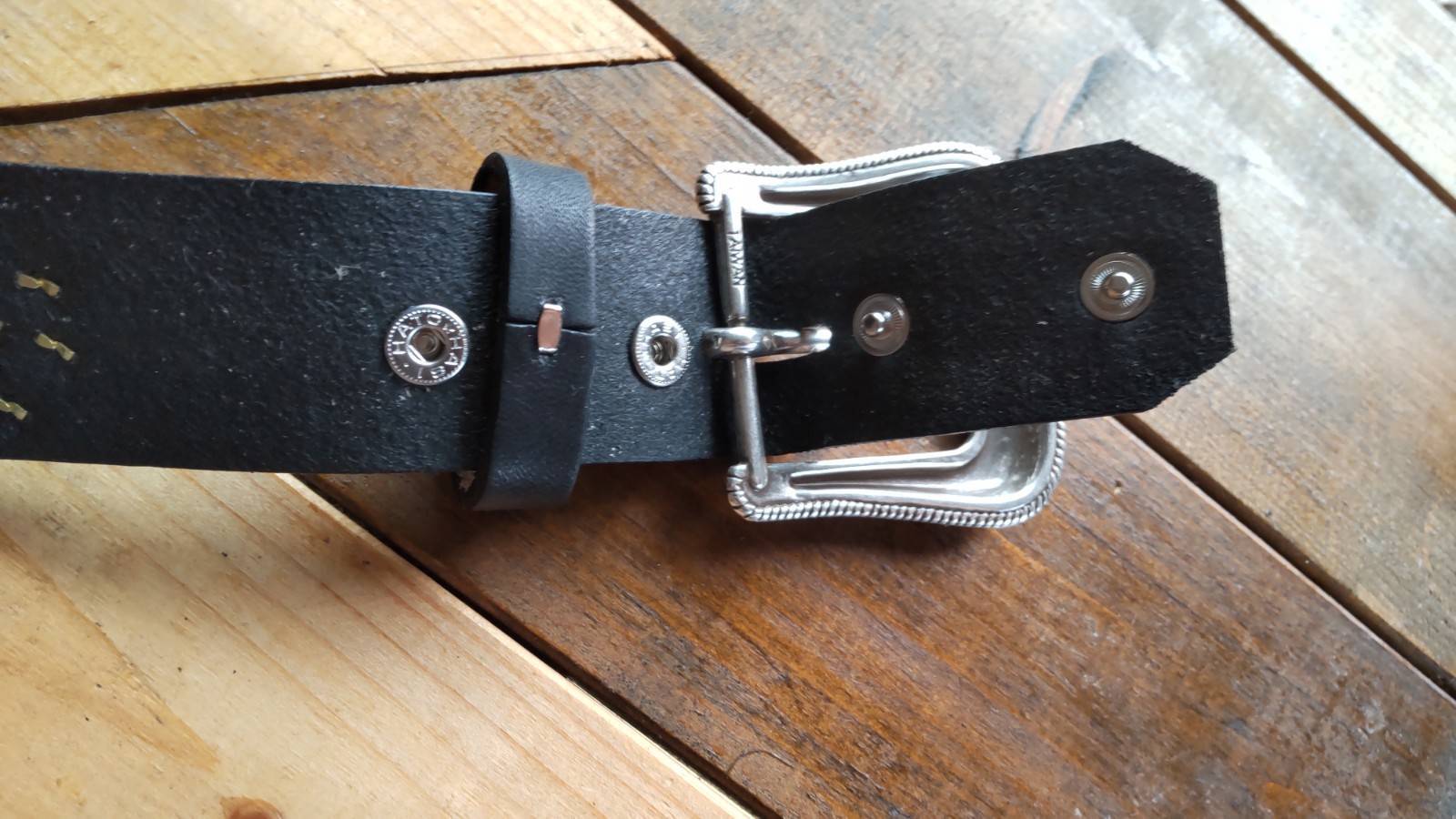 バックルの取り外しが簡単にできるスナップボタン式ですので、ご自身のお気に入りのバックルなどに自由に変更する事が可能です。