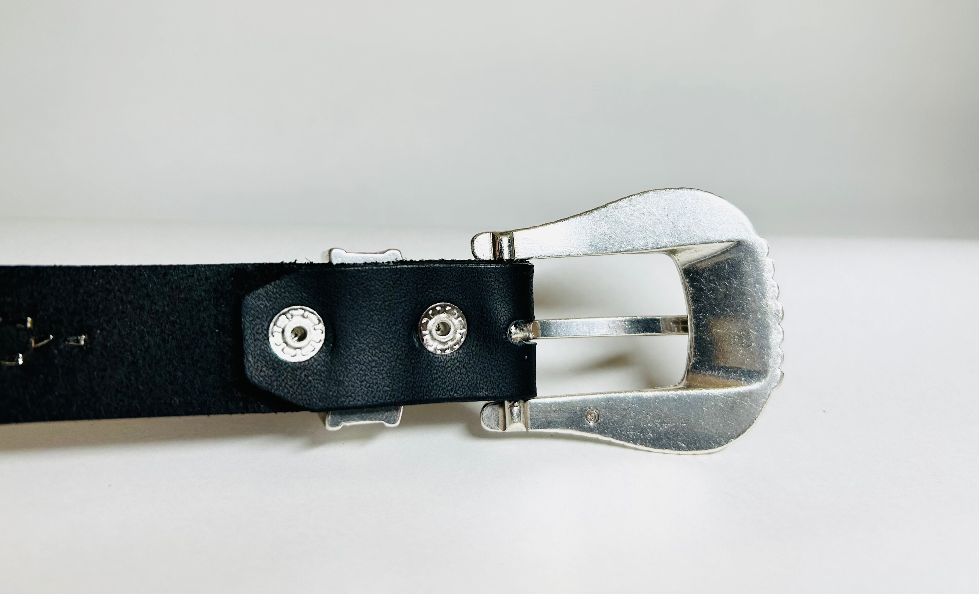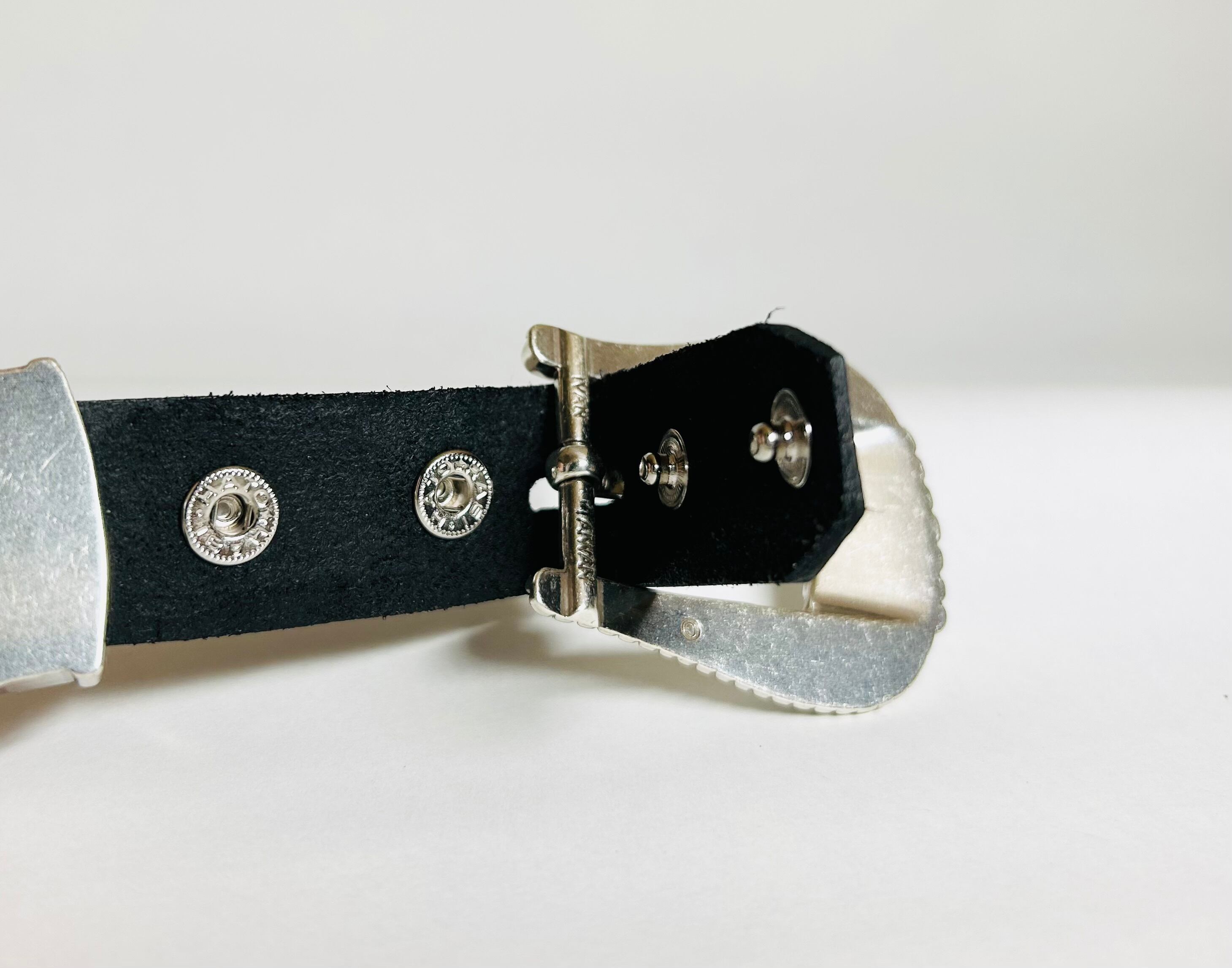 ベルト全面の360度にチマヨ模様、オルテガデザインを施したスタッズベルト。バックルの留め具はスナップボタン式ですので取り外しが可能です。
